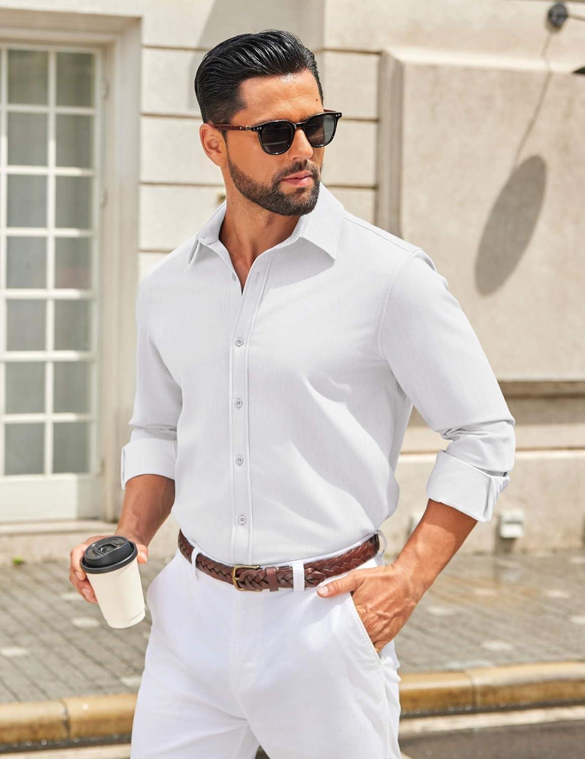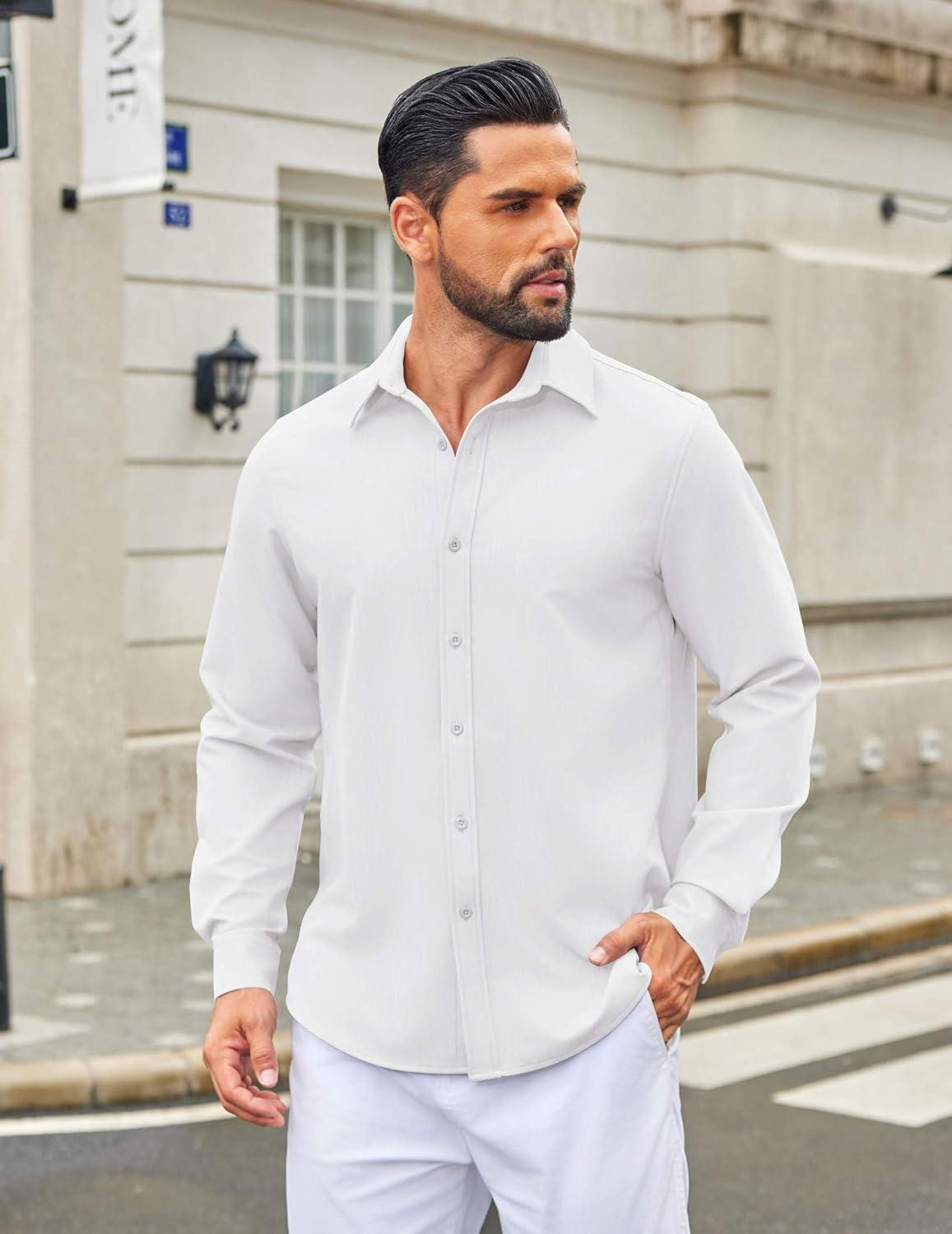 COOFANDY Men's Casual Button Down Long Sleeve Untucked Denim Dress Shirt(White)