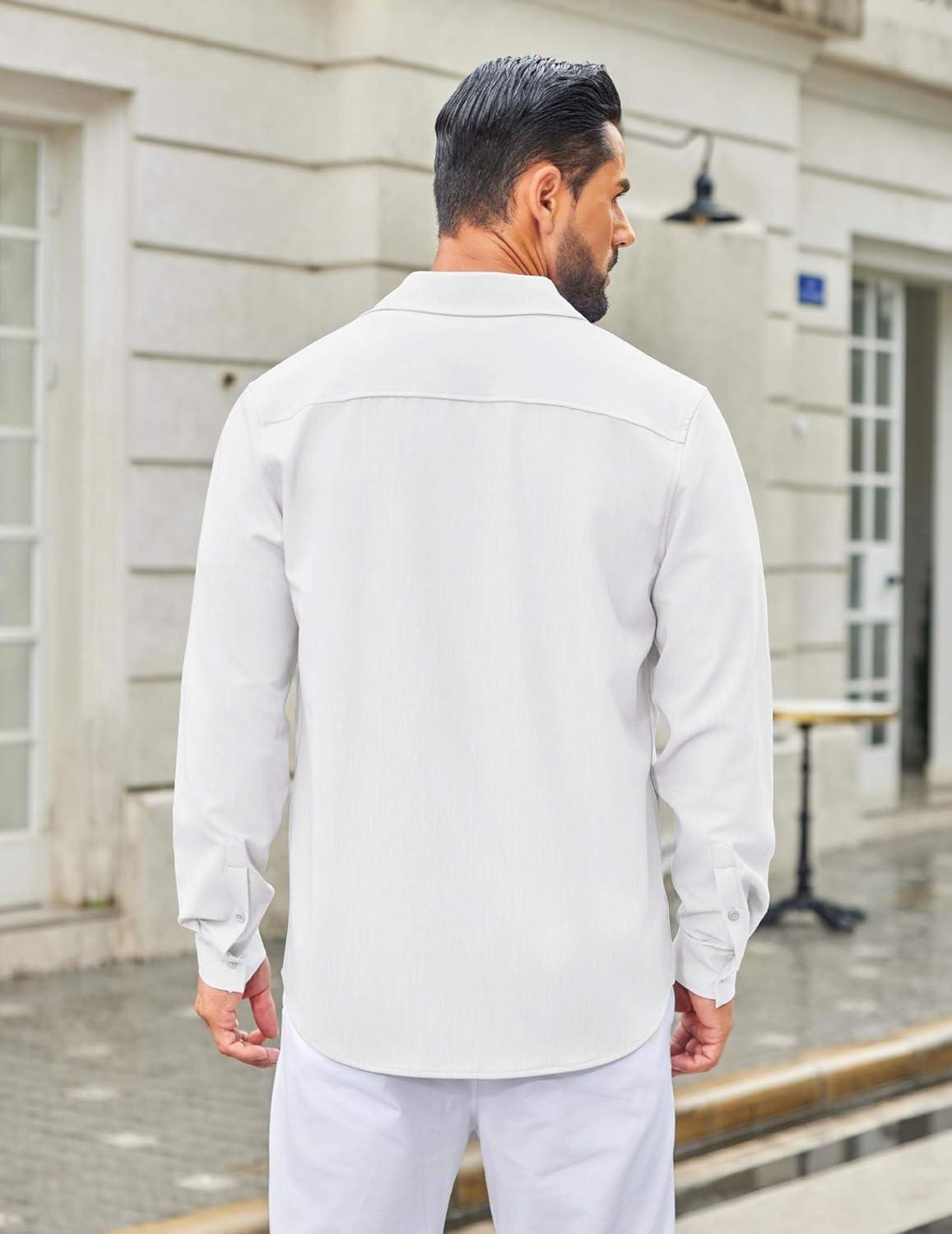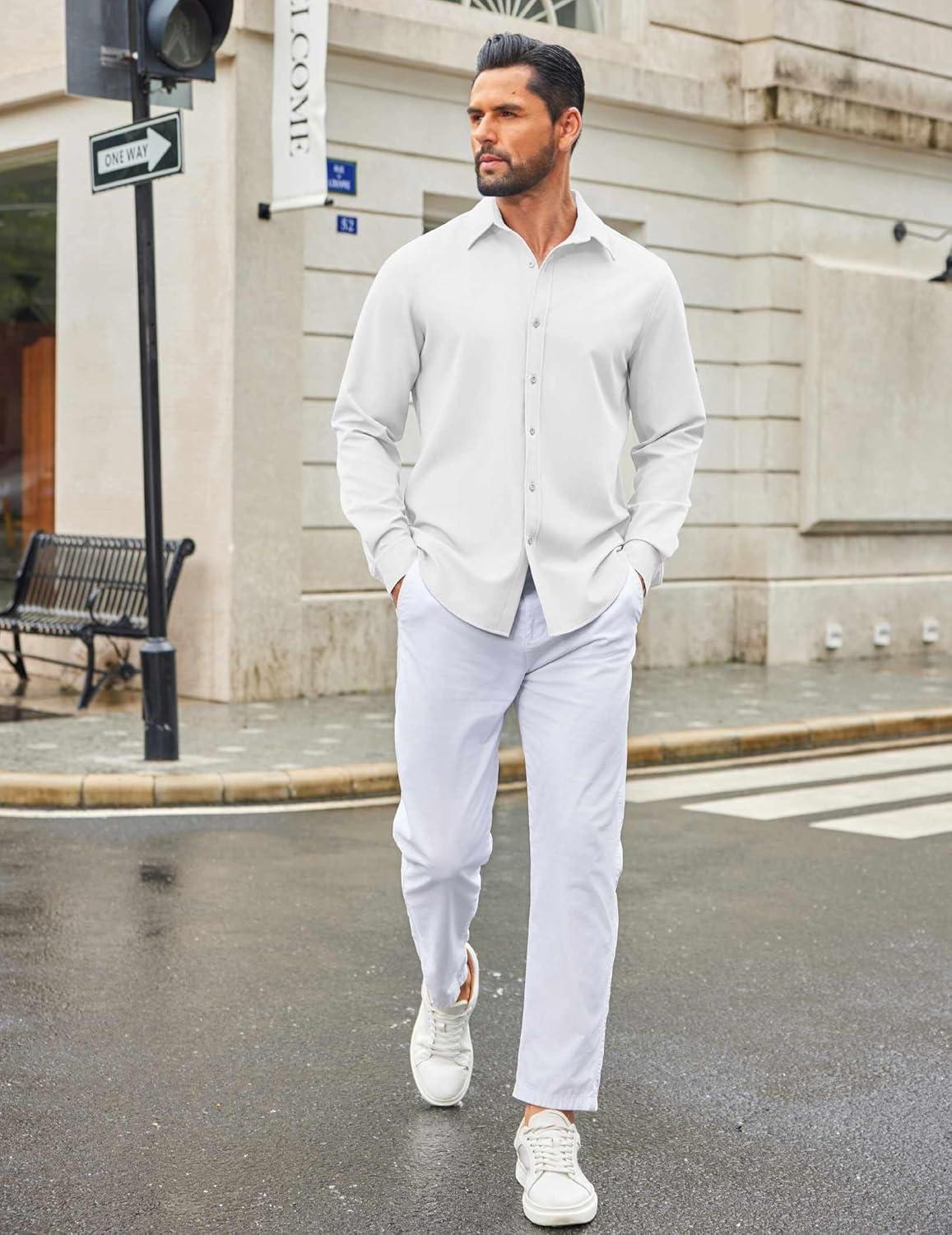 COOFANDY Men’s Casual Button Down Long Sleeve Untucked Denim Dress Shirt(White)