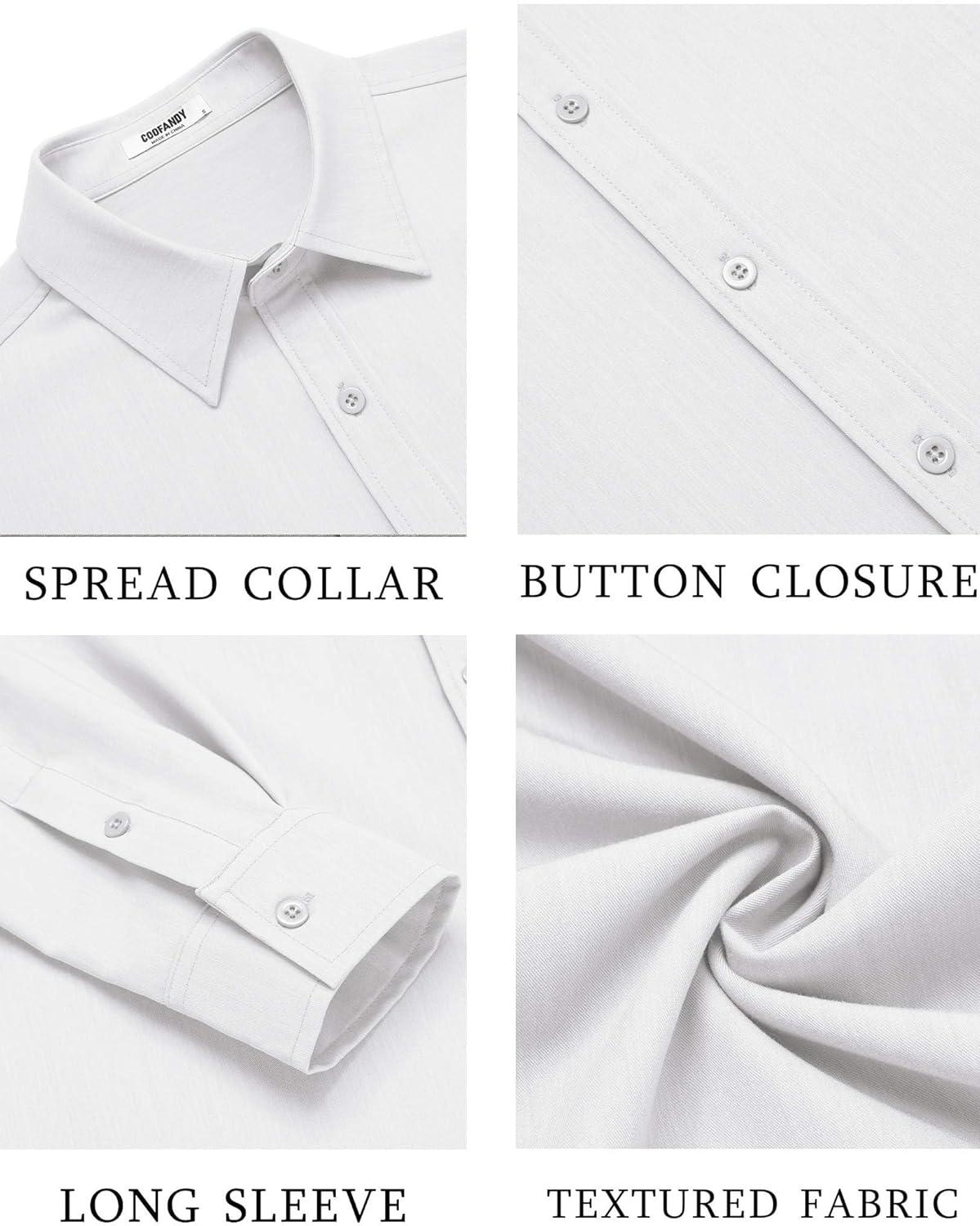 COOFANDY Men’s Casual Button Down Long Sleeve Untucked Denim Dress Shirt(Grey)