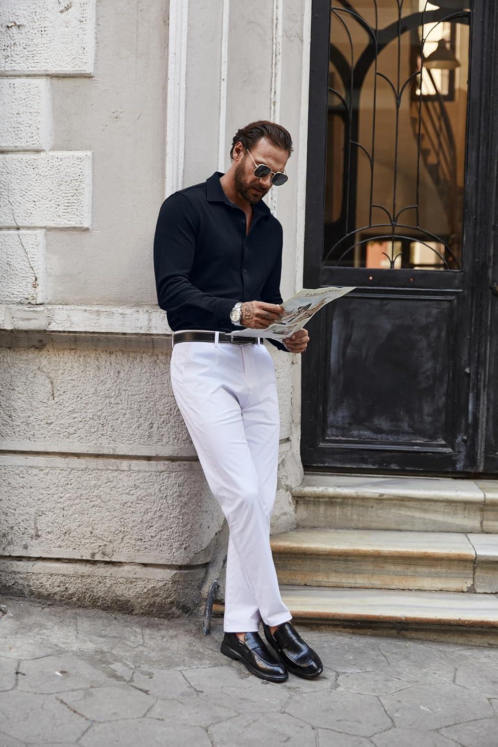 COOFANDY Mens Casual Button Down Shirt Long Sleeve Lightweight Jacket Fashion Textured Shirts(White)