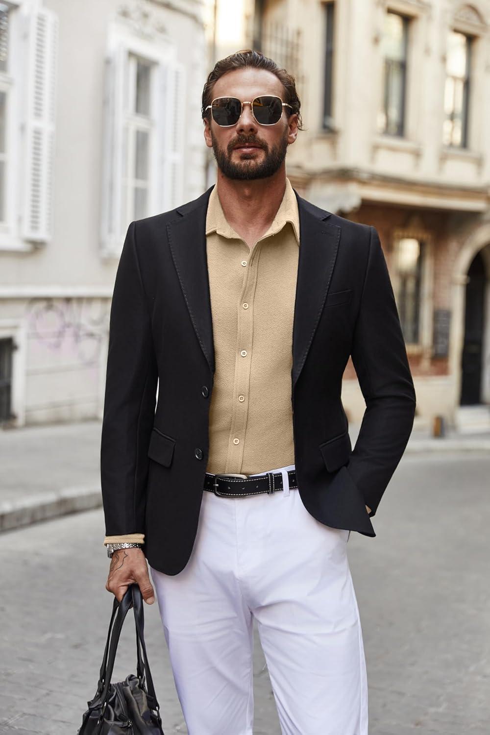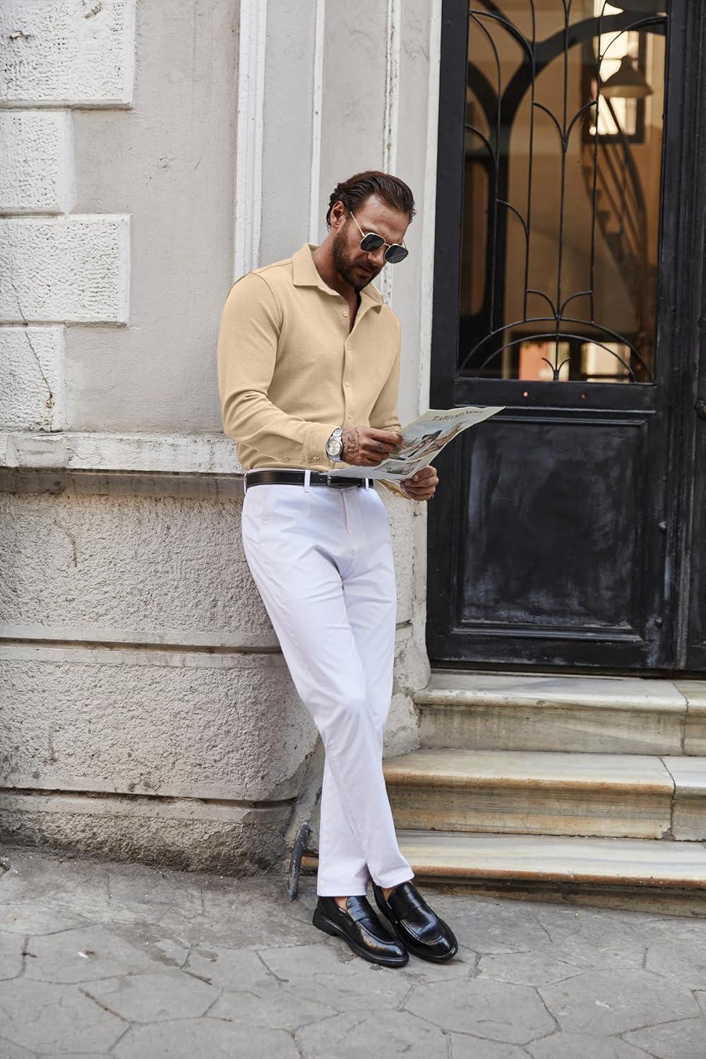 COOFANDY Mens Casual Button Down Shirt Long Sleeve Lightweight Jacket Fashion Textured Shirts(Light Grey)