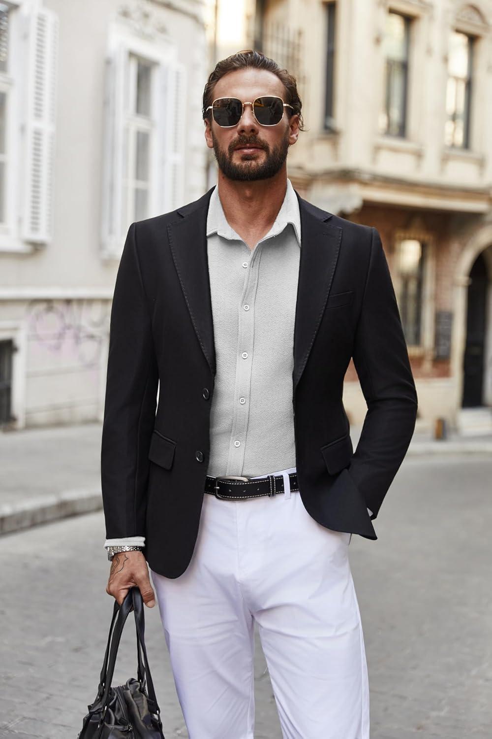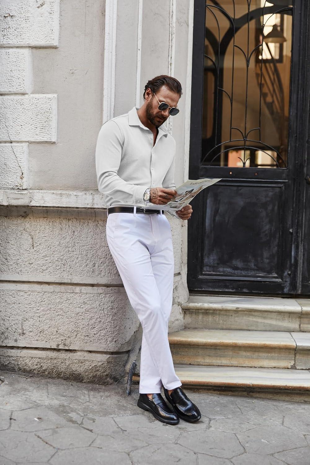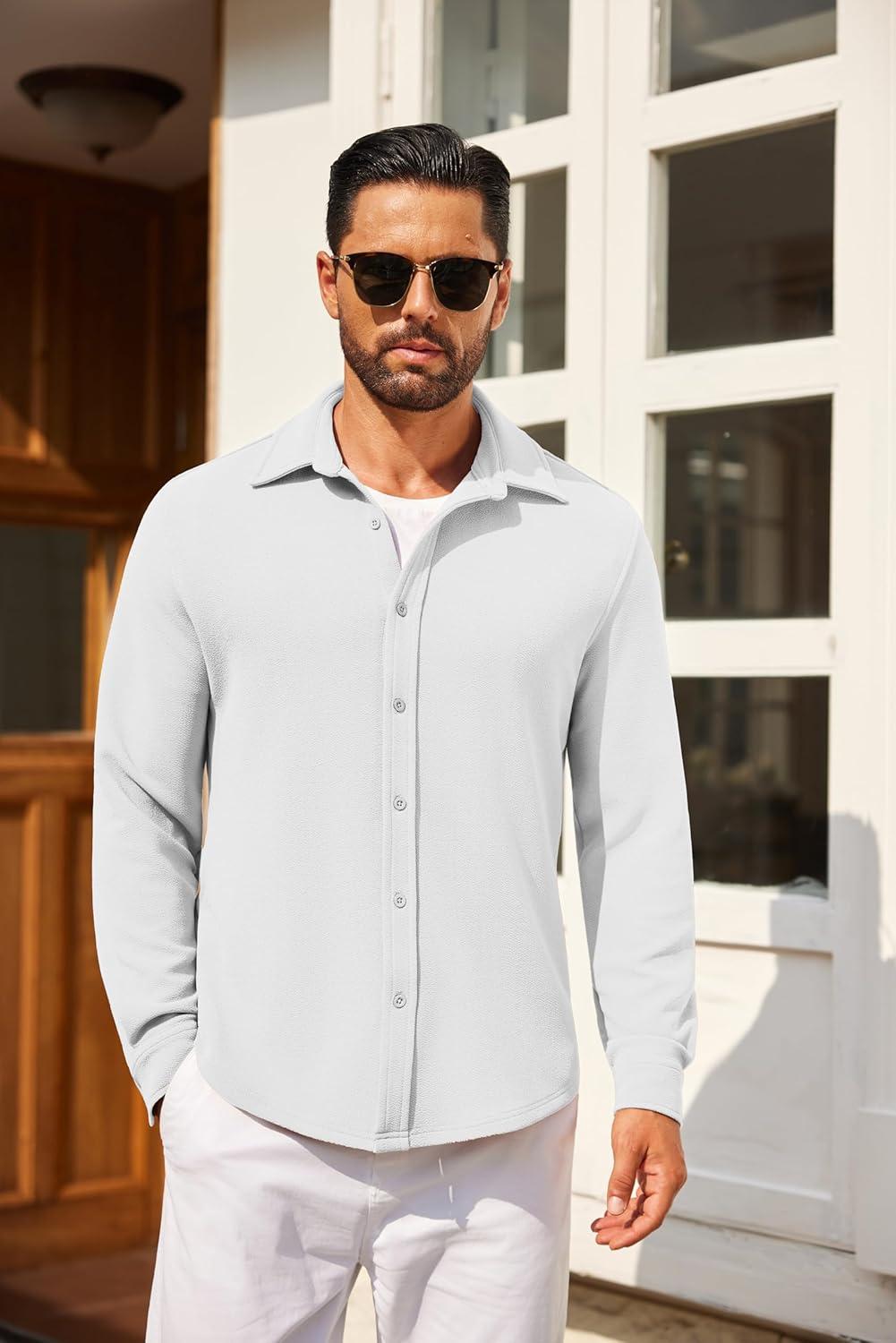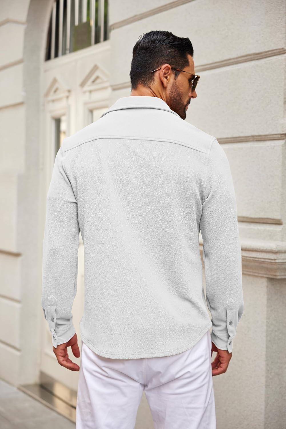 COOFANDY Mens Casual Button Down Shirt Long Sleeve Lightweight Jacket Fashion Textured Shirts(White)