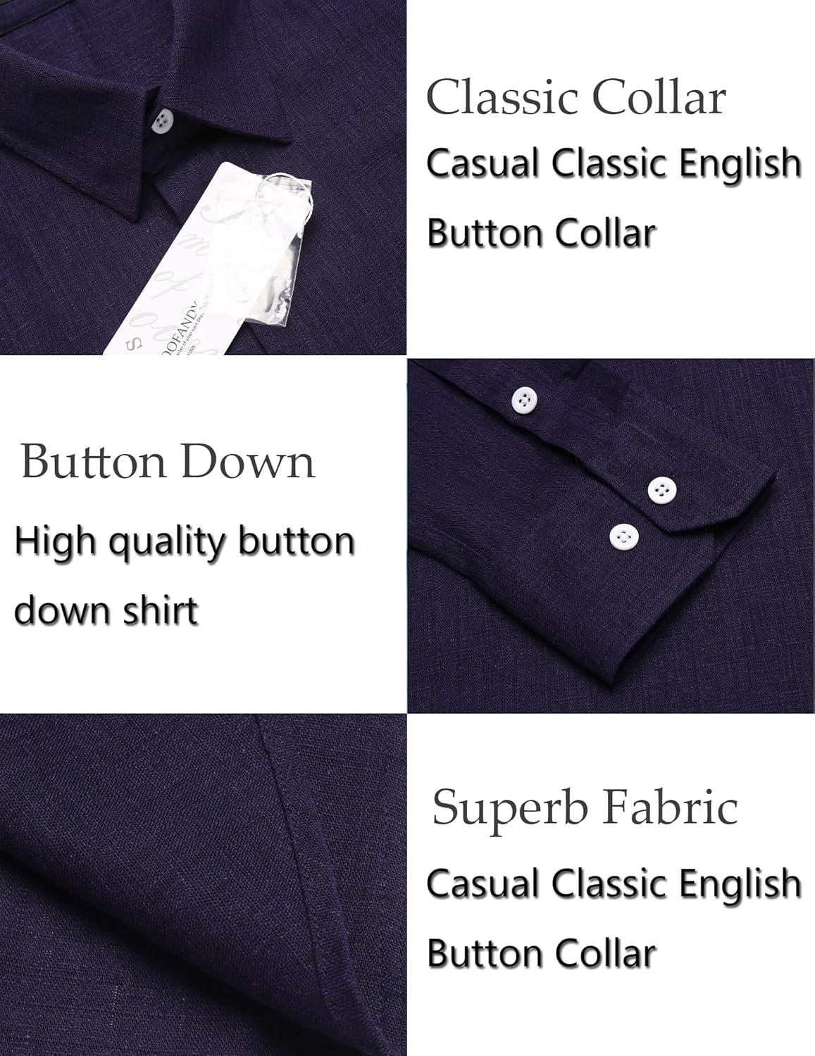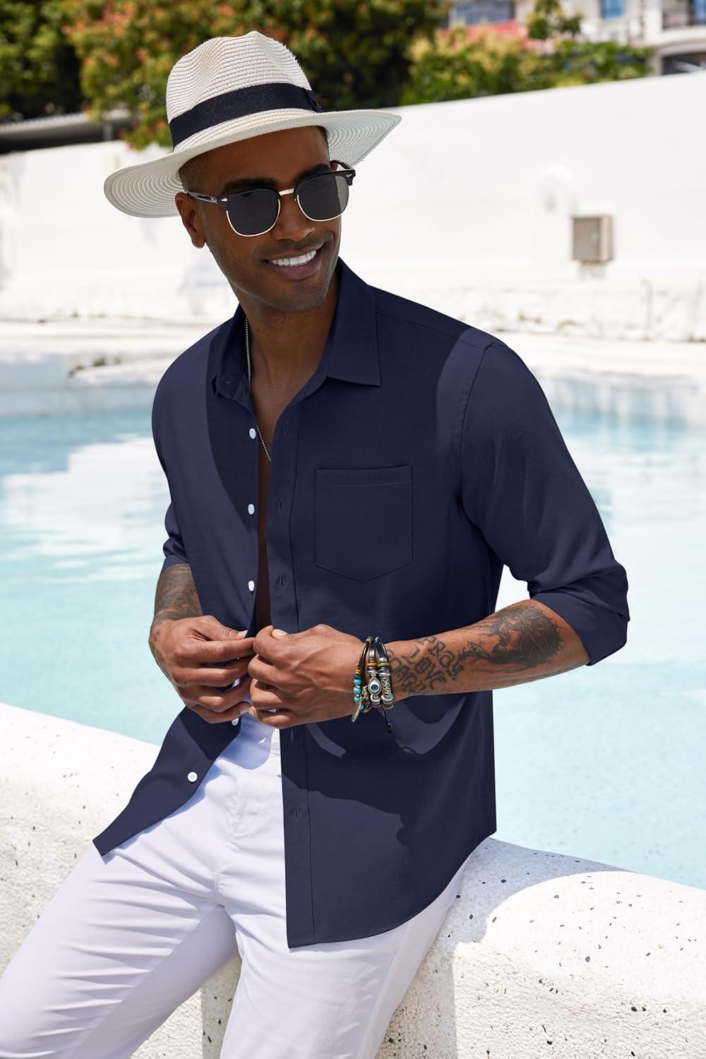 COOFANDY Men's Casual Button Down Shirt Long Sleeve Linen Chambray Shirt(1- Royal Blue)