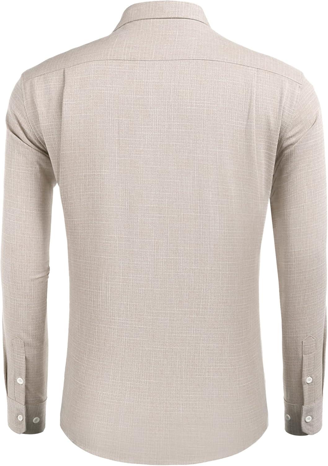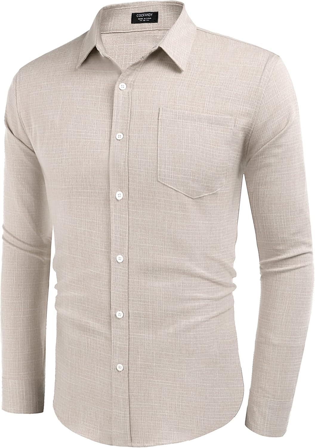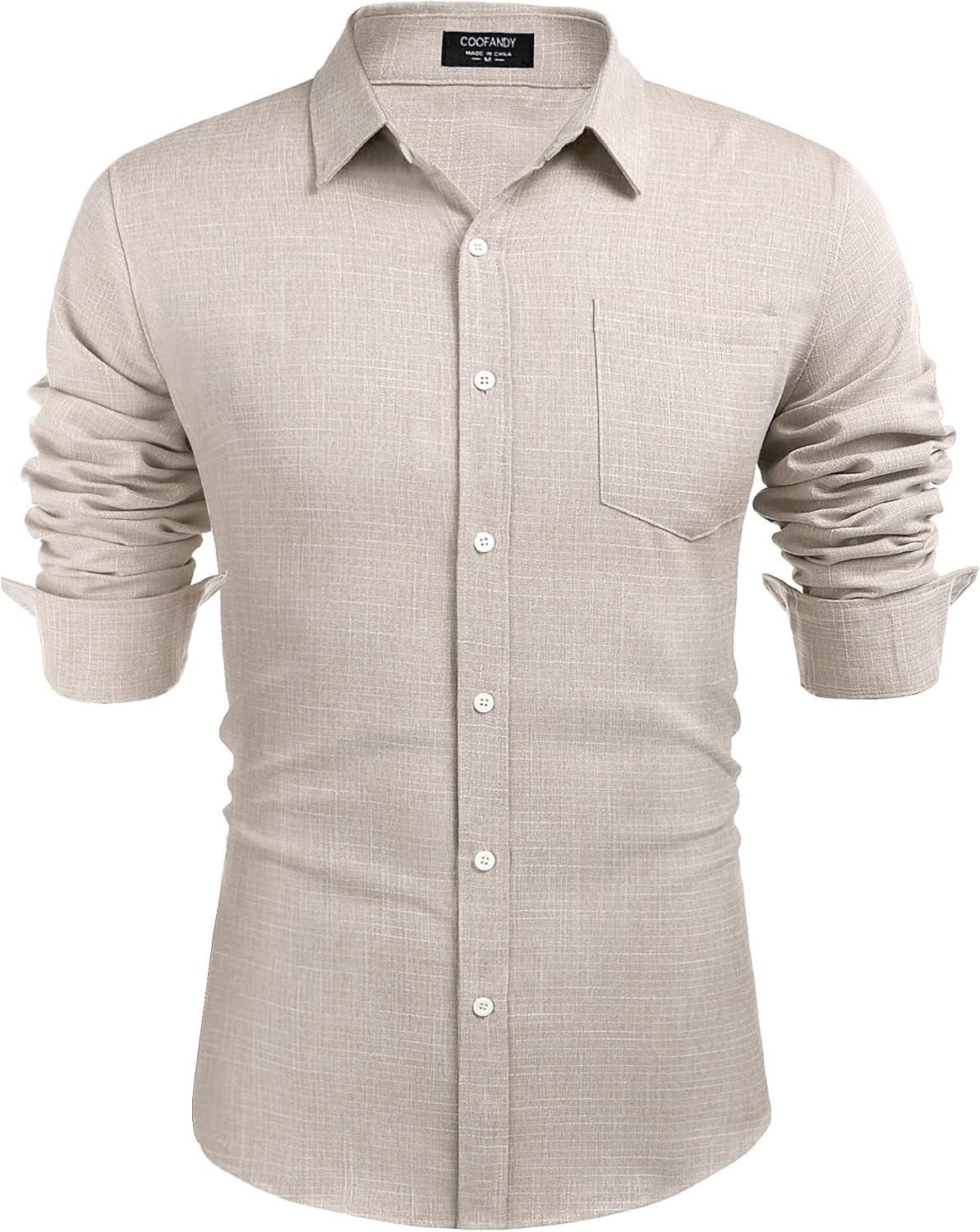 COOFANDY Men's Casual Button Down Shirt Long Sleeve Linen Chambray Shirt(Khaki)