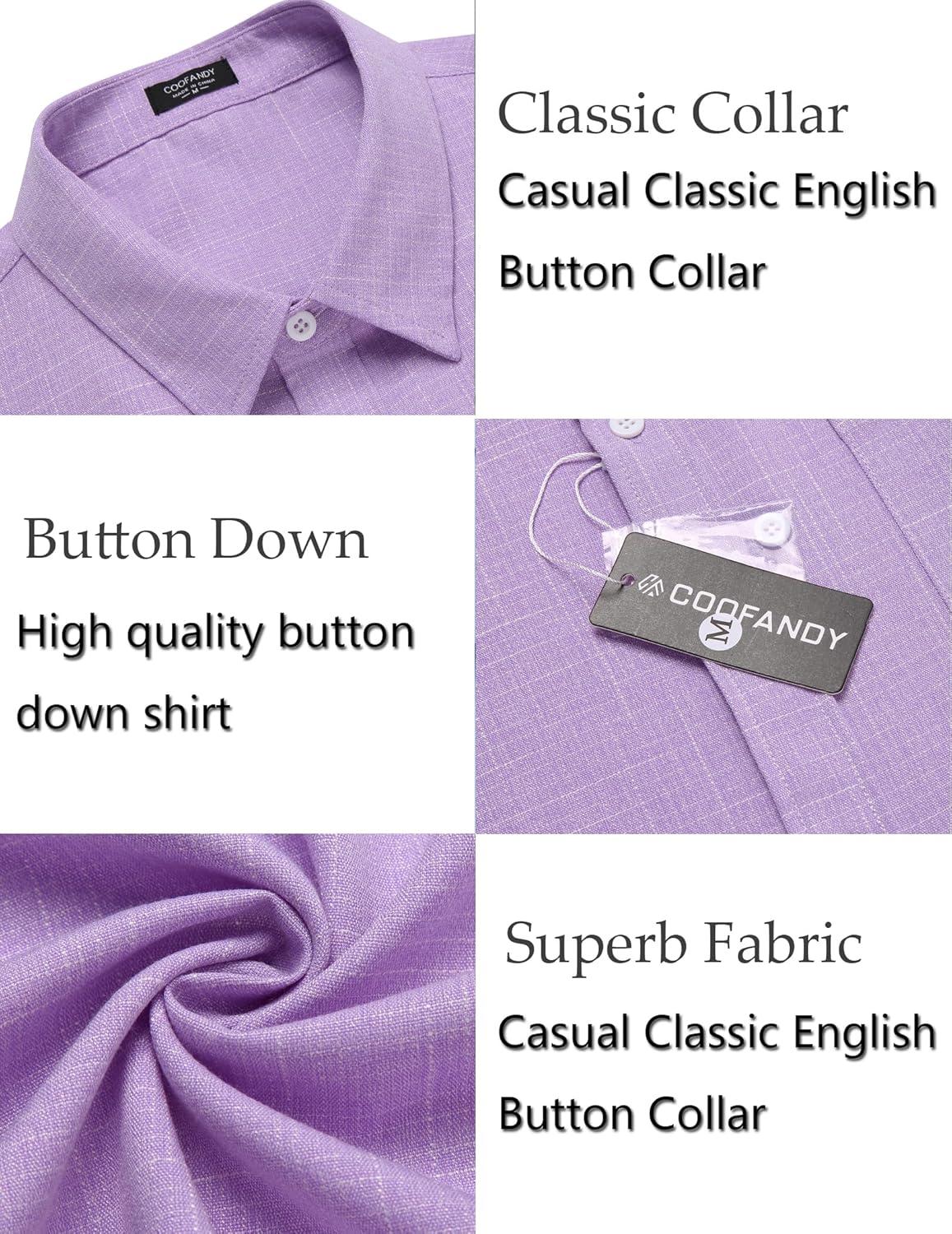 COOFANDY Men's Casual Button Down Shirt Long Sleeve Linen Chambray Shirt(Purple)