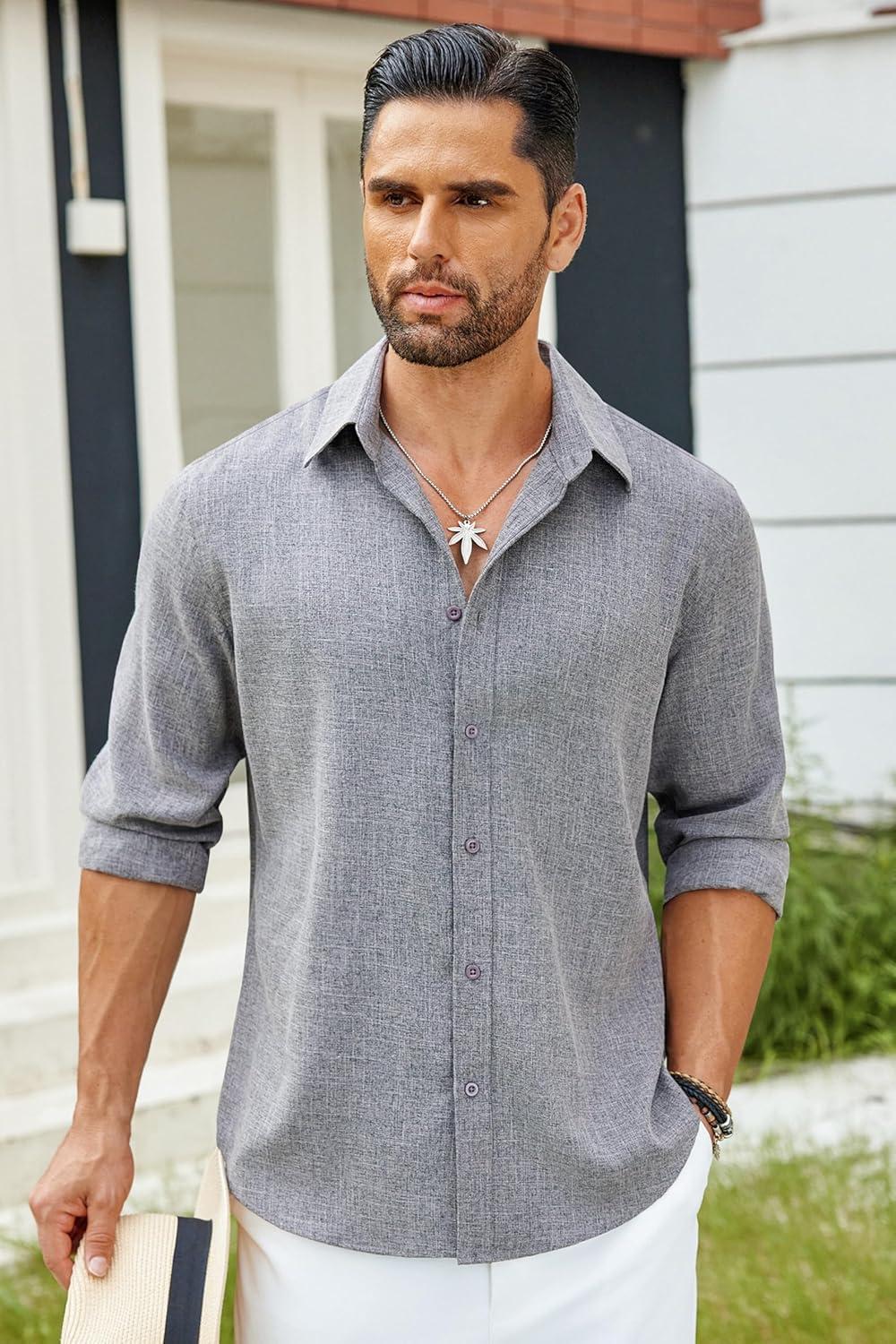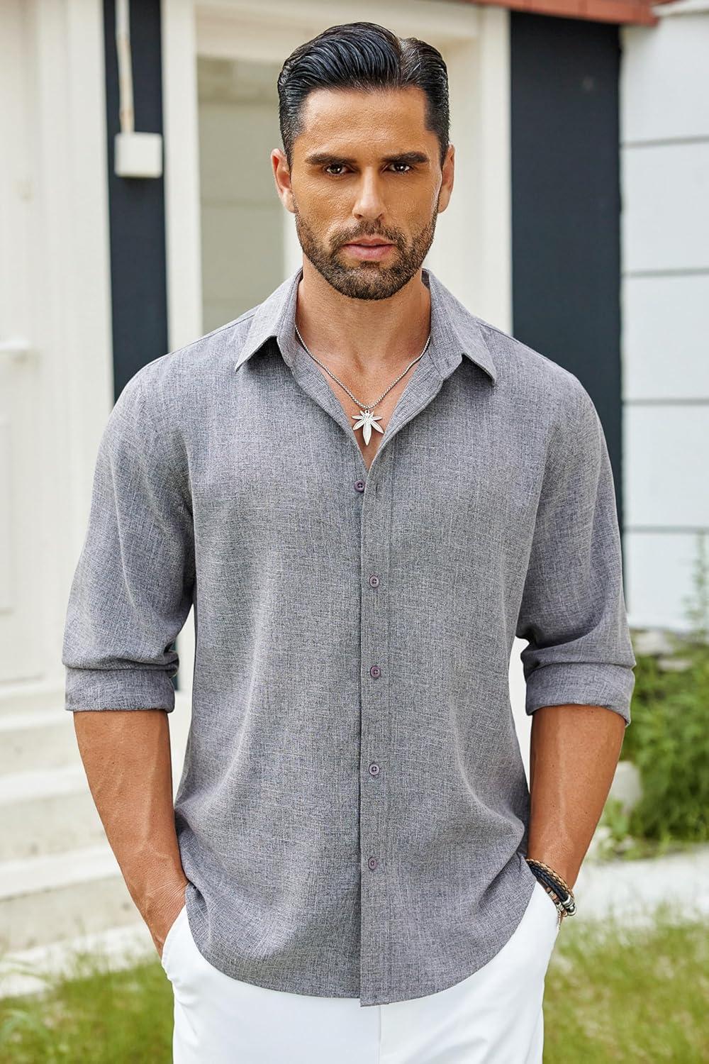 COOFANDY Men's Casual Button Down Shirt Long Sleeve Untucked Chambray Shirt Wrinkle Free Dress Shirts(Granite Gray)