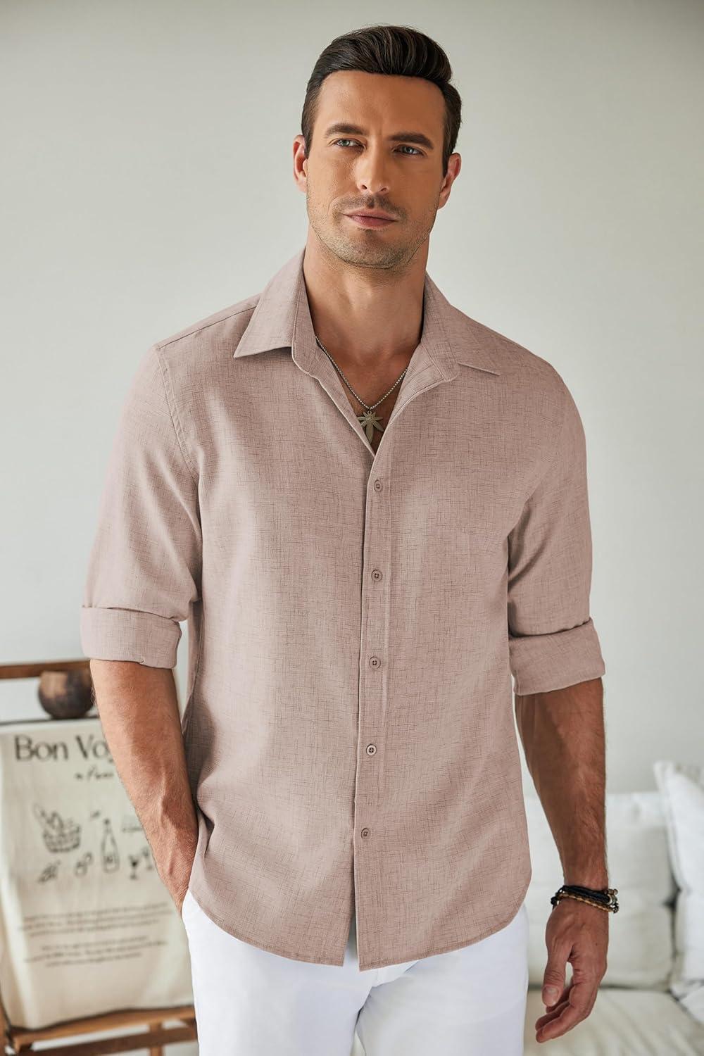 COOFANDY Men's Casual Button Down Shirt Long Sleeve Untucked Chambray Shirt Wrinkle Free Dress Shirts(Sesame)