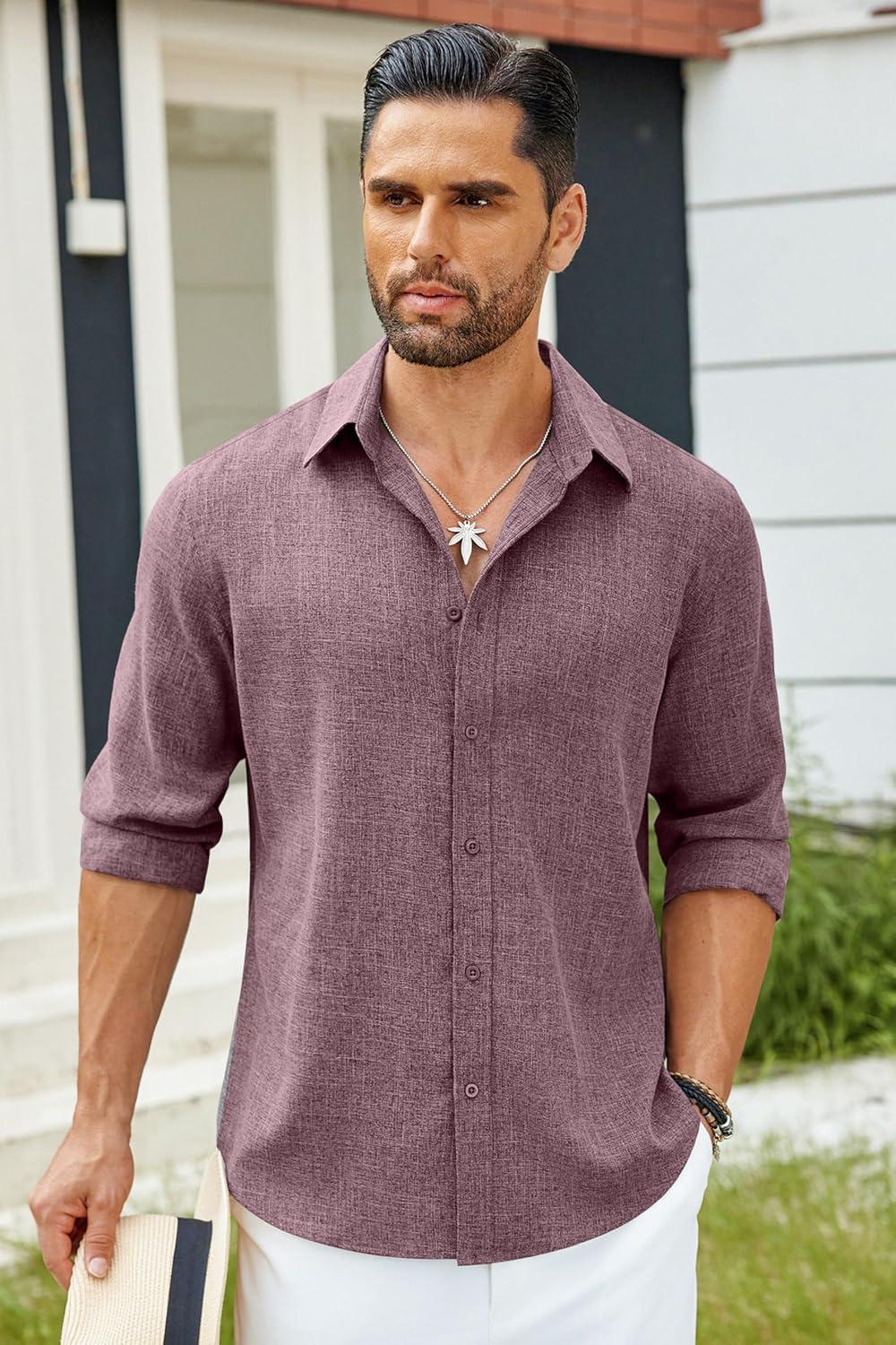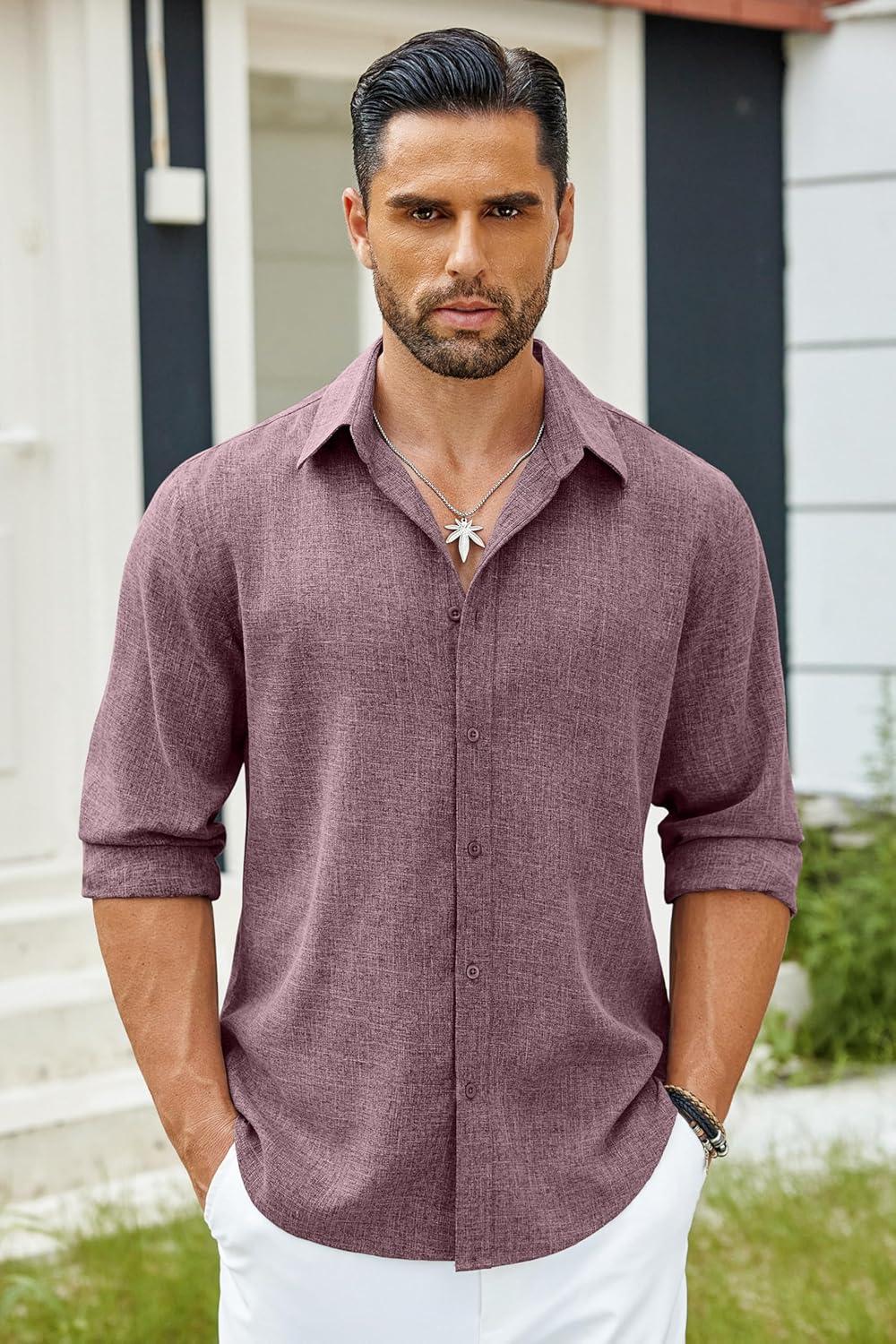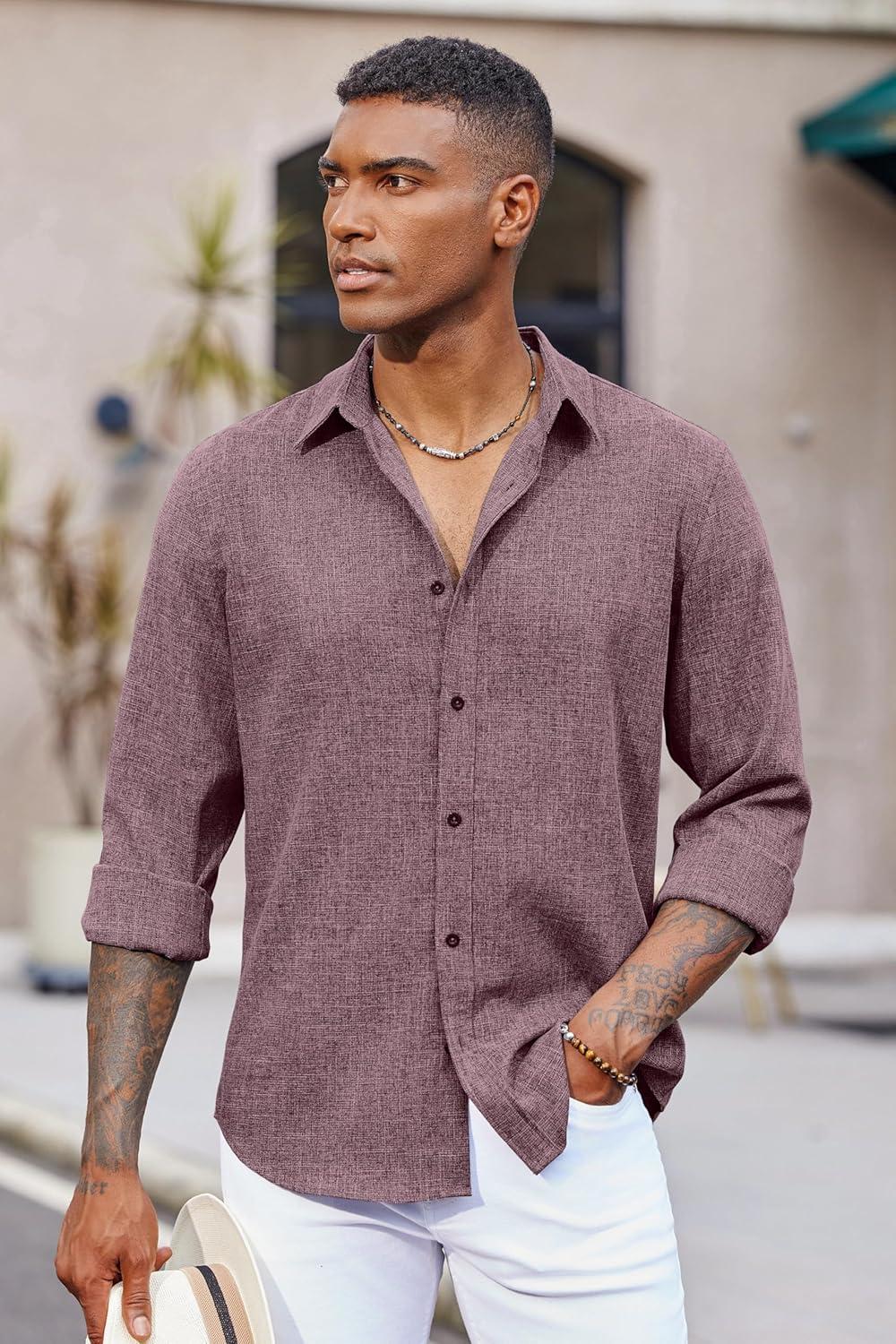COOFANDY Men’s Casual Button Down Shirt Long Sleeve Untucked Chambray Shirt Wrinkle Free Dress Shirts(Tawny Port)