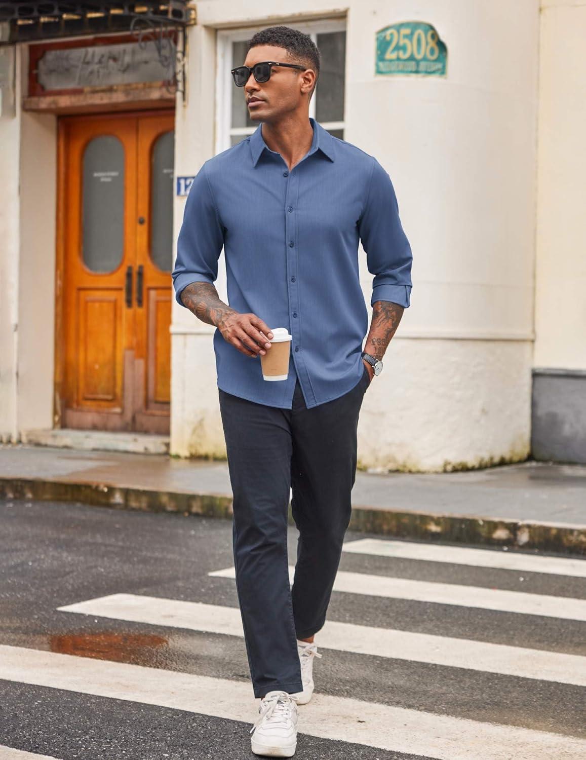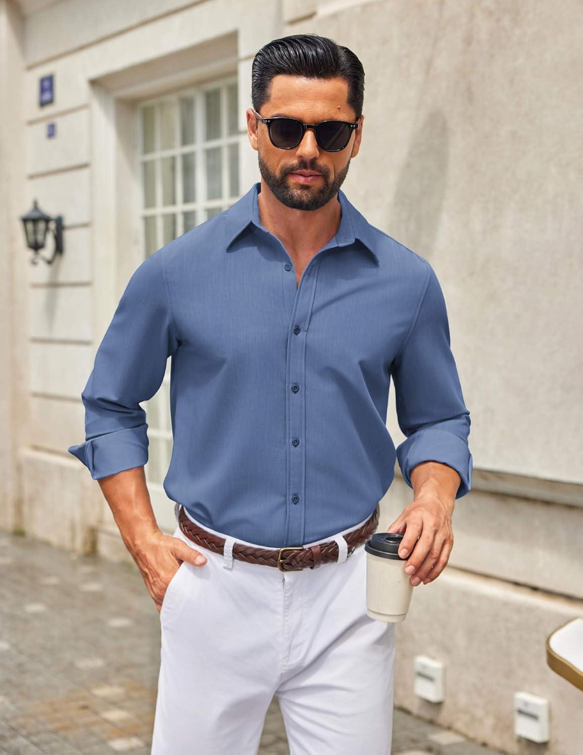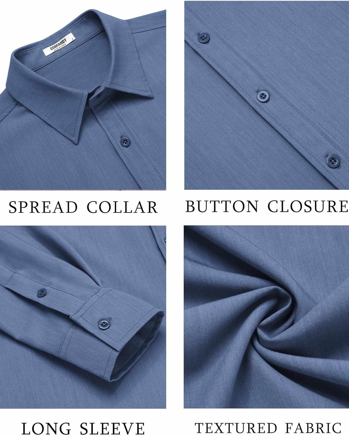 COOFANDY Men's Casual Button Down Shirt Long Sleeve Untucked Shirt Wrinkle Free Denim Dress Shirt(Blue)