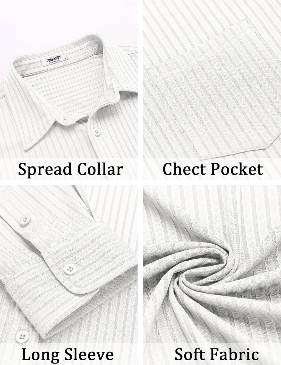 Get the COOFANDY Men’s Casual Button Down Shirt Long Sleeve Wrinkle Free Shirts Loose fit Shirt Textured Stretch Shirts with Pocket(White) you want at a discounted price during our markdown sale event.