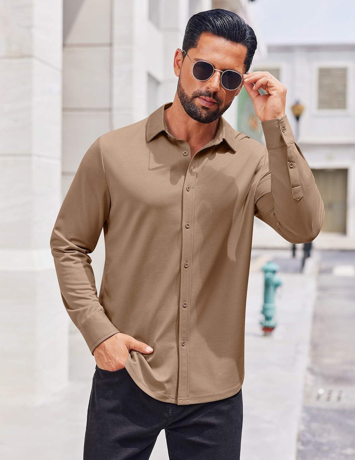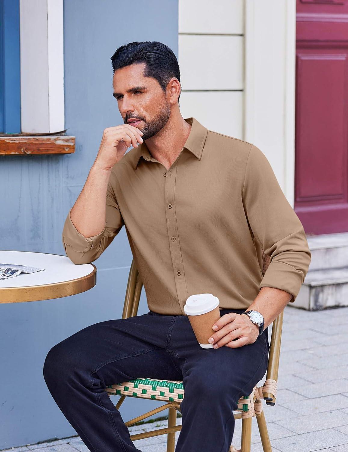 Get the COOFANDY Mens Casual Button Down Shirt Long Sleeve Wrinkle Free Shirts Stretch Dress Shirt(Khaki) you want at a discounted price during our markdown sale event.