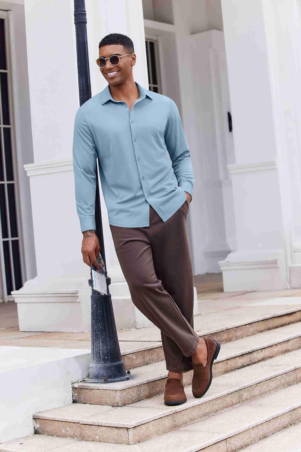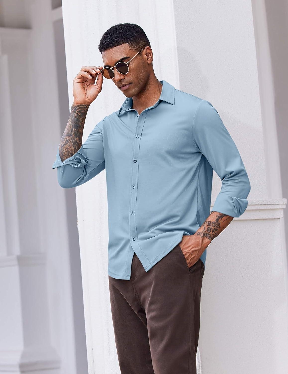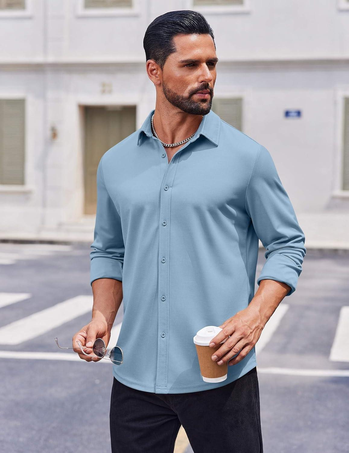 Don’t break the bank! Get the COOFANDY Mens Casual Button Down Shirt Long Sleeve Wrinkle Free Shirts Stretch Dress Shirt(Light Blue) you want at a price you can afford during our markdown sale.