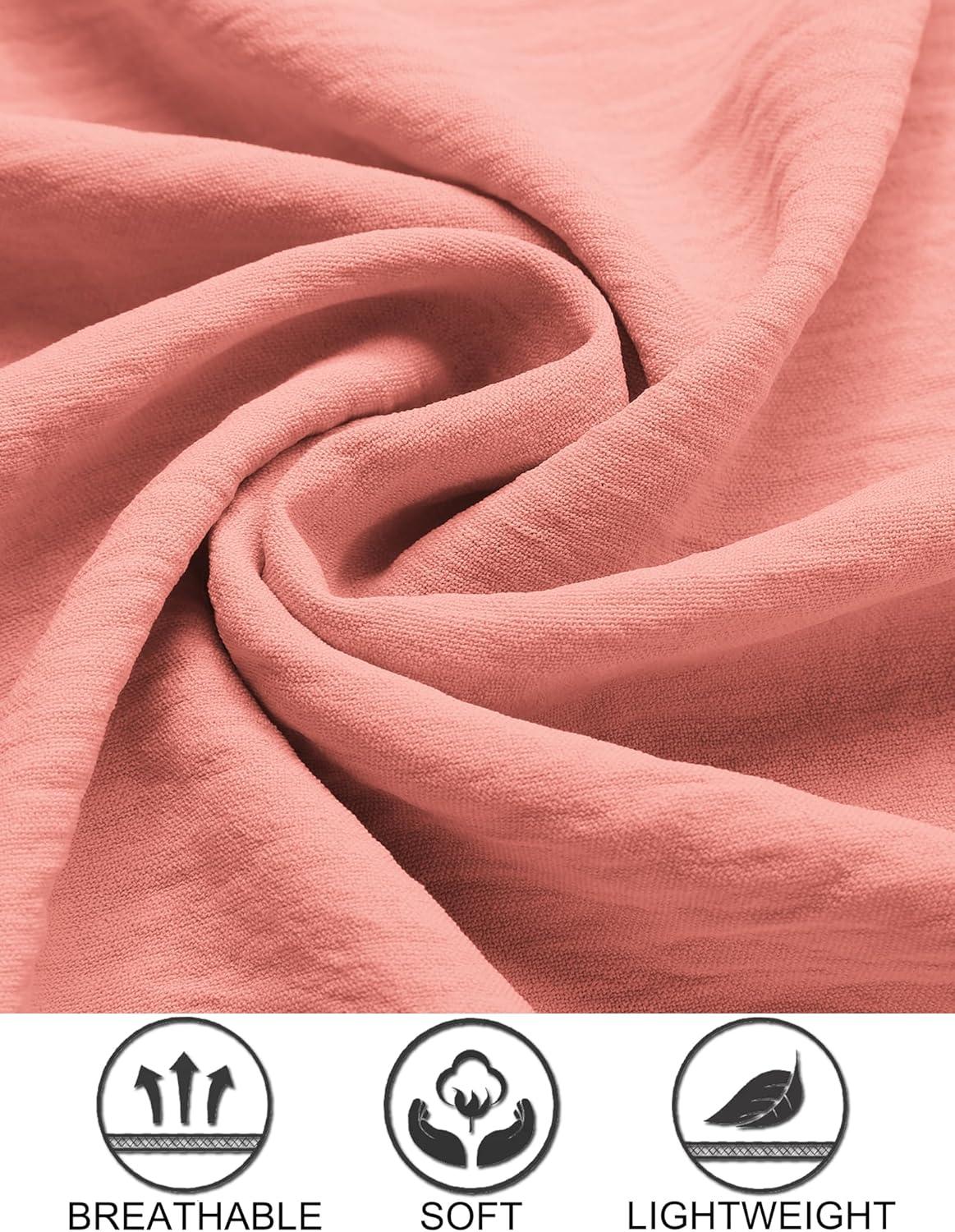 COOFANDY Men's Casual Button Down Shirt Short Sleeve Textured Summer Cuban Beach Shirts(Pink)