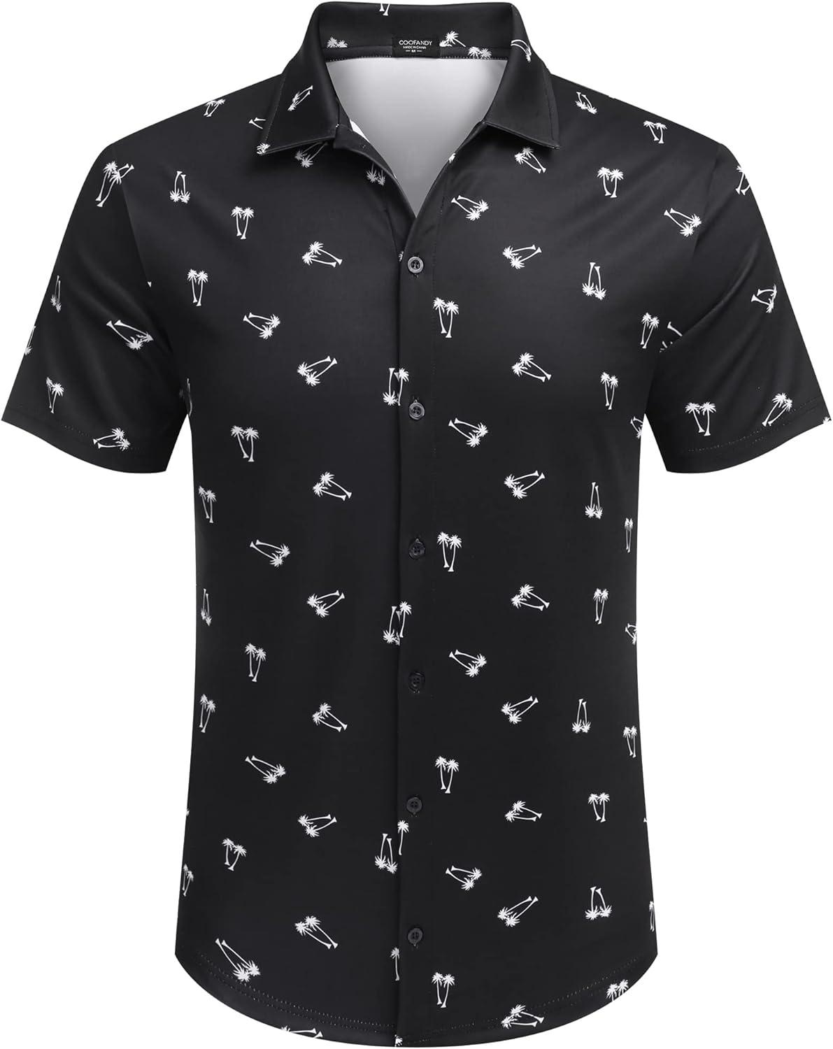 COOFANDY Mens Casual Button Down Shirt Short Sleeve Wrinkle Free Shirts Summer Shirt(Black Palm Tree)