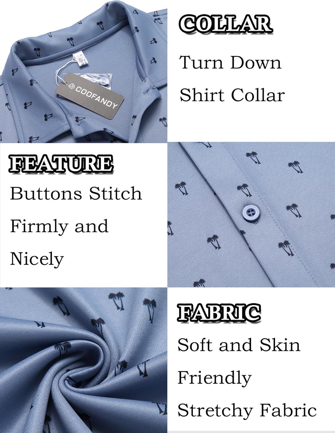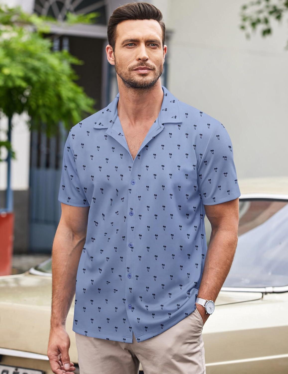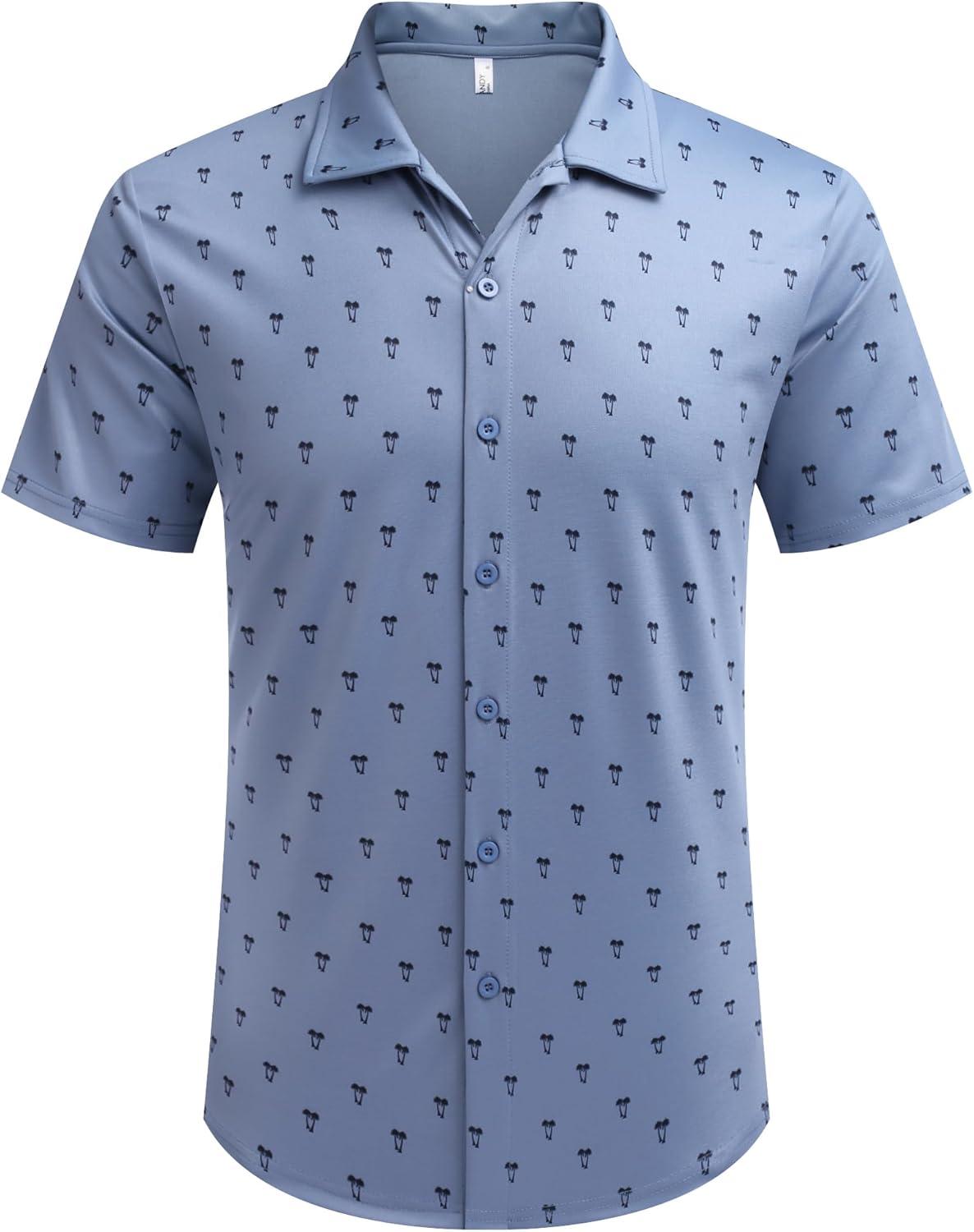 COOFANDY Mens Casual Button Down Shirt Short Sleeve Wrinkle Free Shirts Summer Shirt(Blue Palm Tree)