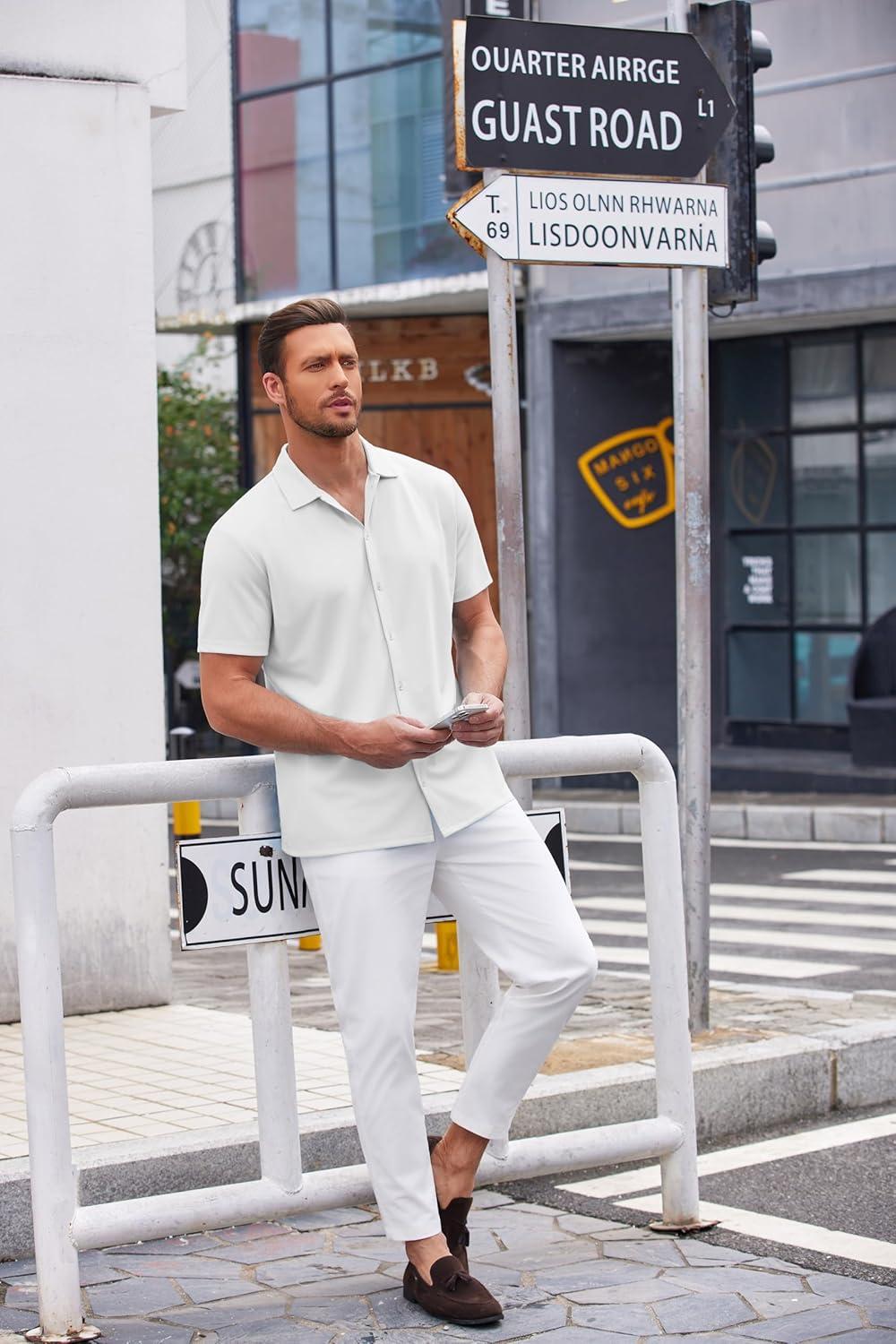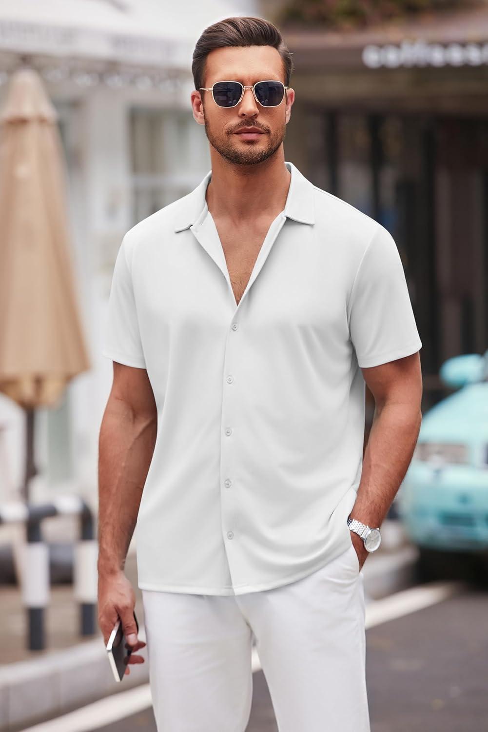 COOFANDY Mens Casual Button Down Shirt Short Sleeve Wrinkle Free Shirts Summer Shirt(White)