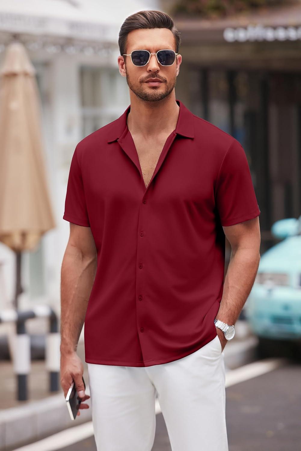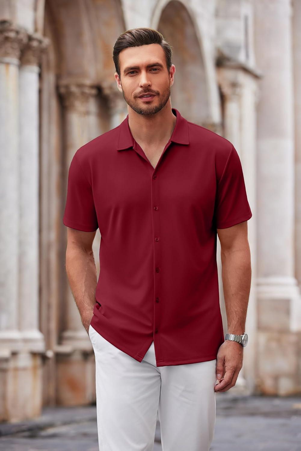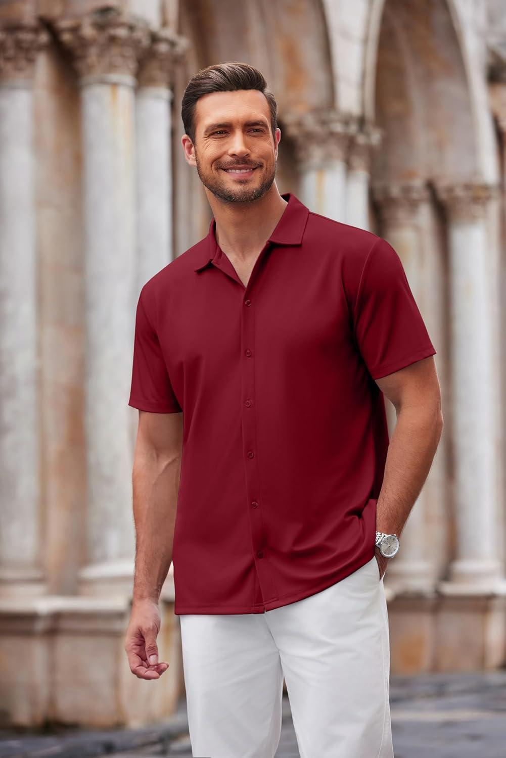 COOFANDY Mens Casual Button Down Shirt Short Sleeve Wrinkle Free Shirts Summer Shirt(Wine Red)