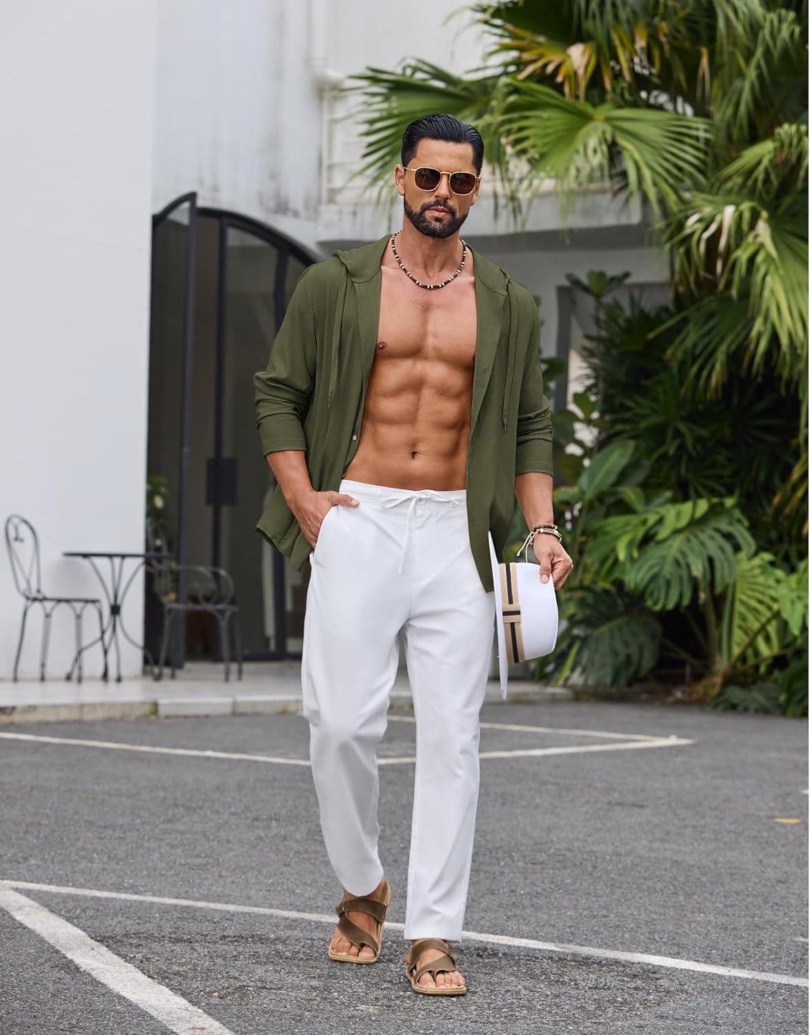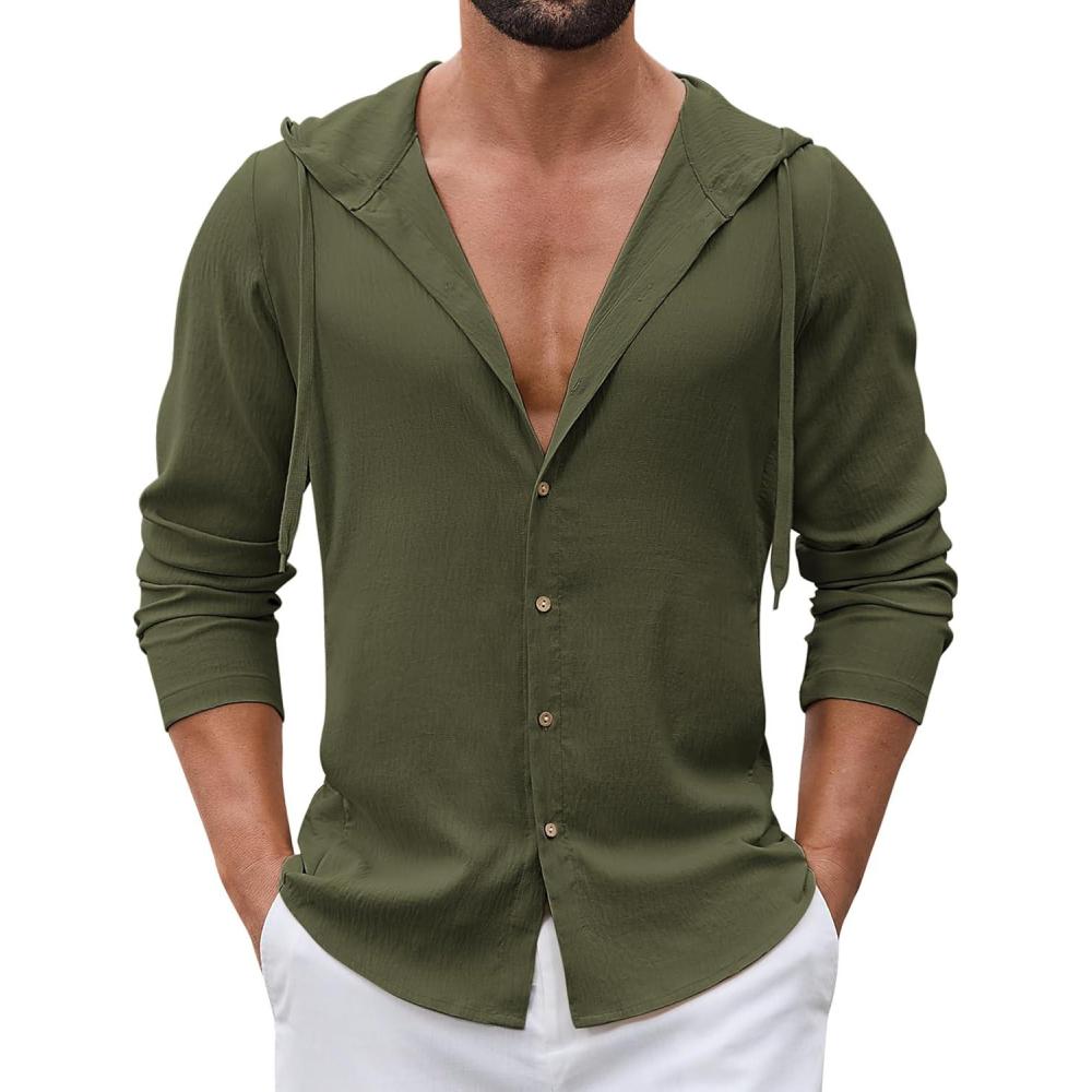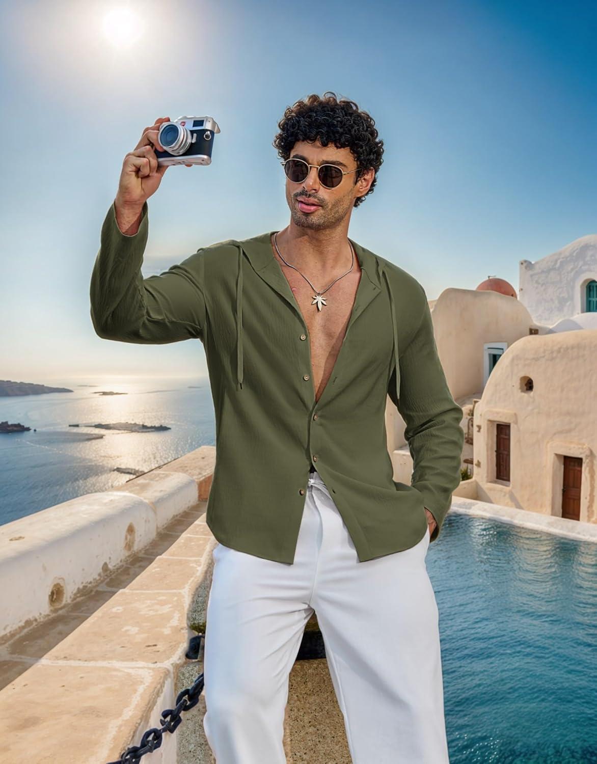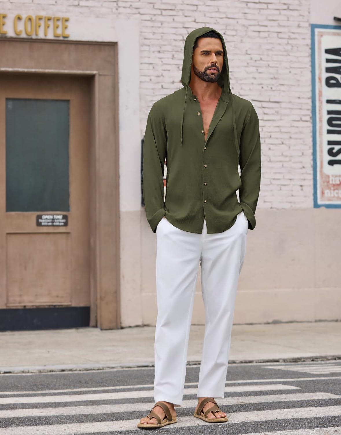 COOFANDY Mens Casual Button Down Shirt Summer Beach Shirts Lightweight Hoodie Sun Protection Coverup for Travel Vacation(Army Green)