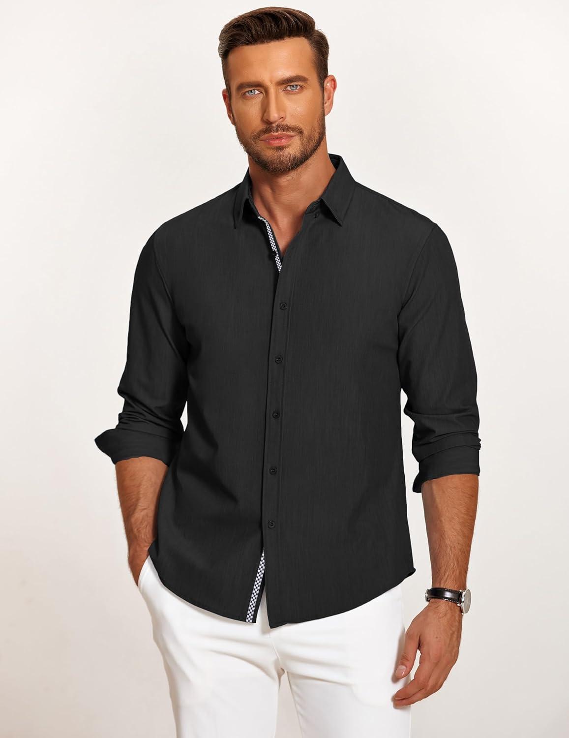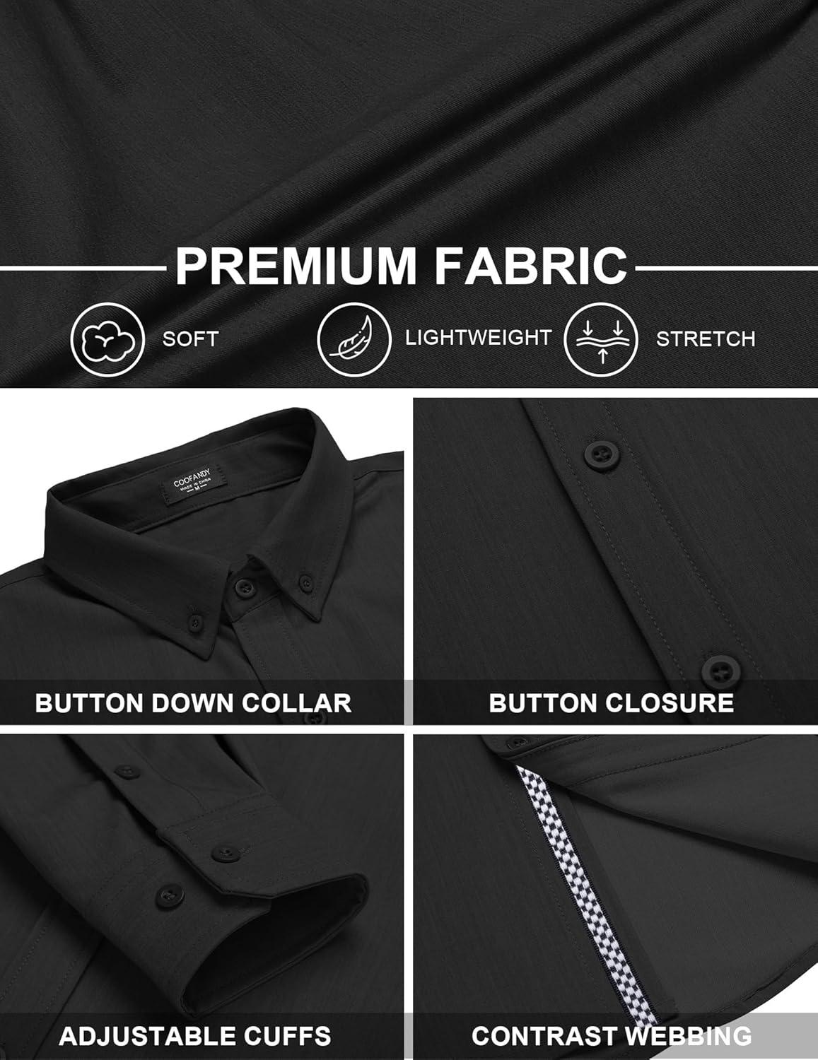 COOFANDY Mens Casual Button Down Shirt Untucked Long Sleeve Stretch Denim Dress Shirt(Black-plaid)