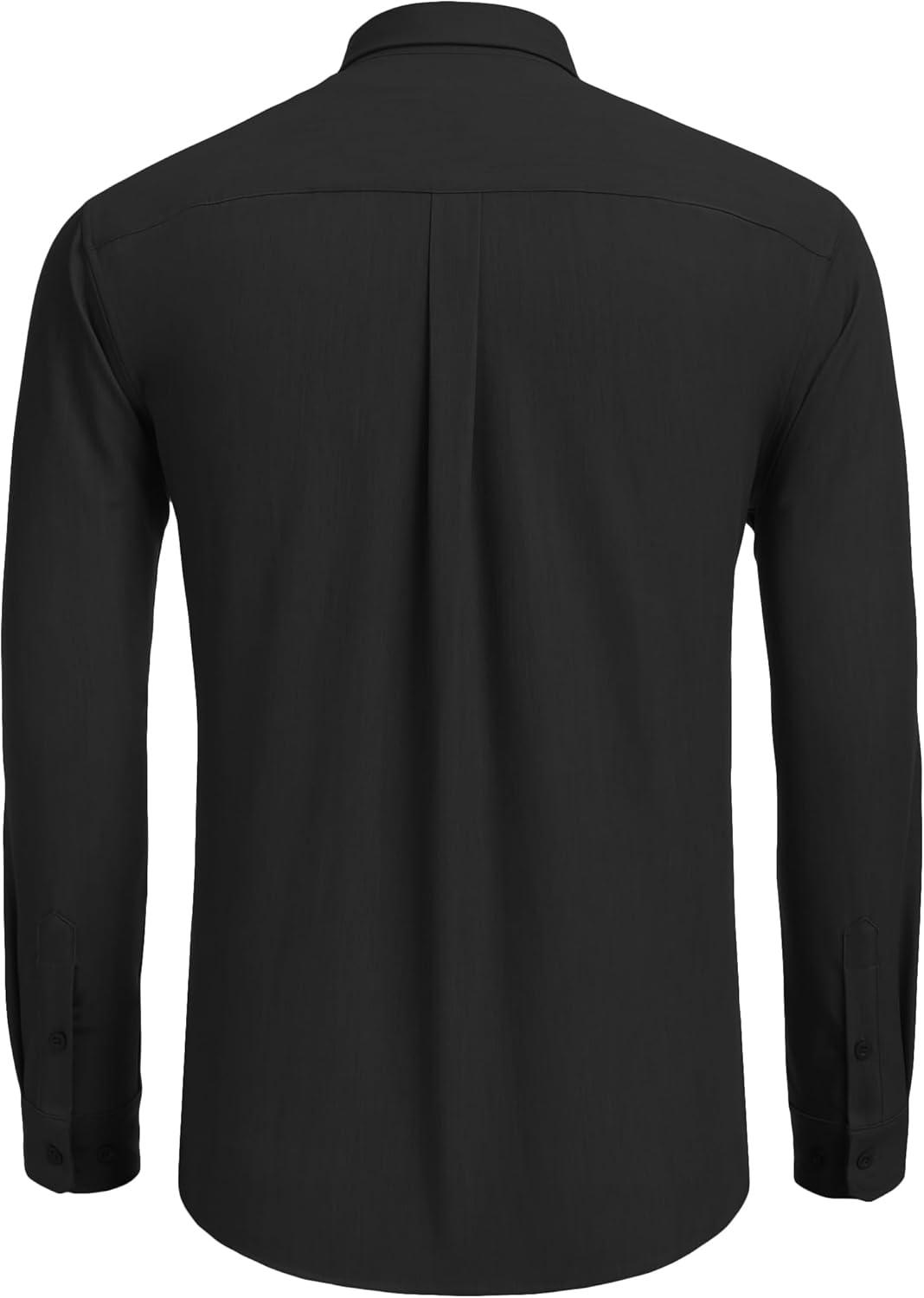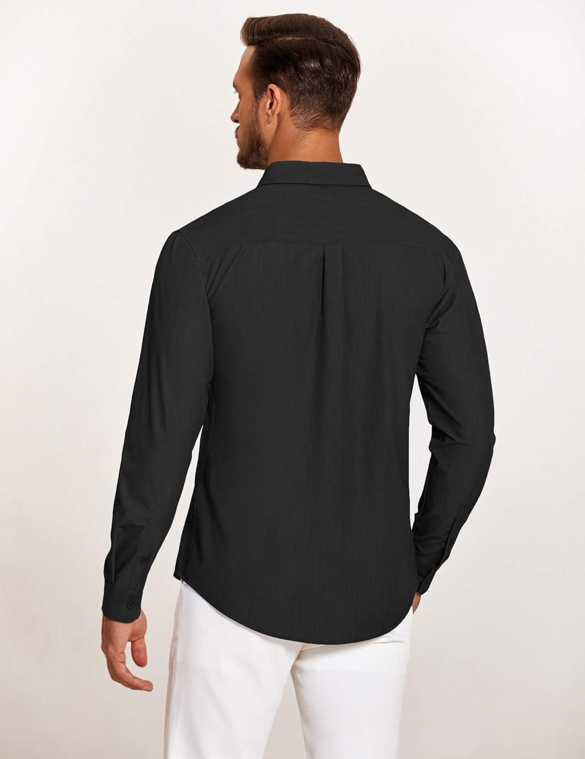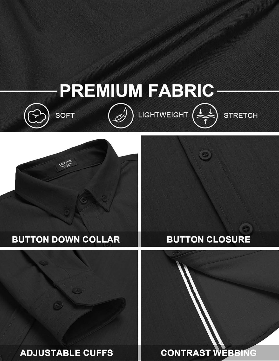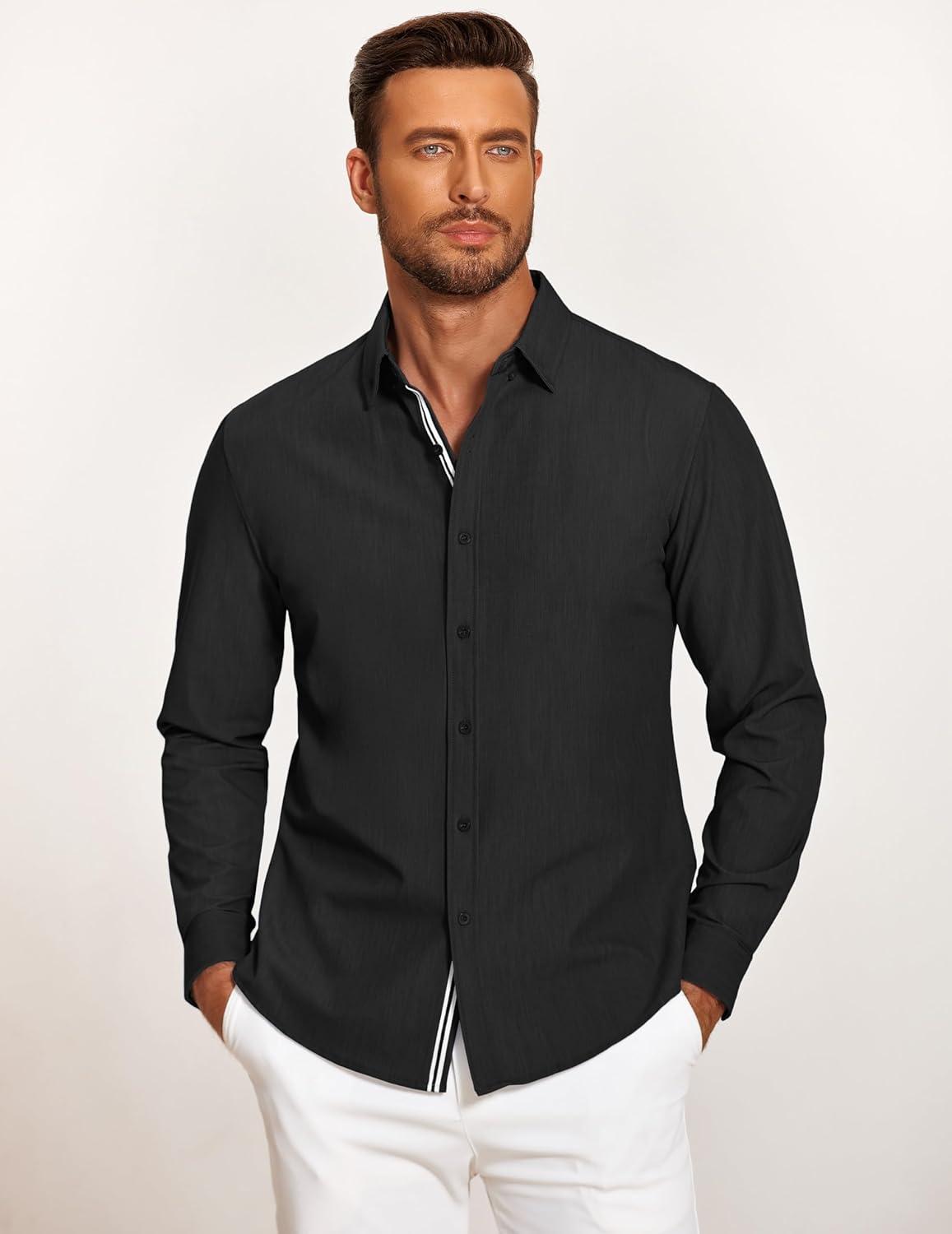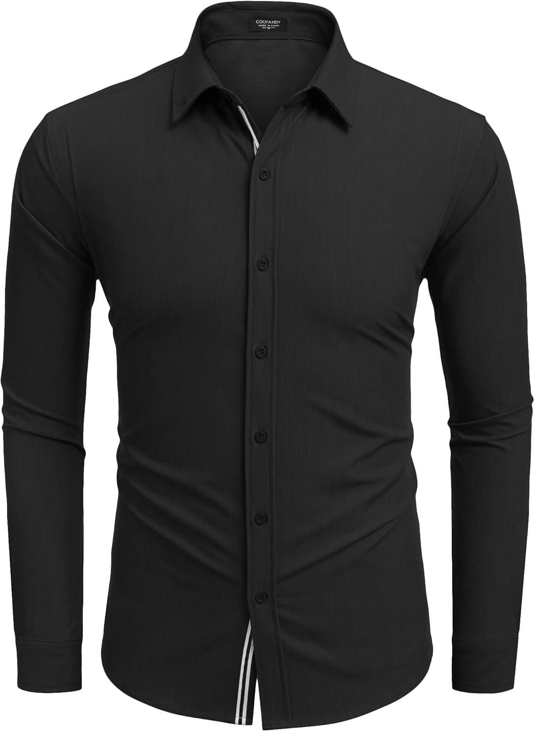 COOFANDY Mens Casual Button Down Shirt Untucked Long Sleeve Stretch Denim Dress Shirt(Black)