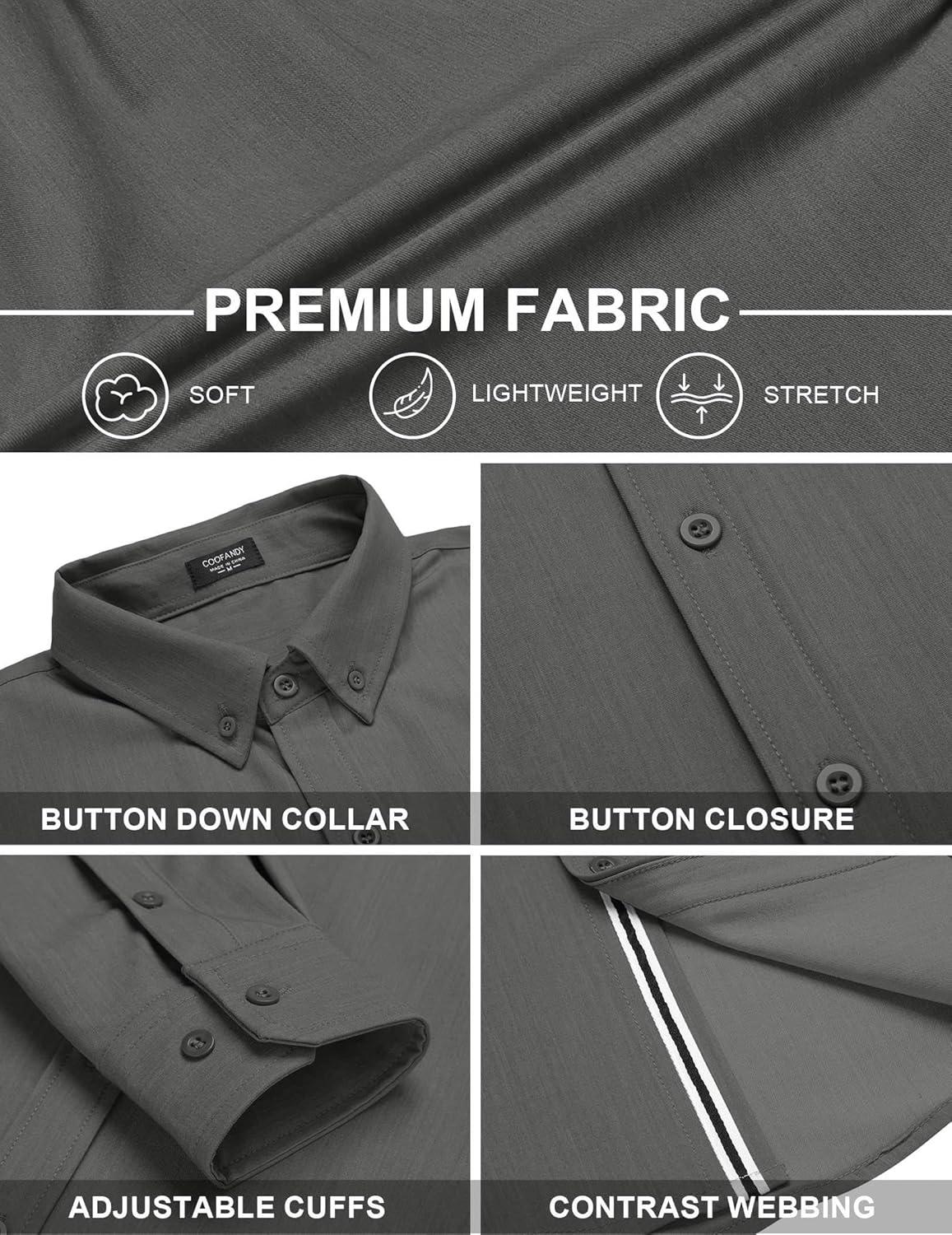 COOFANDY Mens Casual Button Down Shirt Untucked Long Sleeve Stretch Denim Dress Shirt(Dark Grey)