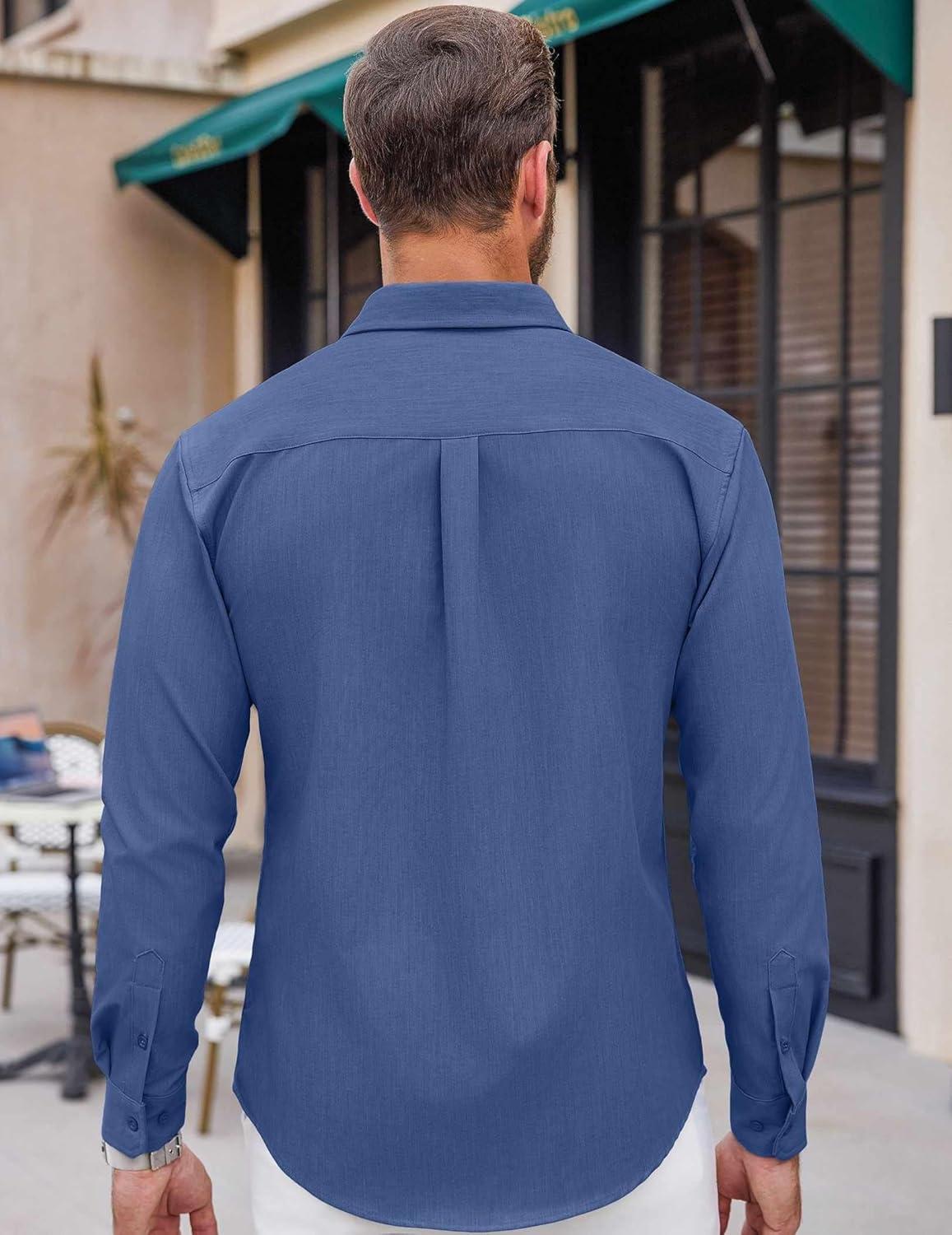 COOFANDY Mens Casual Button Down Shirt Untucked Long Sleeve Stretch Denim Dress Shirt(Denim Blue)