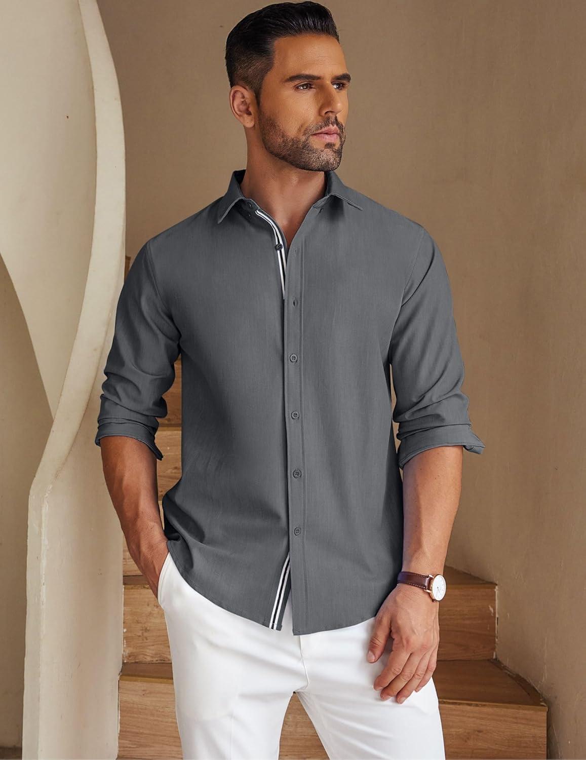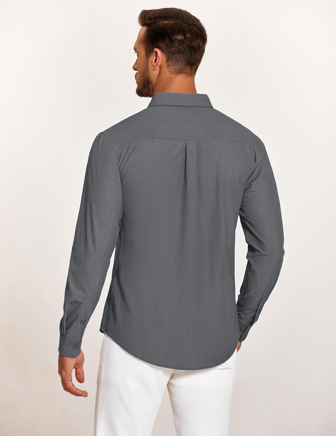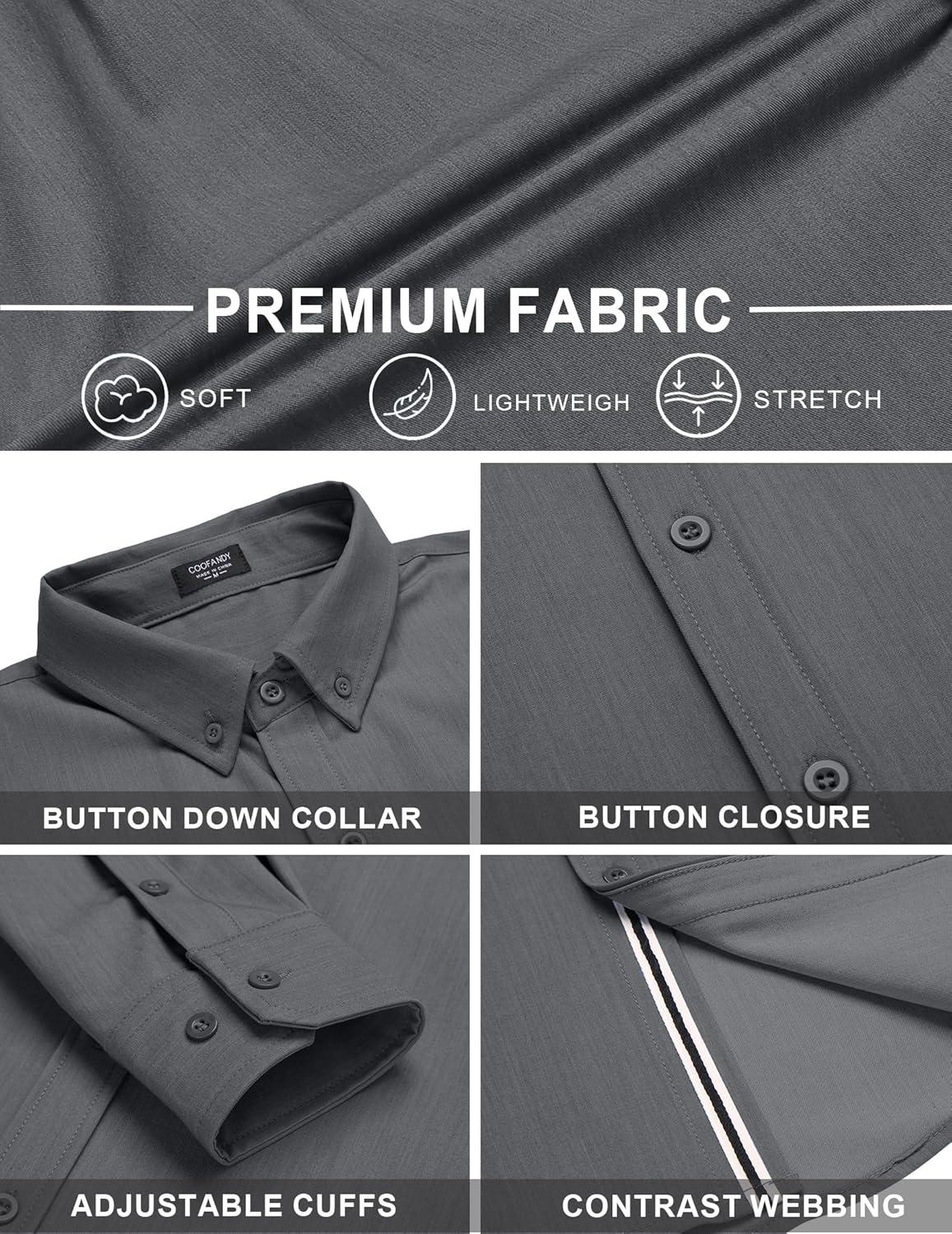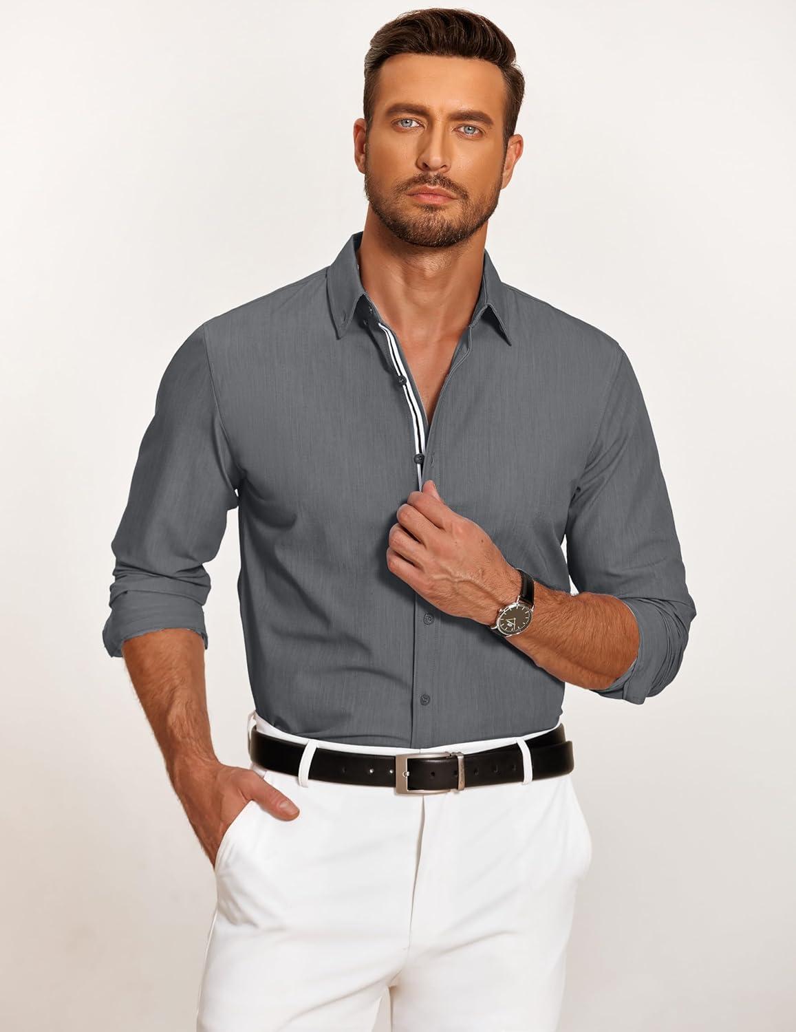 COOFANDY Mens Casual Button Down Shirt Untucked Long Sleeve Stretch Denim Dress Shirt(Grey)