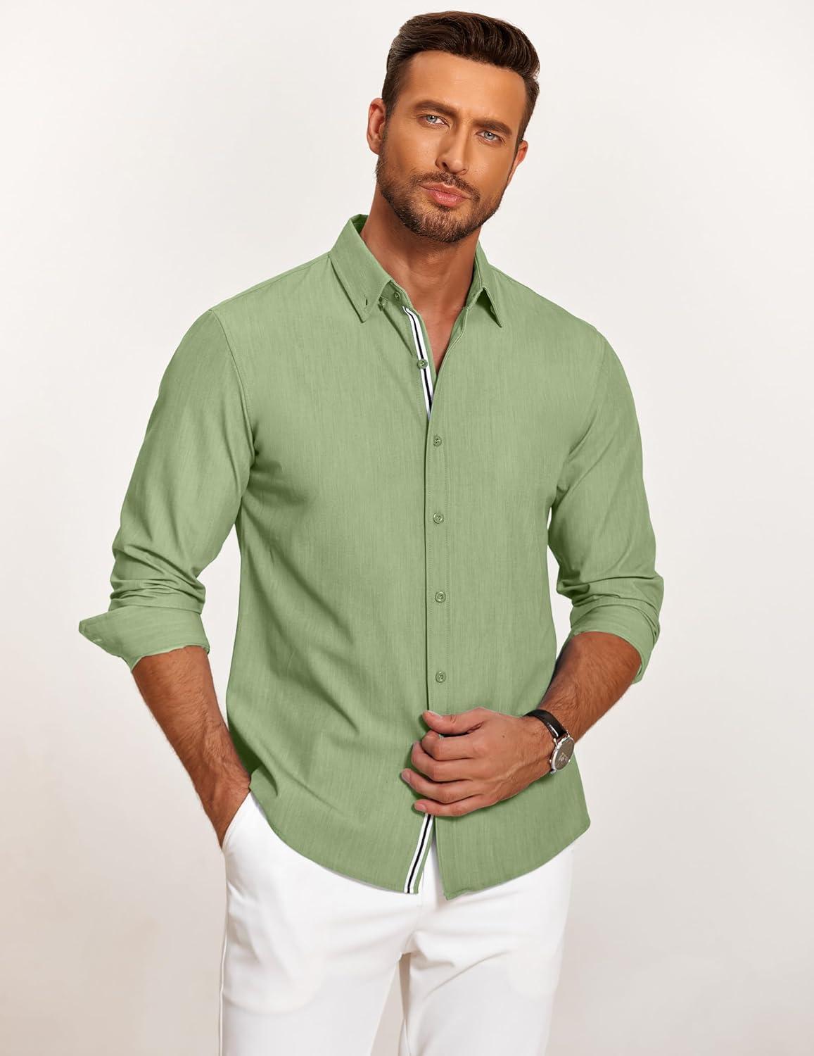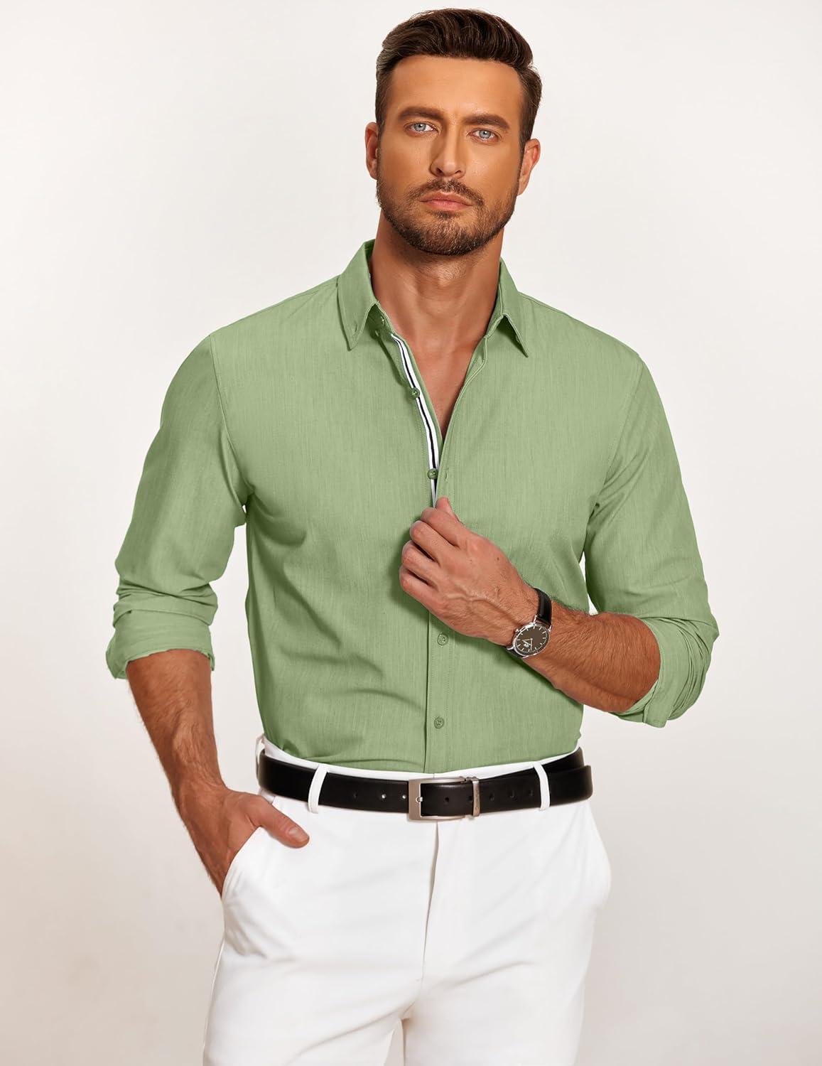 Get up to 50% off on COOFANDY Mens Casual Button Down Shirt Untucked Long Sleeve Stretch Denim Dress Shirt(Light Green) styles during our spring sale event.