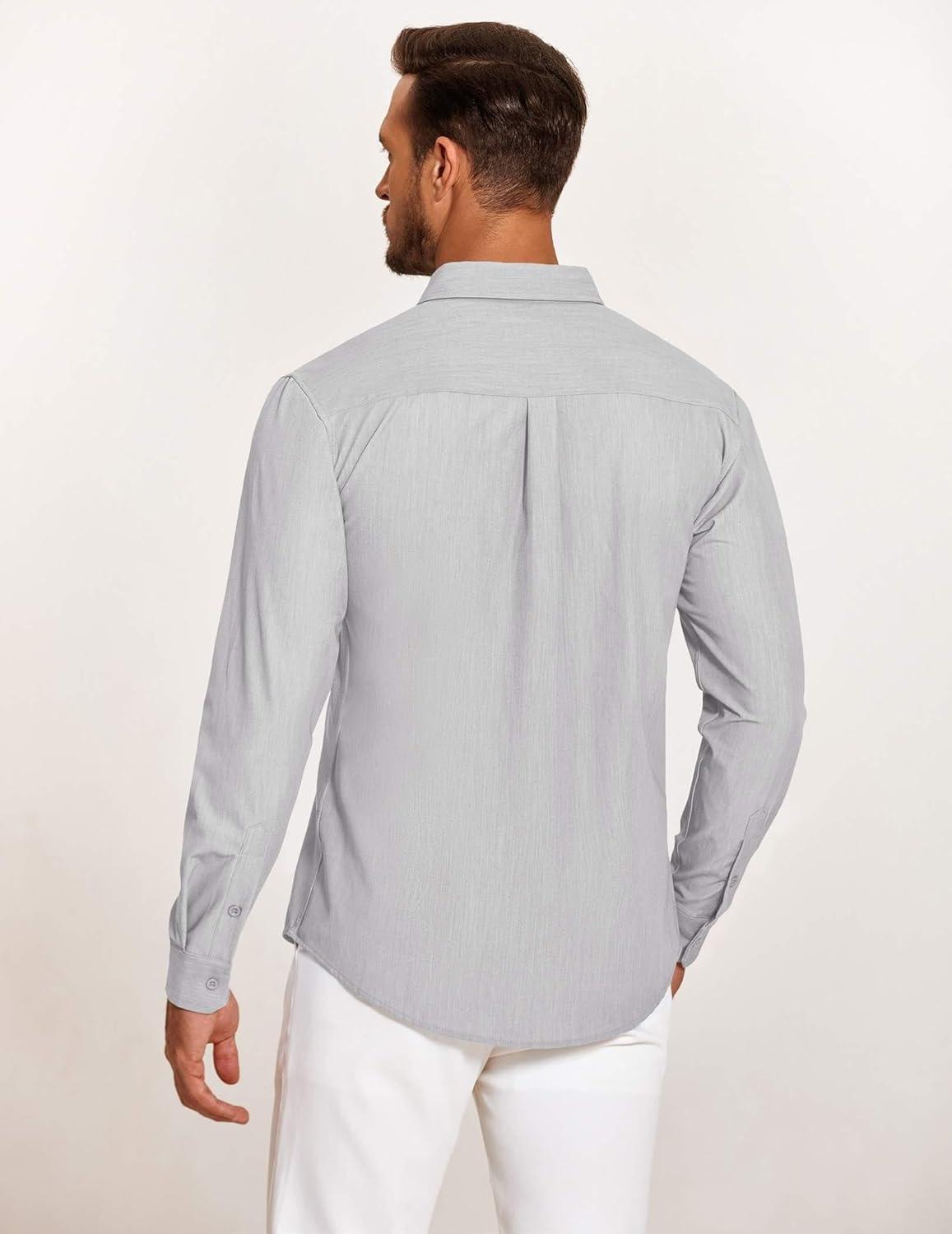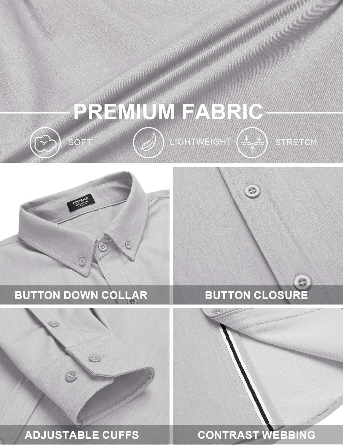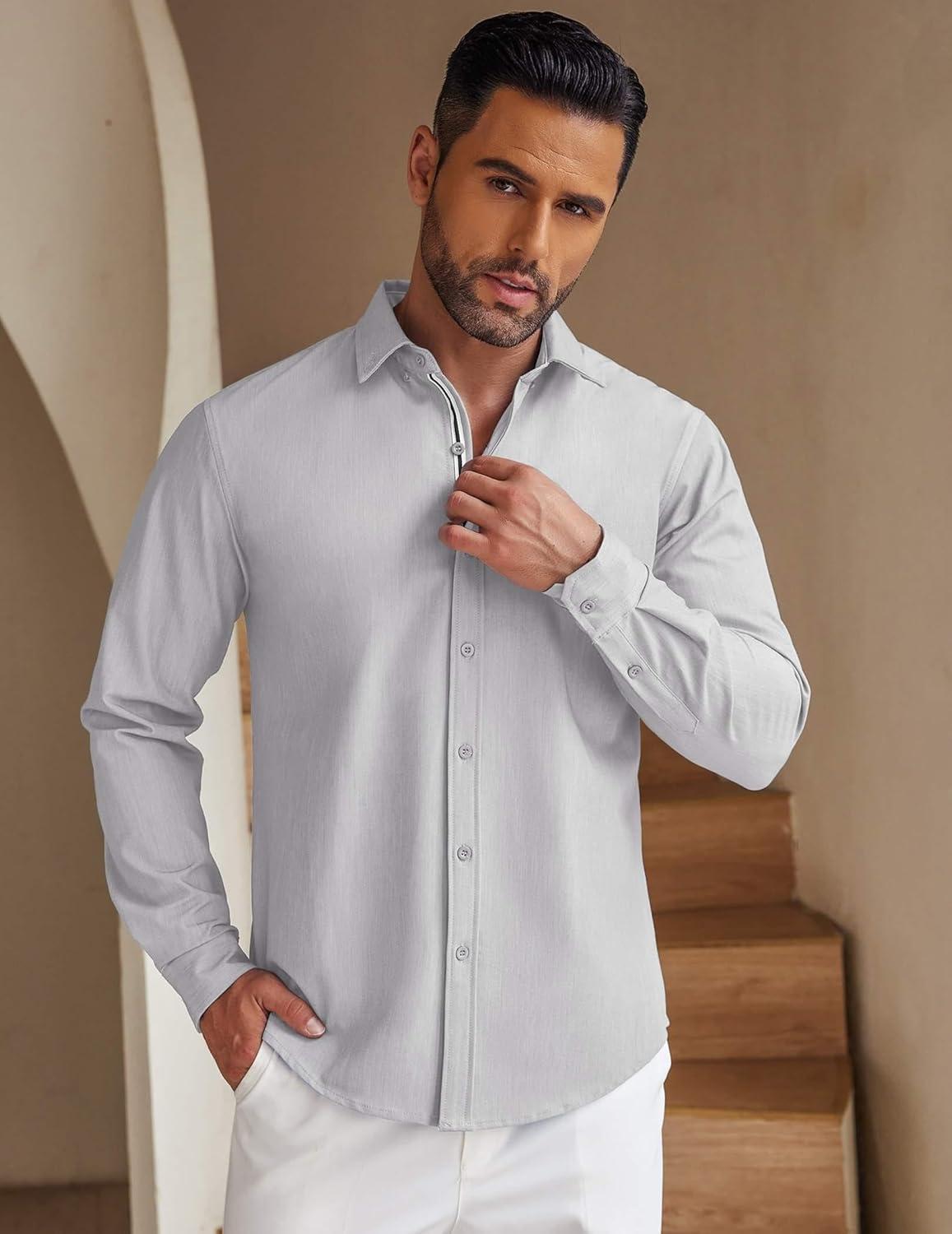 COOFANDY Mens Casual Button Down Shirt Untucked Long Sleeve Stretch Denim Dress Shirt(Light Grey)
