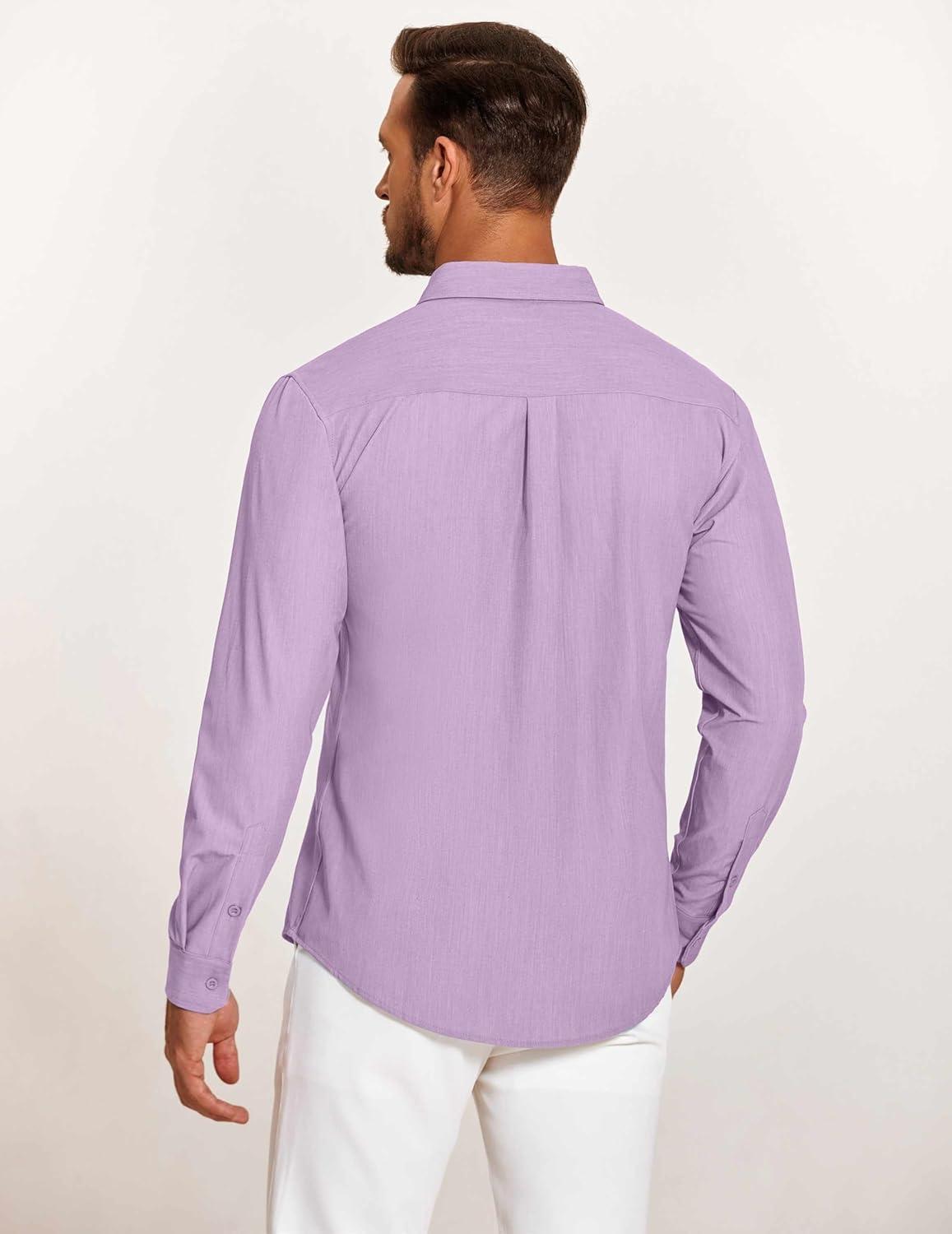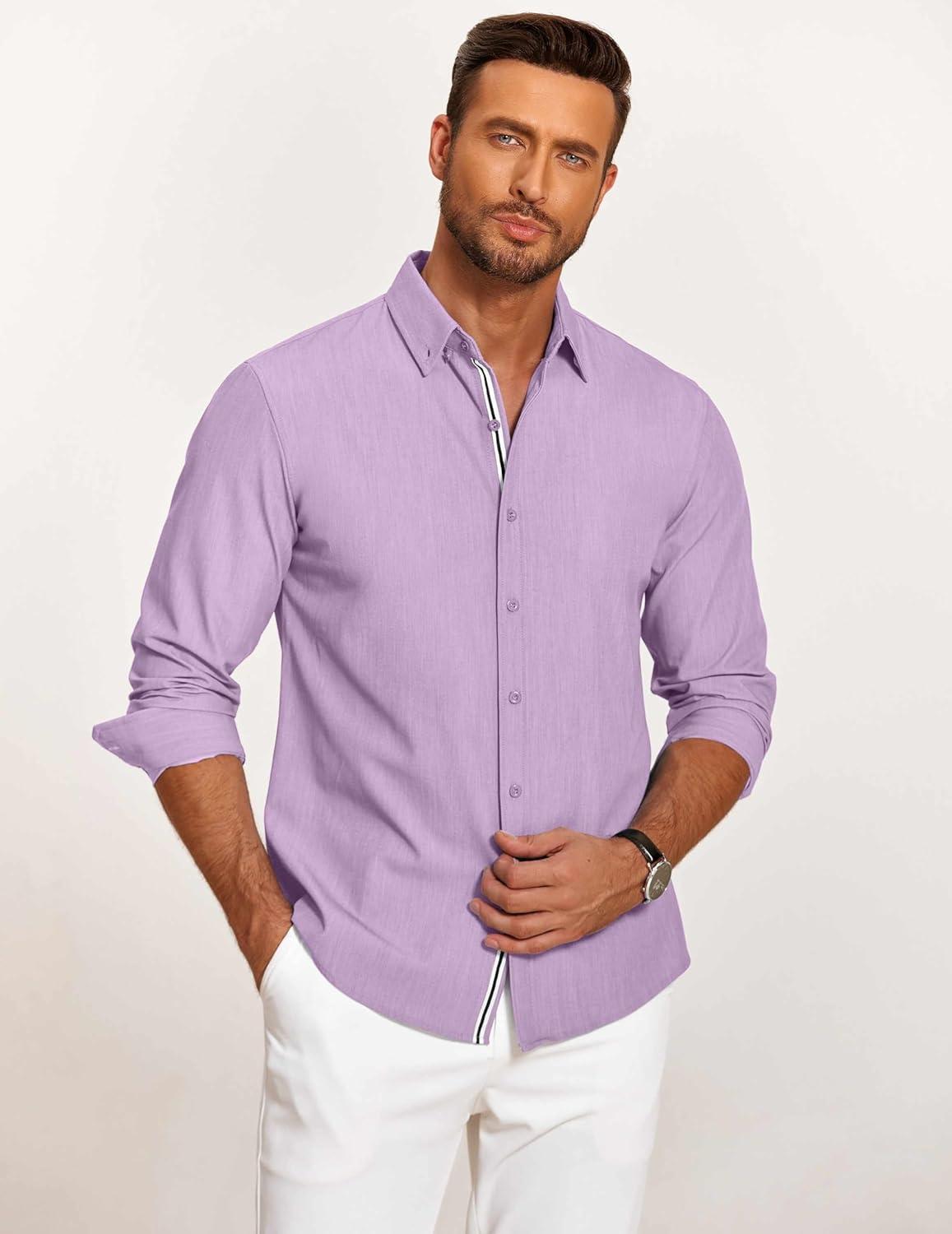 COOFANDY Mens Casual Button Down Shirt Untucked Long Sleeve Stretch Denim Dress Shirt(Light Purple)