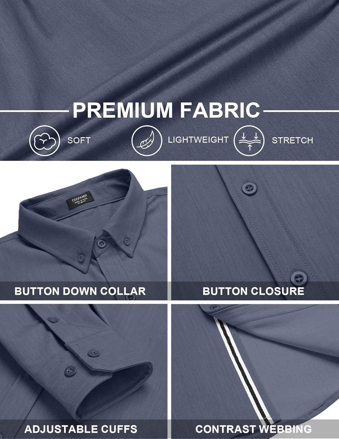 Be the first to review “COOFANDY Mens Casual Button Down Shirt Untucked Long Sleeve Stretch Denim Dress Shirt(Navy Blue)”