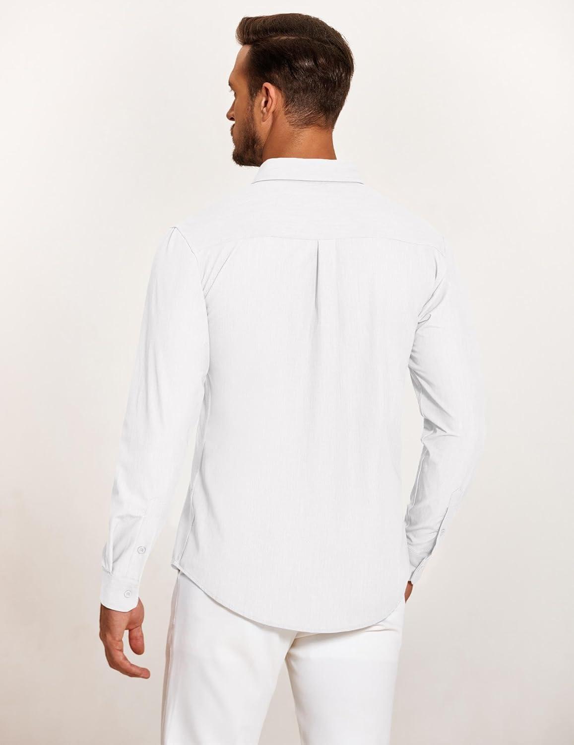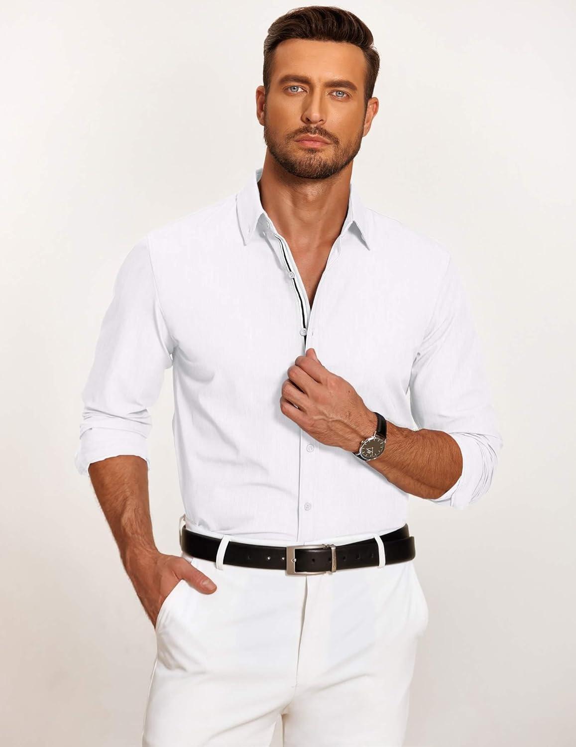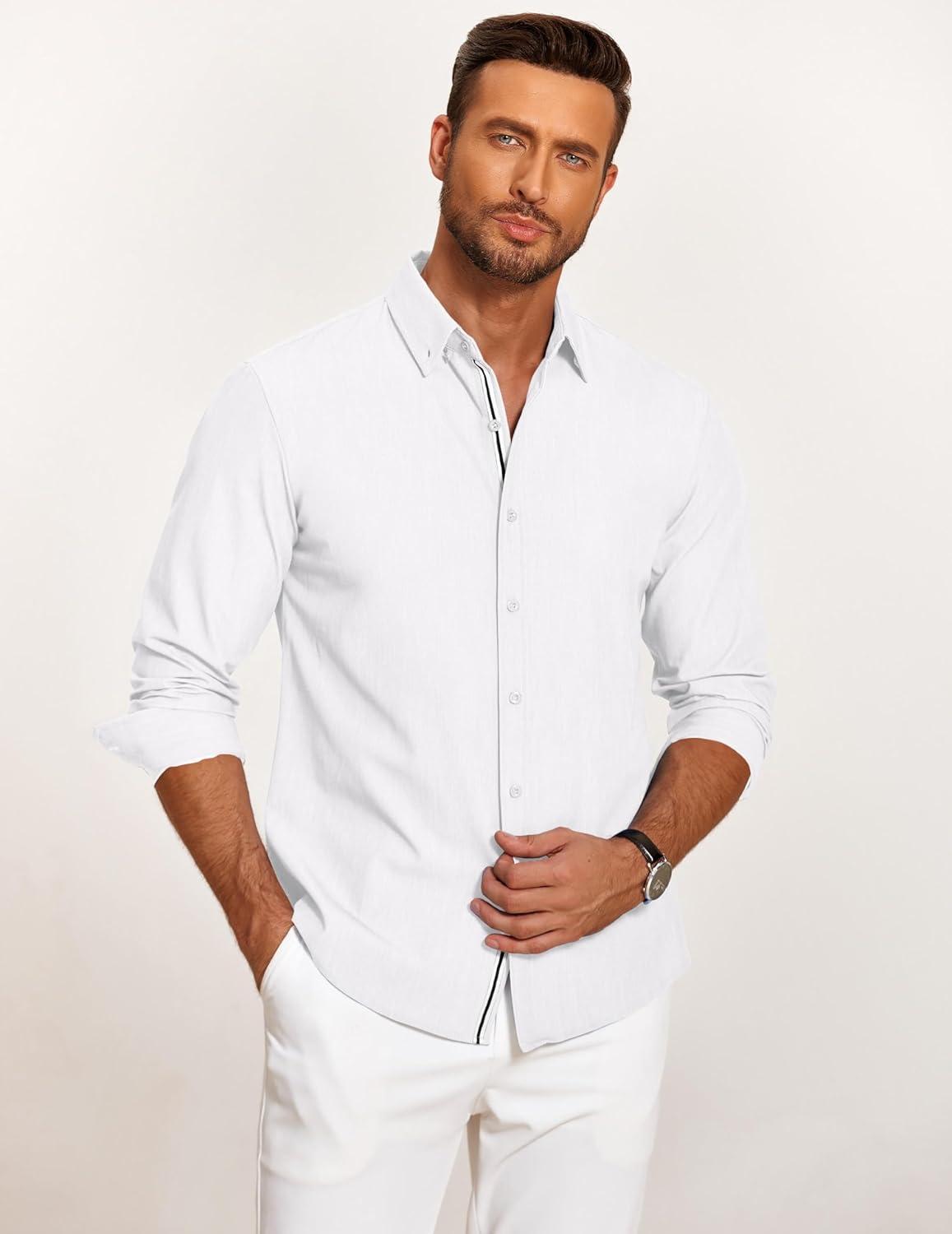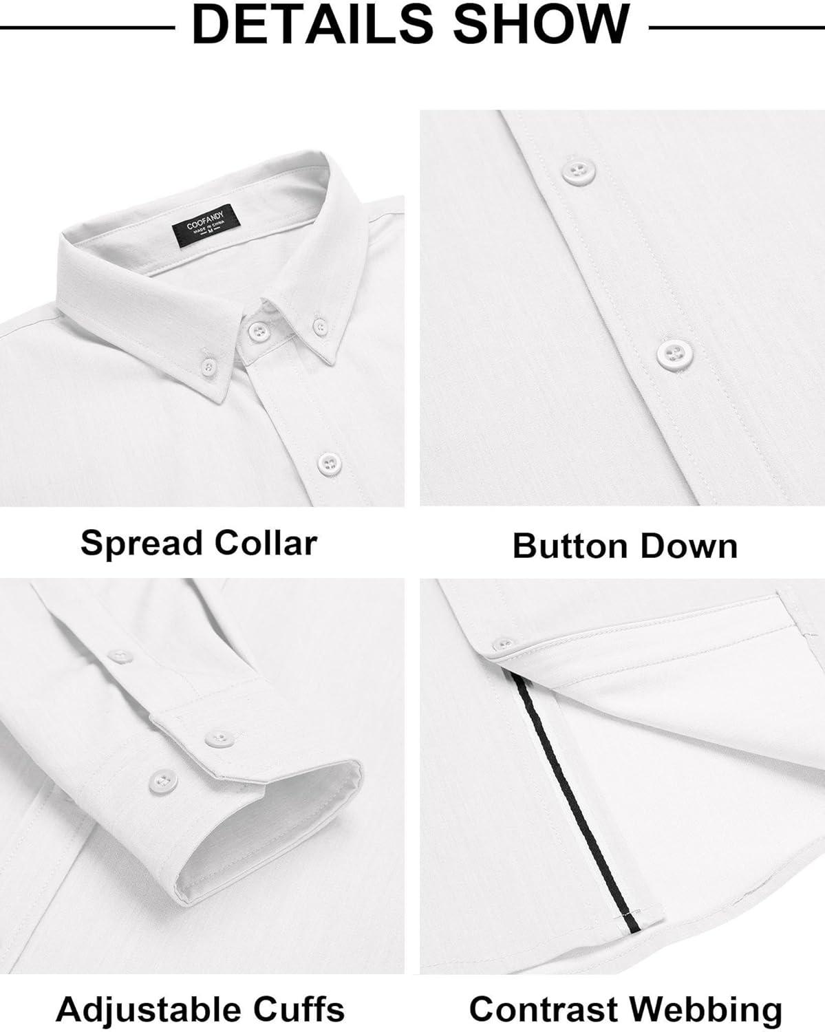 COOFANDY Mens Casual Button Down Shirt Untucked Long Sleeve Stretch Denim Dress Shirt(White)