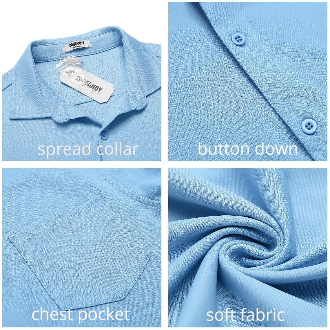 COOFANDY Mens Casual Button Down Shirt Untucked Short Sleeve Strech Wrinkle Free Dress Shirts(Light Blue)