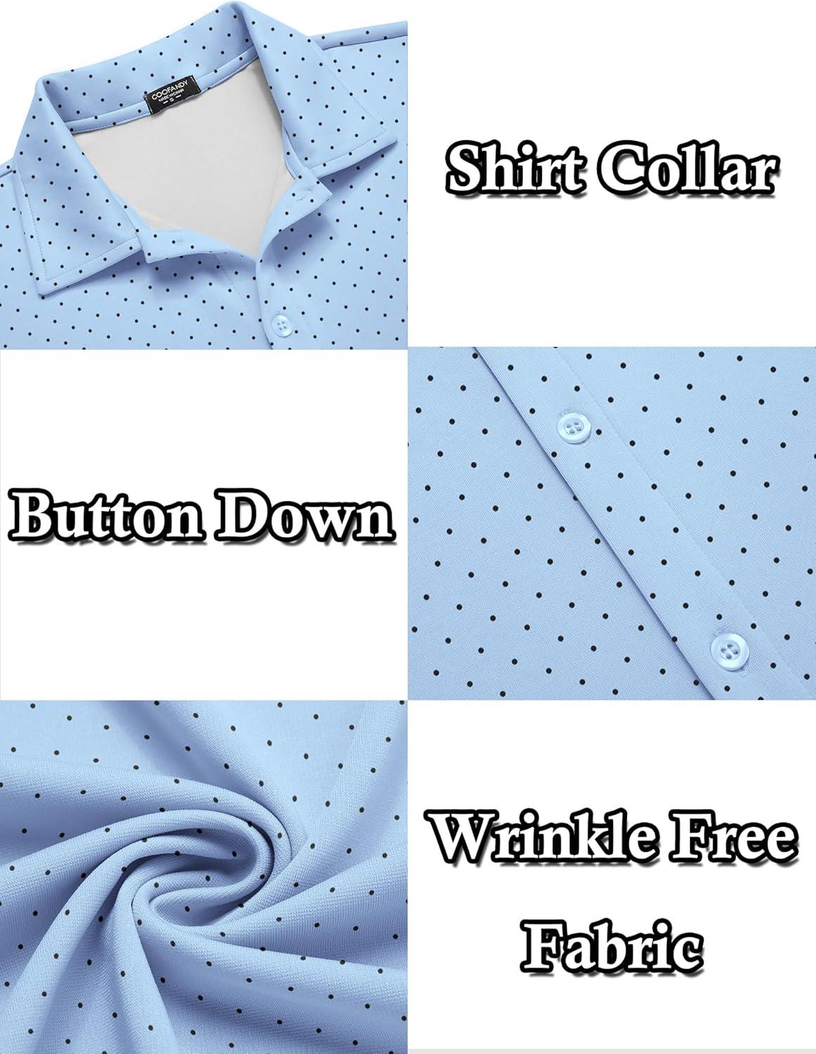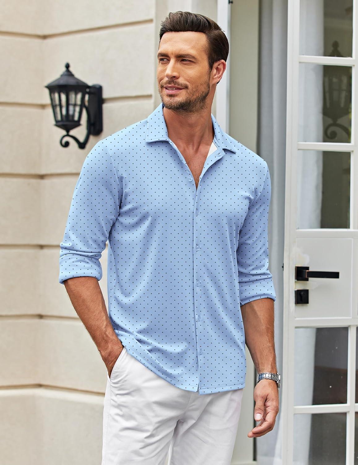 COOFANDY Men's Casual Button Down Shirt Wrinkle Free Shirts Long Sleeve Dress Shirt(Black Spots Blue)
