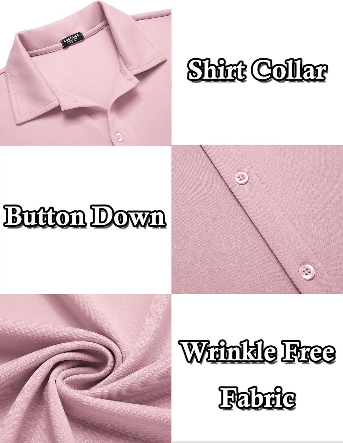 COOFANDY Men’s Casual Button Down Shirt Wrinkle Free Shirts Long Sleeve Dress Shirt(Dark Pink)