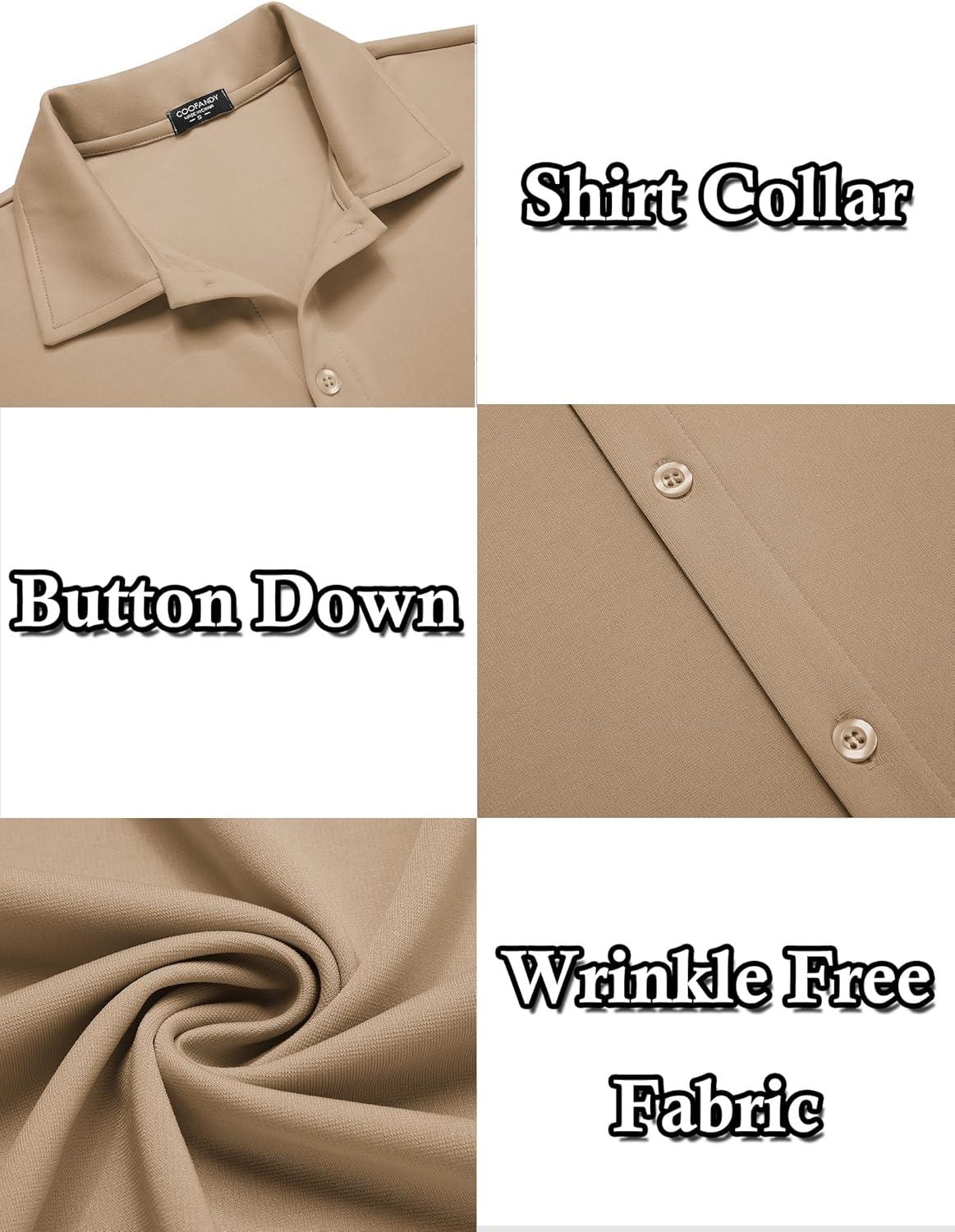COOFANDY Men's Casual Button Down Shirt Wrinkle Free Shirts Long Sleeve Dress Shirt(Light Khaki)