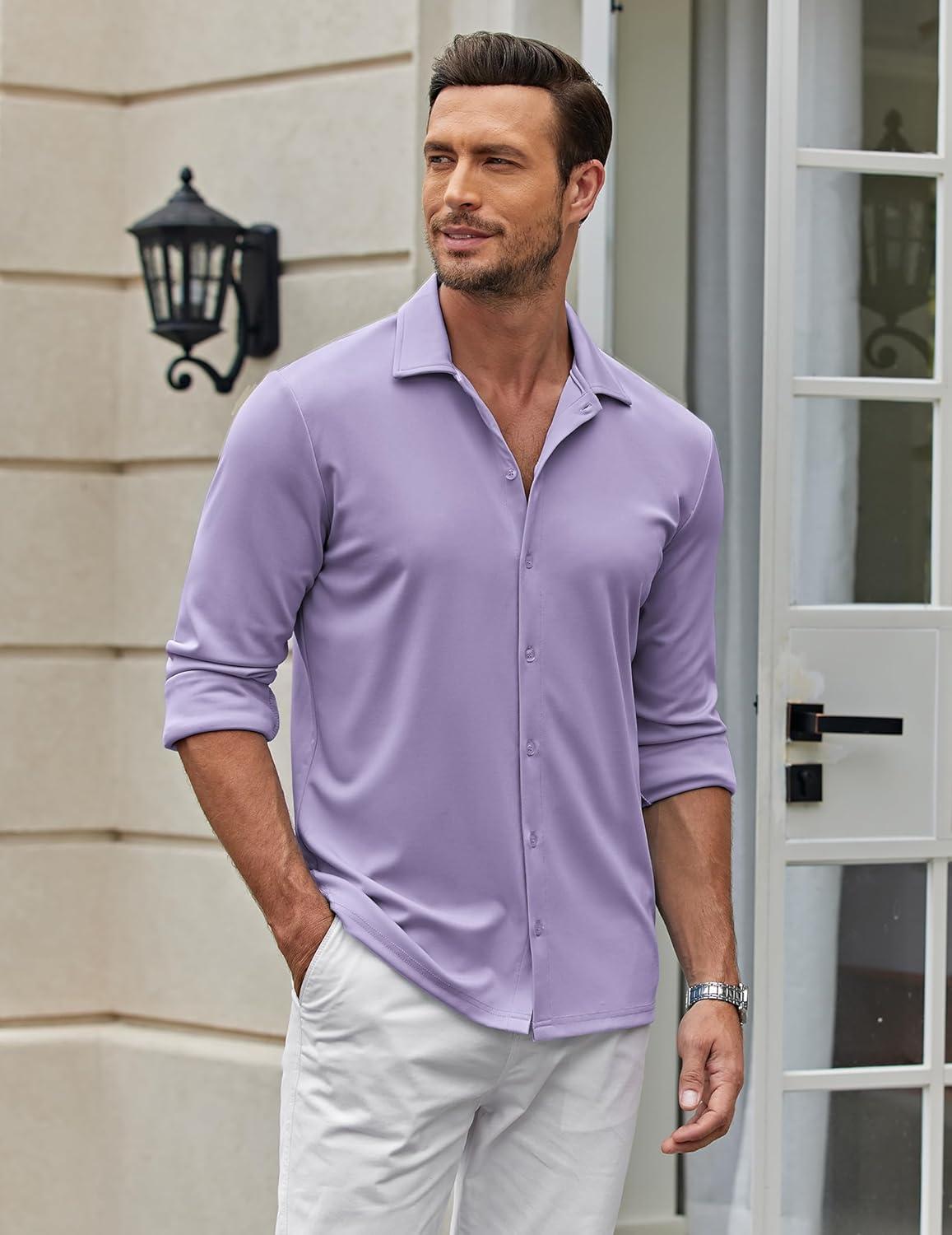 COOFANDY Men's Casual Button Down Shirt Wrinkle Free Shirts Long Sleeve Dress Shirt(Lilac)
