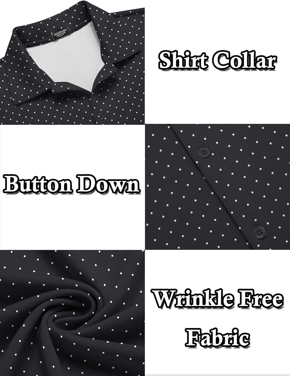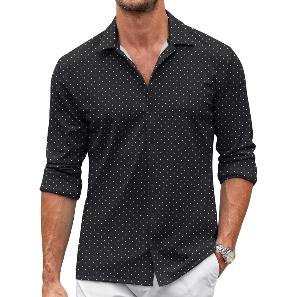 COOFANDY Men's Casual Button Down Shirt Wrinkle Free Shirts Long Sleeve Dress Shirt(White Spots Black)