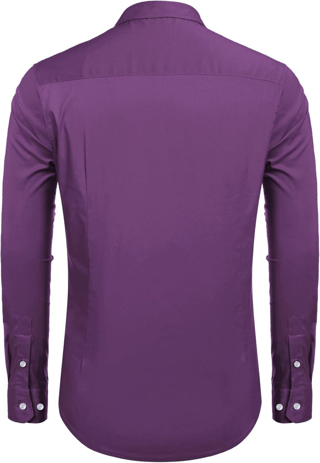 COOFANDY Mens Casual Button Down Shirts Long Sleeve Untucked Shirts for Men Stretch Dress Shirt(Dark Purple)