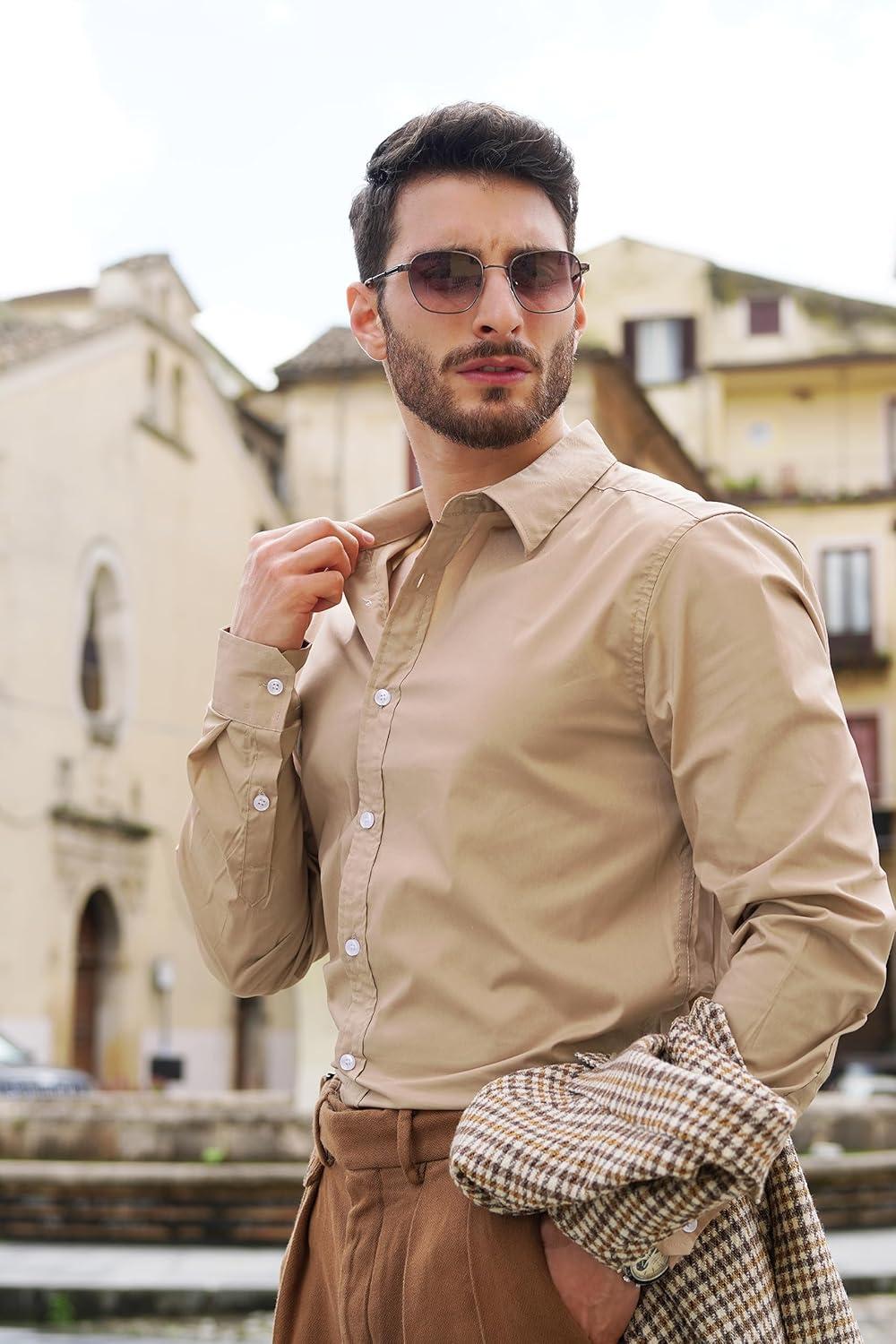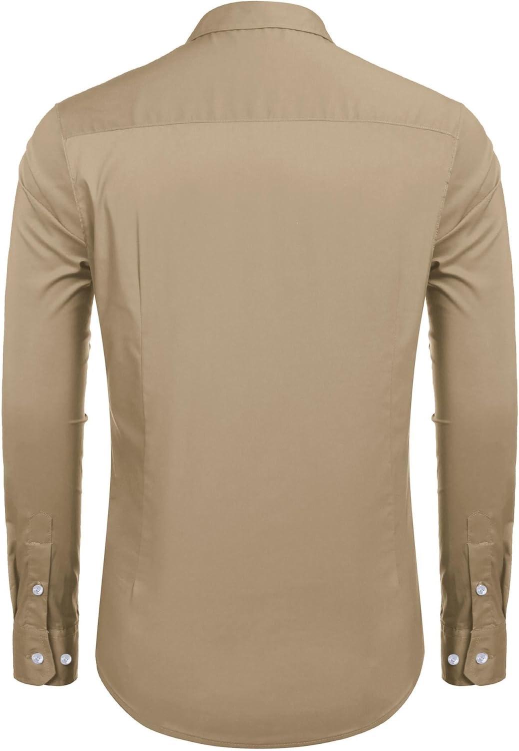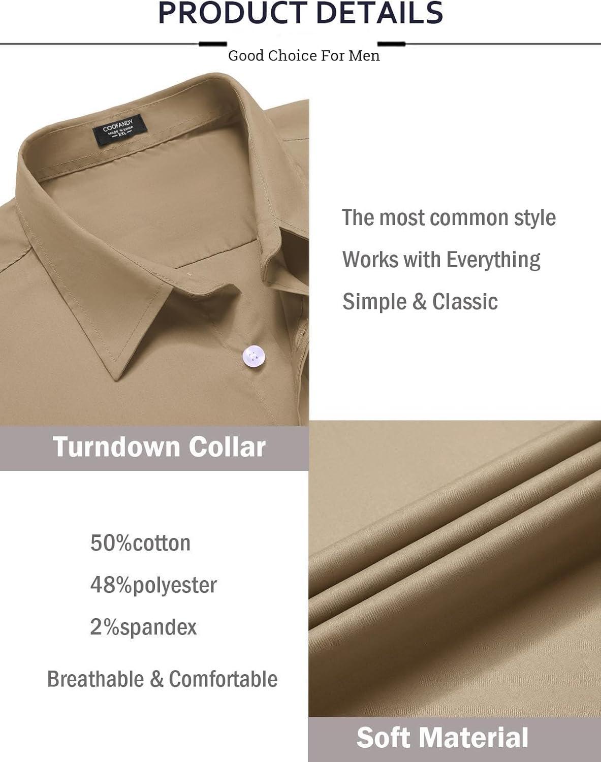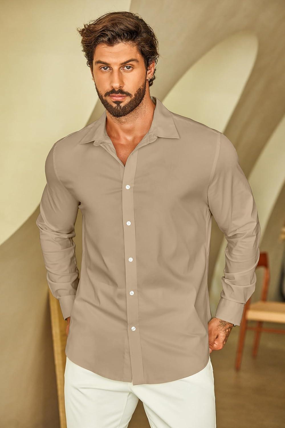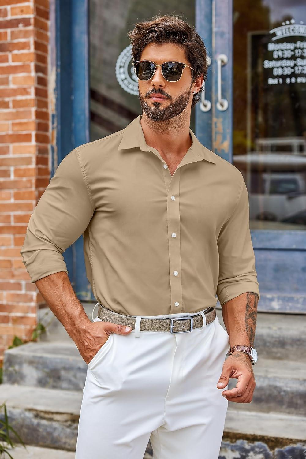COOFANDY Mens Casual Button Down Shirts Long Sleeve Untucked Shirts for Men Stretch Dress Shirt(Light Khaki)