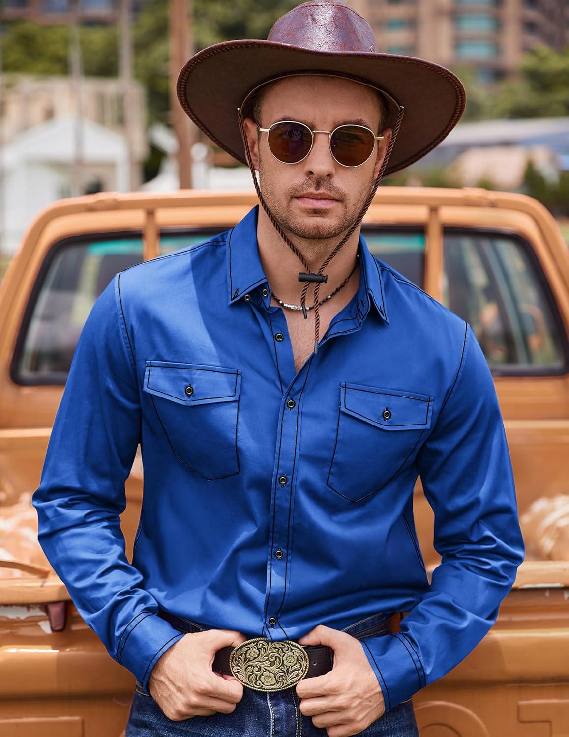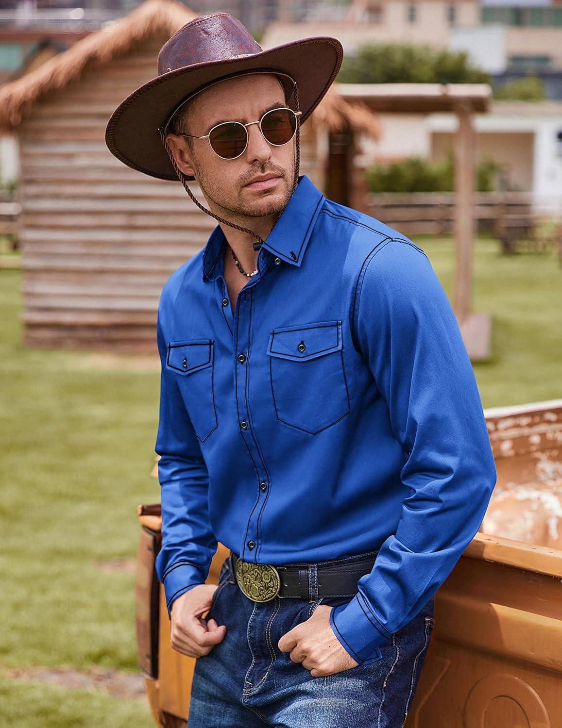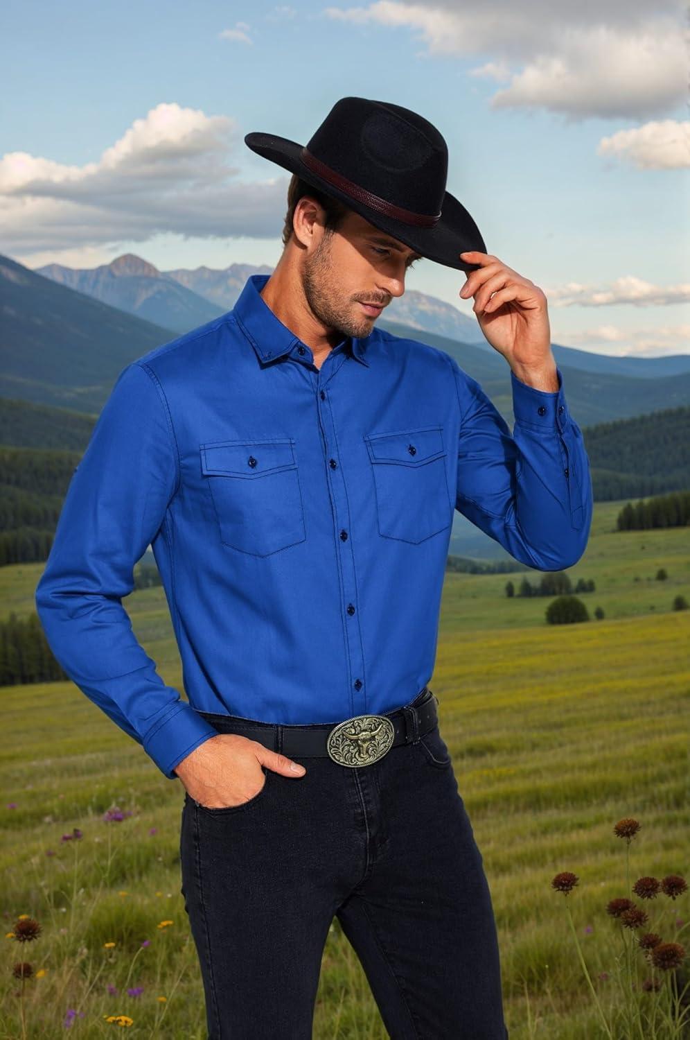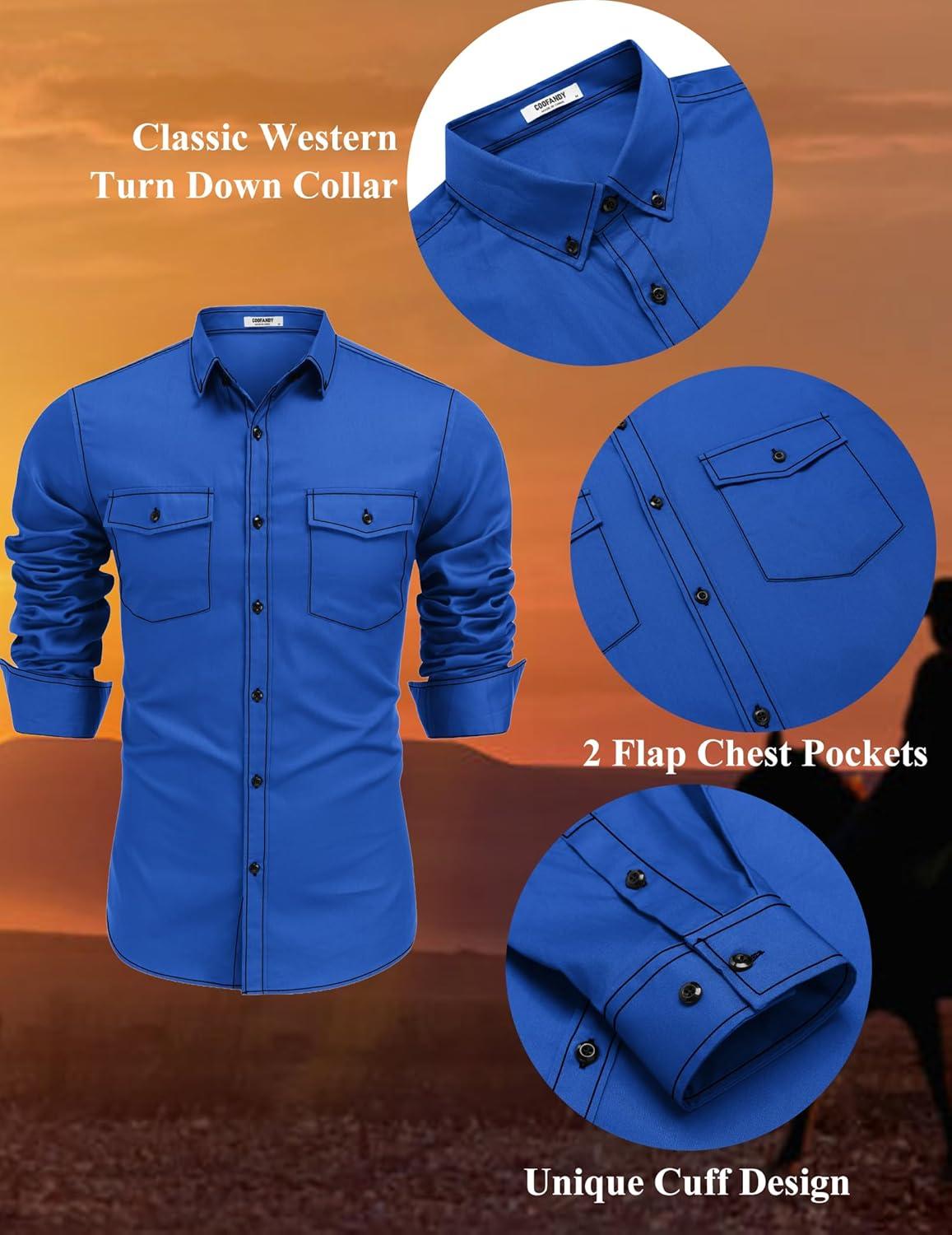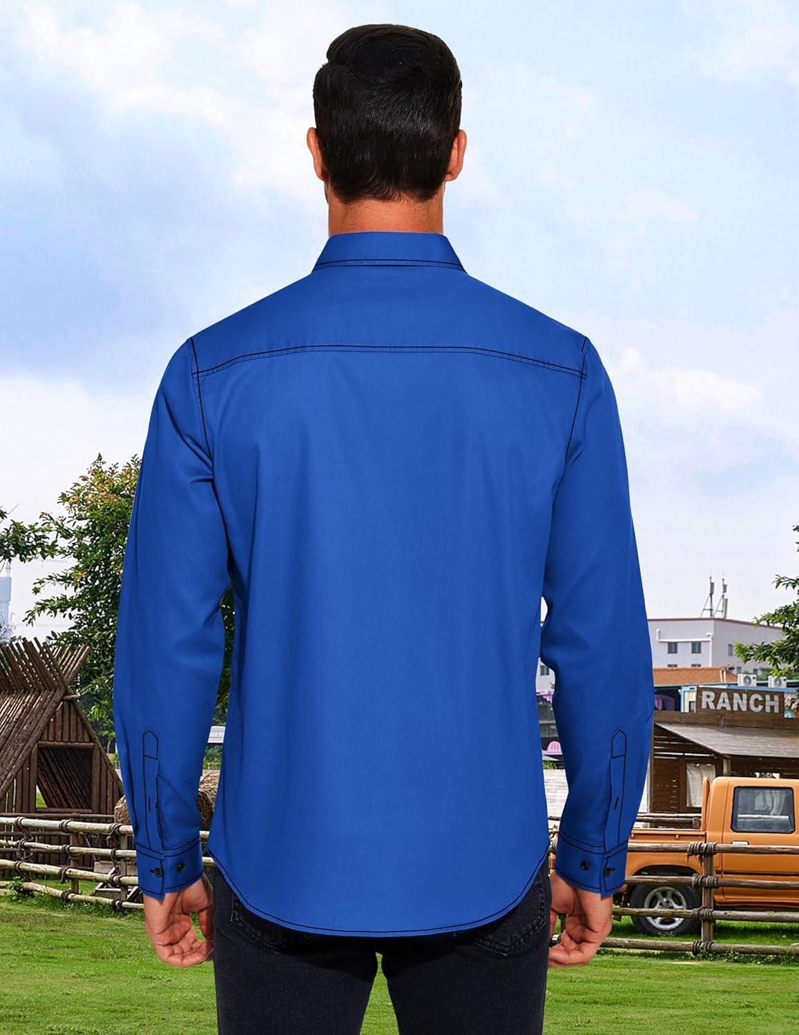 COOFANDY Mens Casual Button Down Shirts Long Sleeve Untucked Shirts for Men Stretch Dress Shirt(Royal Blue)