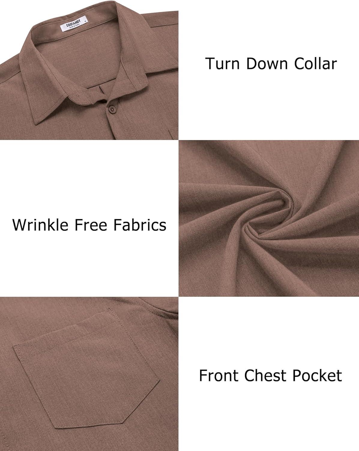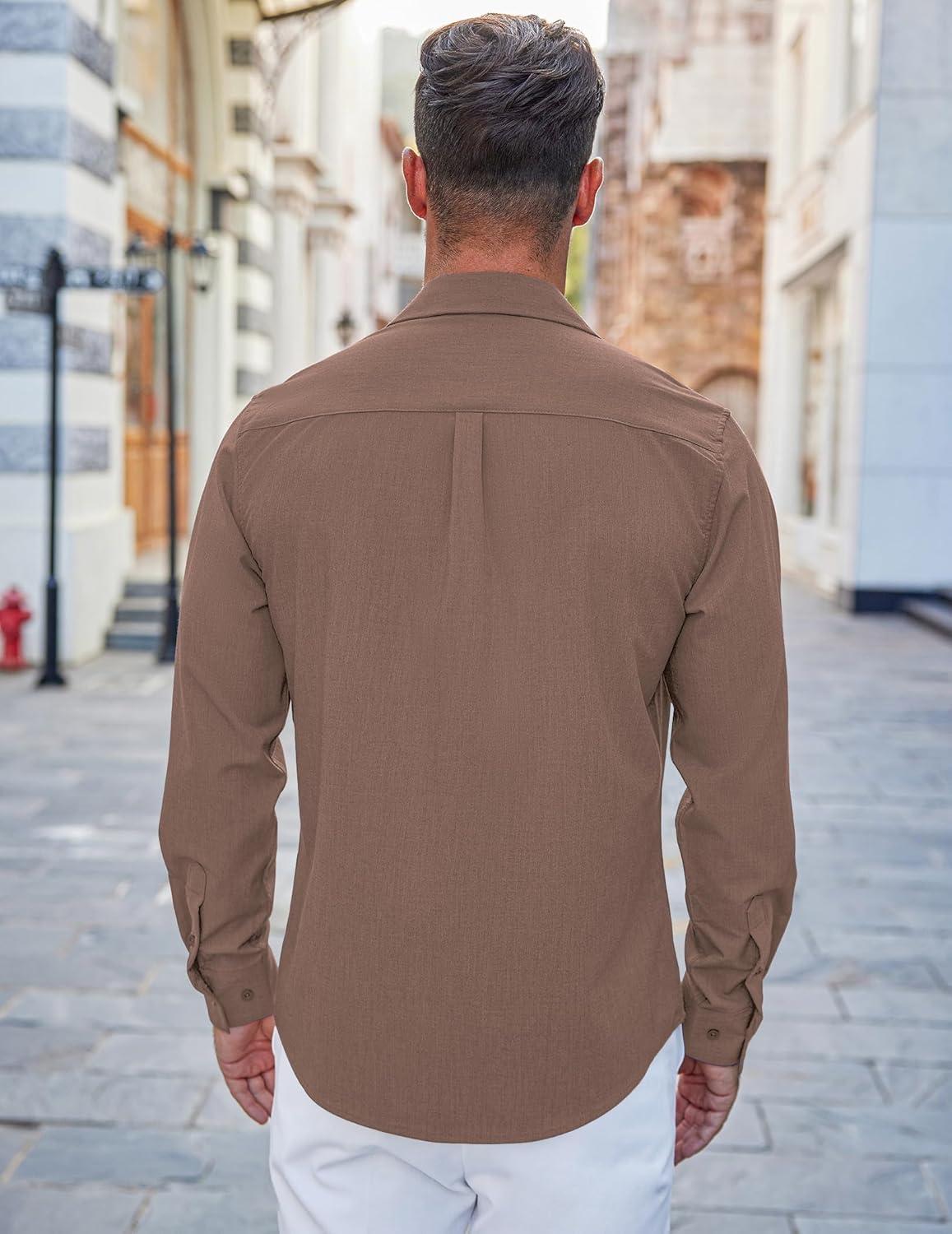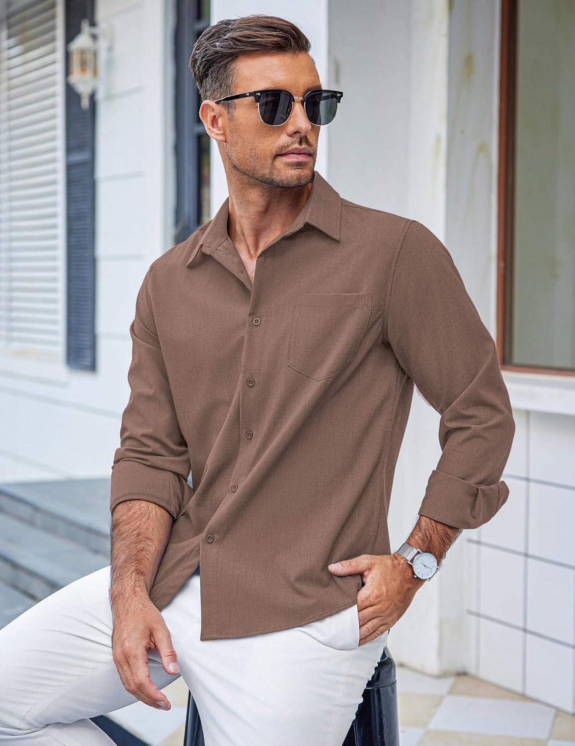COOFANDY Men's Casual Button Down Shirts Long Sleeve Untucked Shirts Regular Fit Linen Shirt(Brown)
