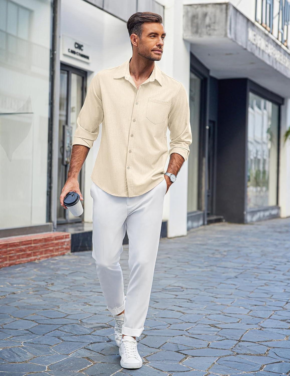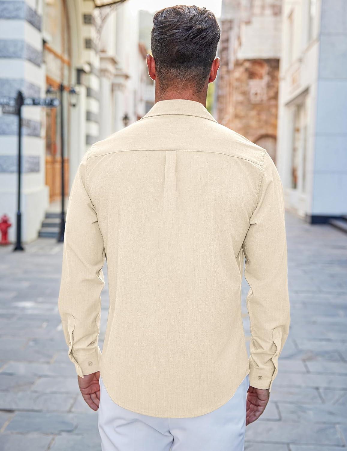 COOFANDY Men's Casual Button Down Shirts Long Sleeve Untucked Shirts Regular Fit Linen Shirt(Khaki)