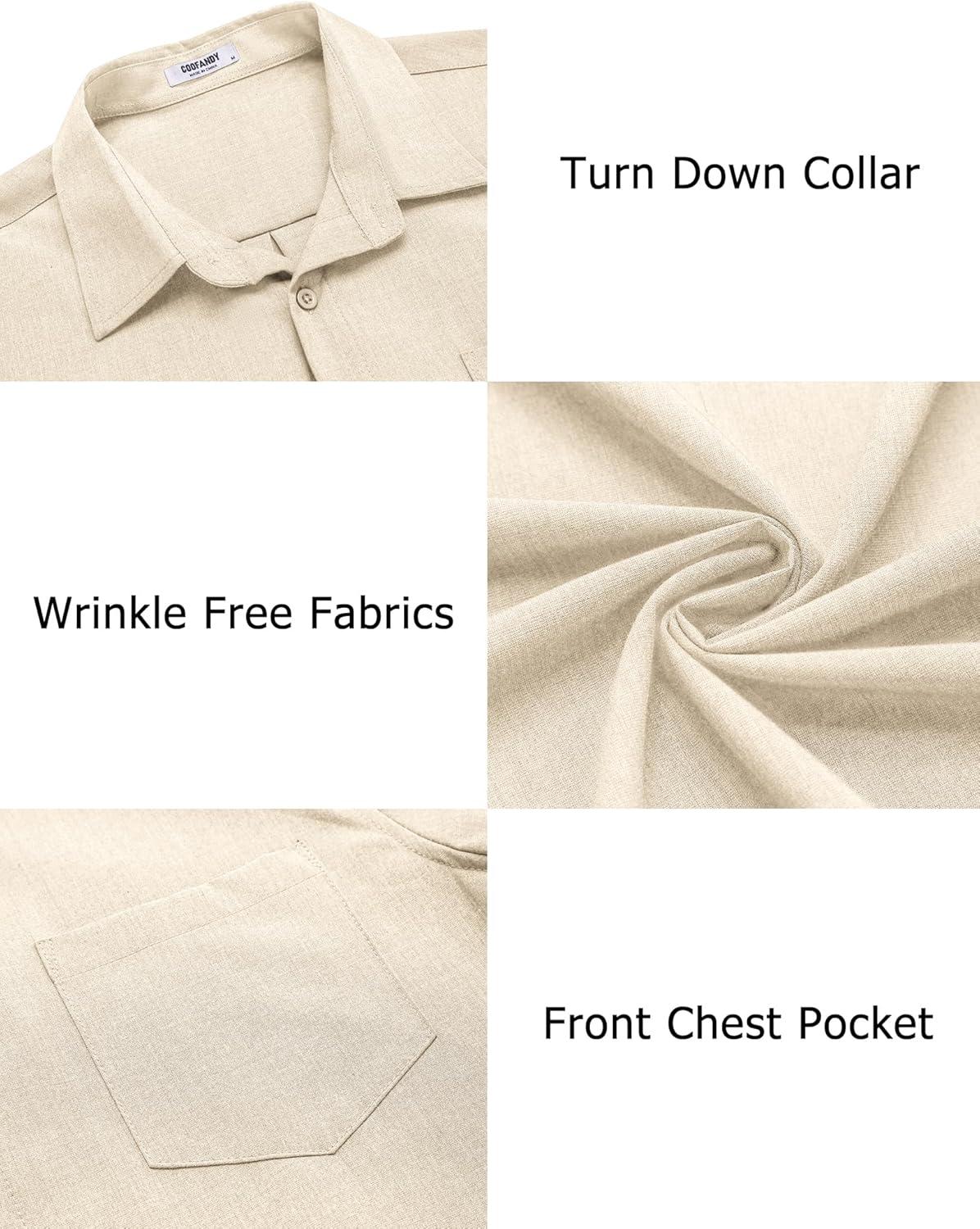 COOFANDY Men’s Casual Button Down Shirts Long Sleeve Untucked Shirts Regular Fit Linen Shirt(Khaki)