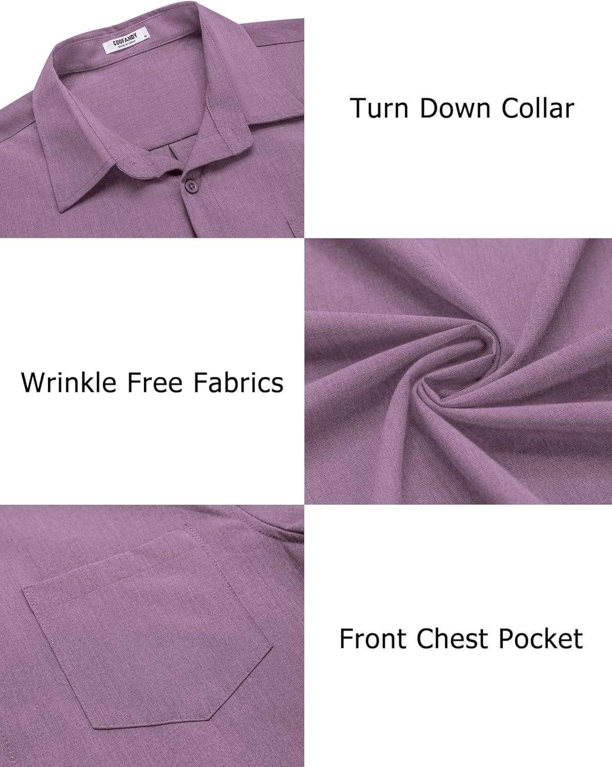 COOFANDY Men’s Casual Button Down Shirts Long Sleeve Untucked Shirts Regular Fit Linen Shirt(Purple)