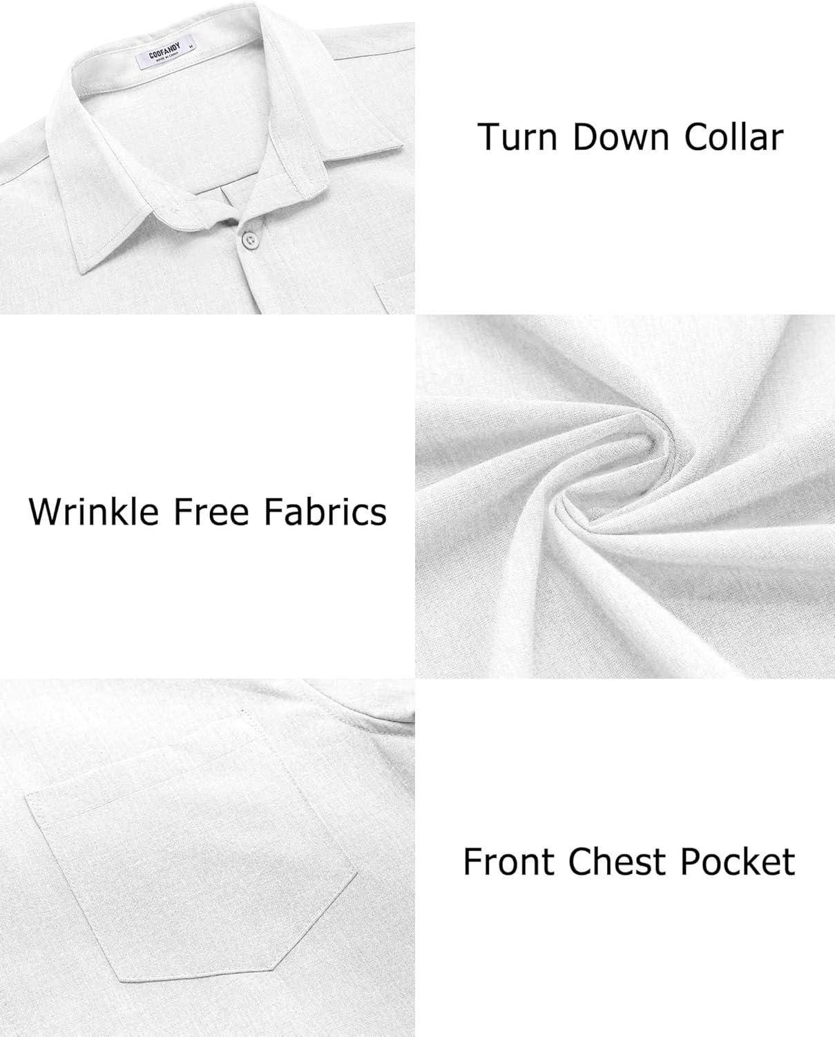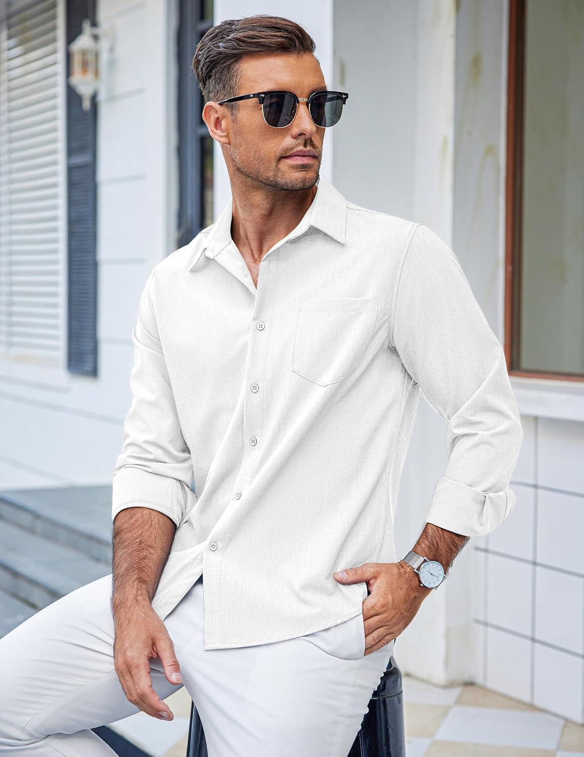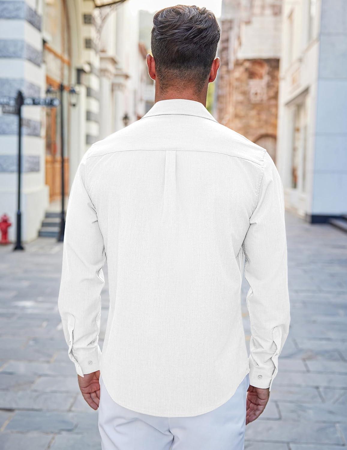 COOFANDY Men’s Casual Button Down Shirts Long Sleeve Untucked Shirts Regular Fit Linen Shirt(White)