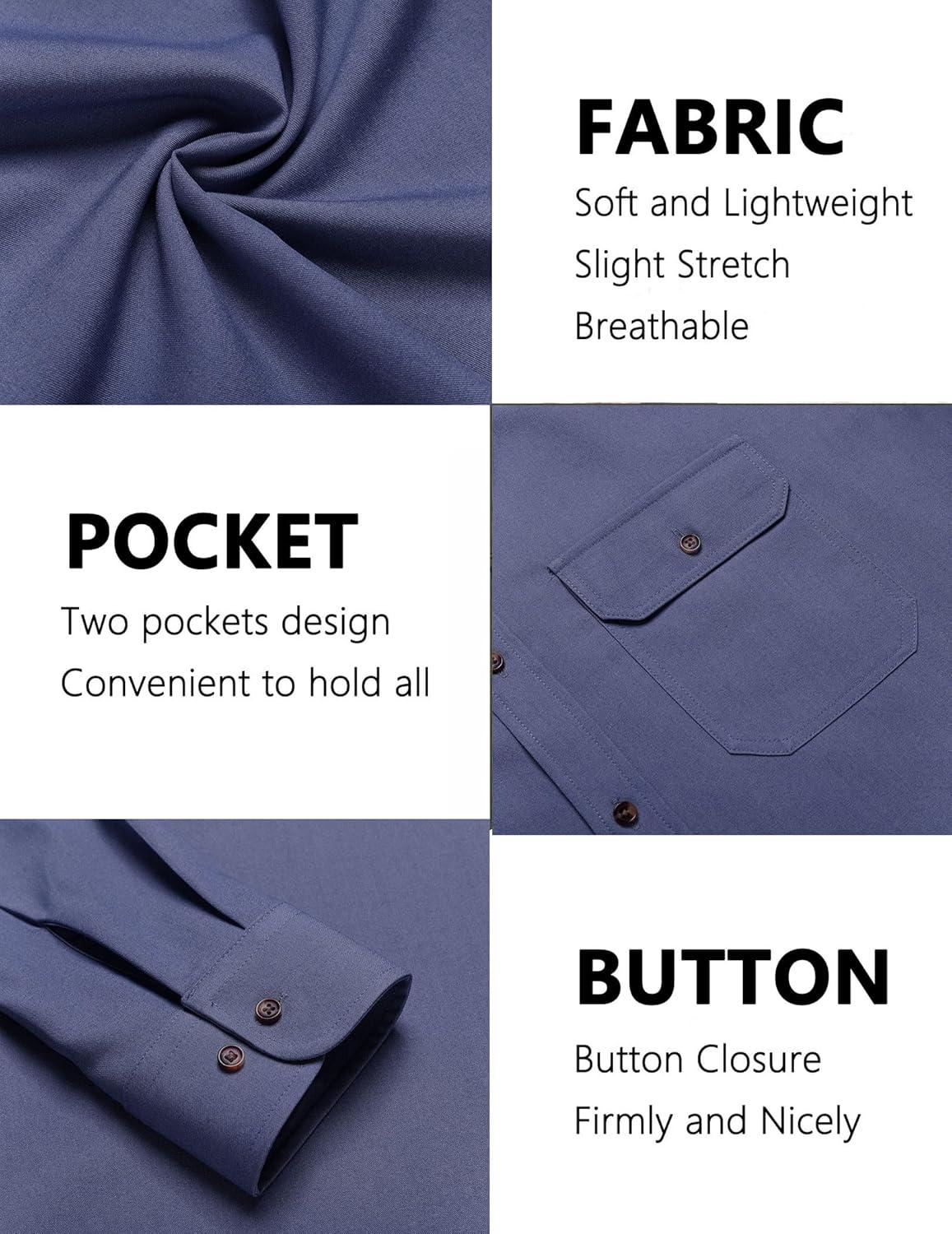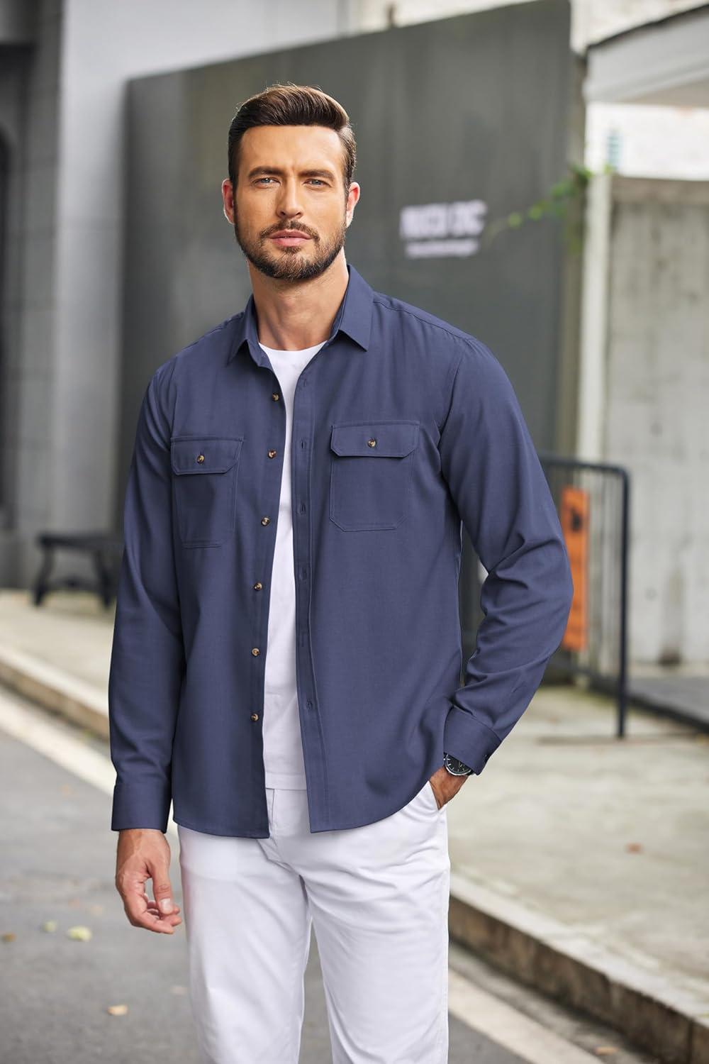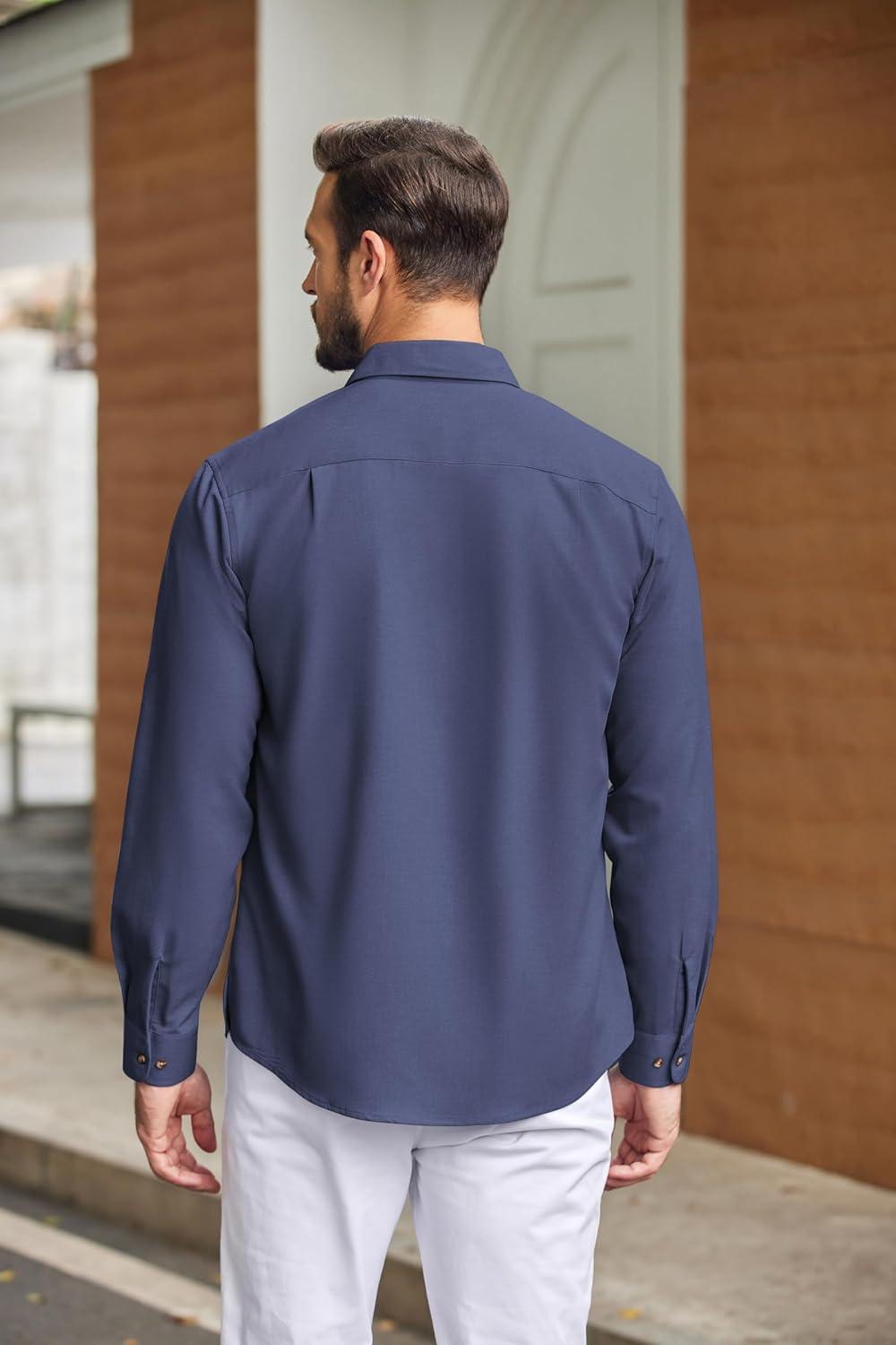 COOFANDY Mens Casual Button Down Shirts Long Sleeve Wrinkle-Free Shirt Lightweight Shirt Jacket(Denim Blue)