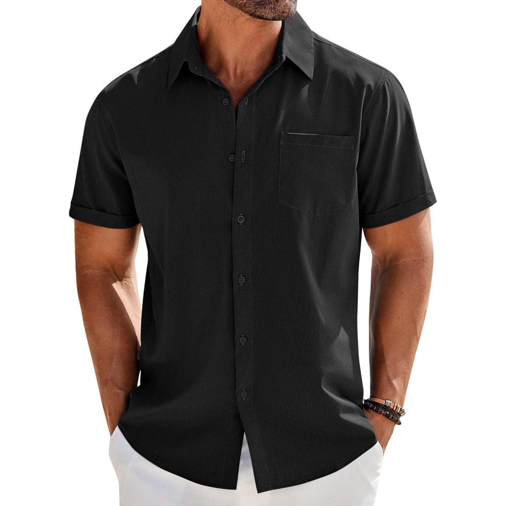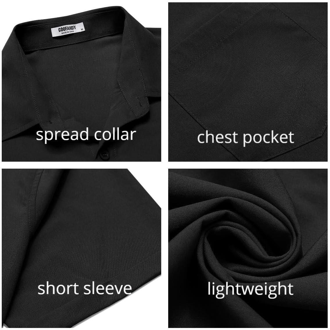 COOFANDY Men's Casual Button Down Shirts Short Sleeve Beach Summer Shirt Vacation Wedding Shirts with Pocket(Black)