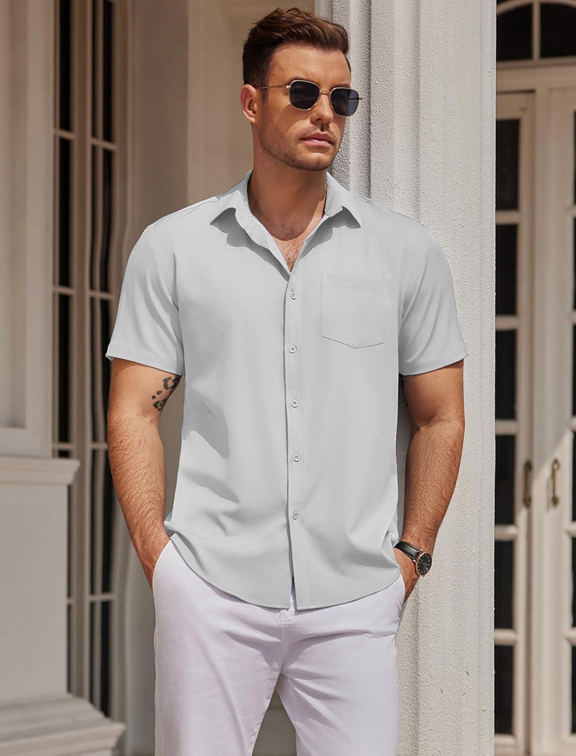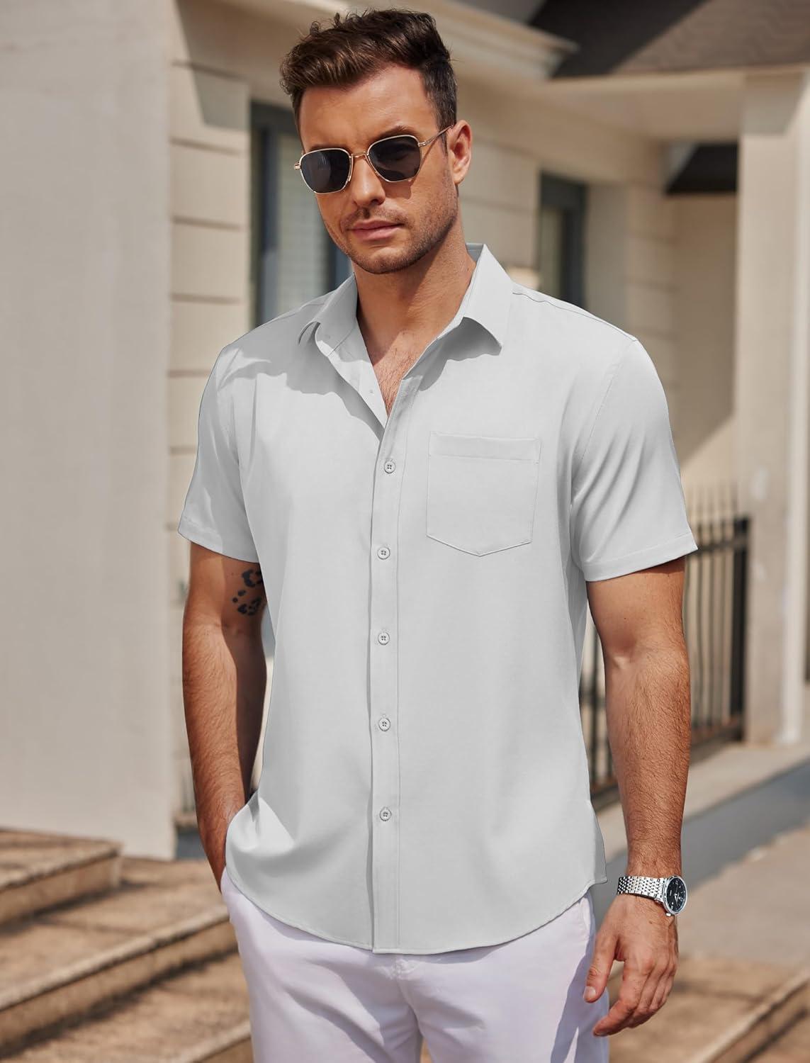 COOFANDY Mens Casual Button Down Shirts Short Sleeve Business Shirts Lightweight Wrinkle Free Dress Shirts(A-white)