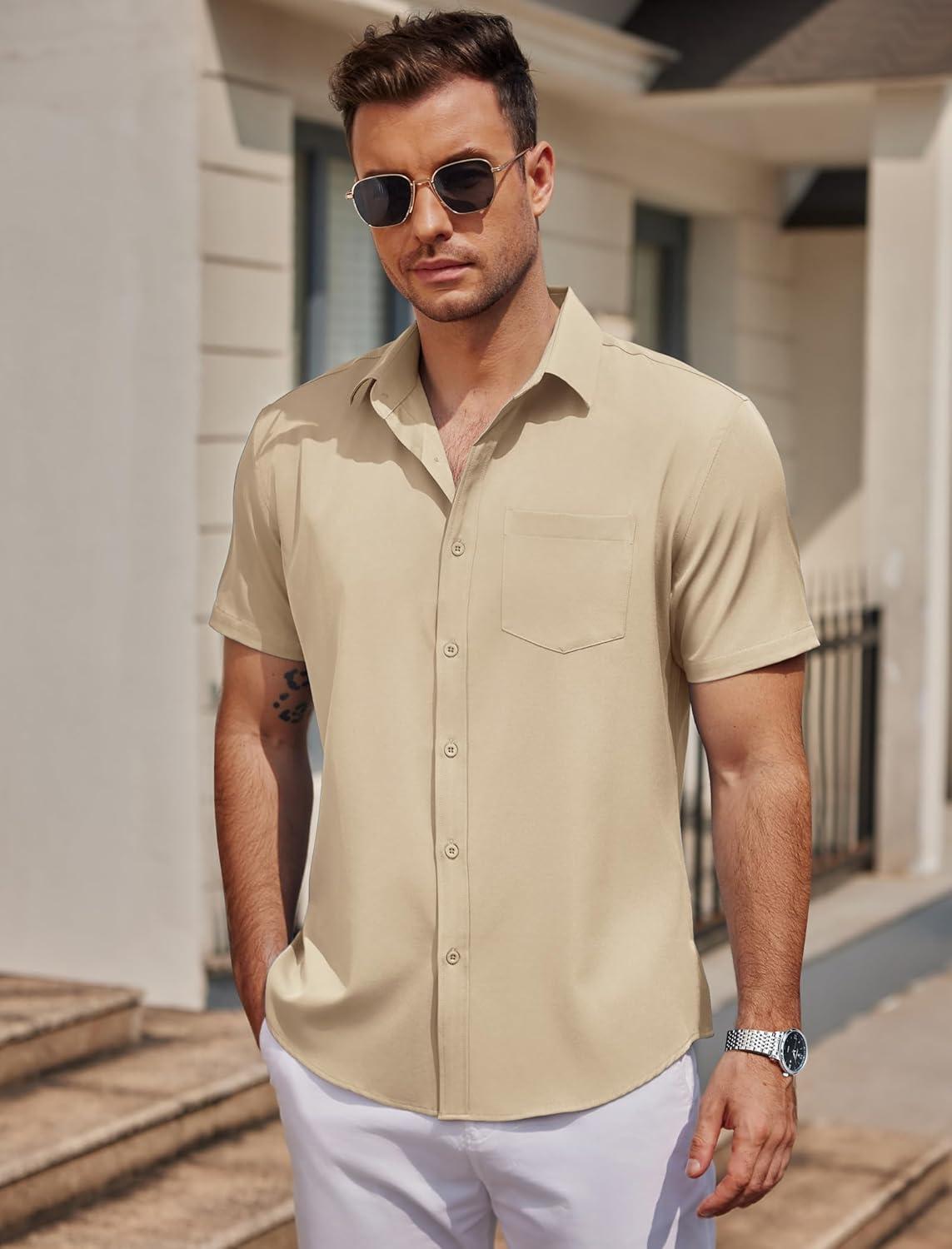 COOFANDY Mens Casual Button Down Shirts Short Sleeve Business Shirts Lightweight Wrinkle Free Dress Shirts(Beige)